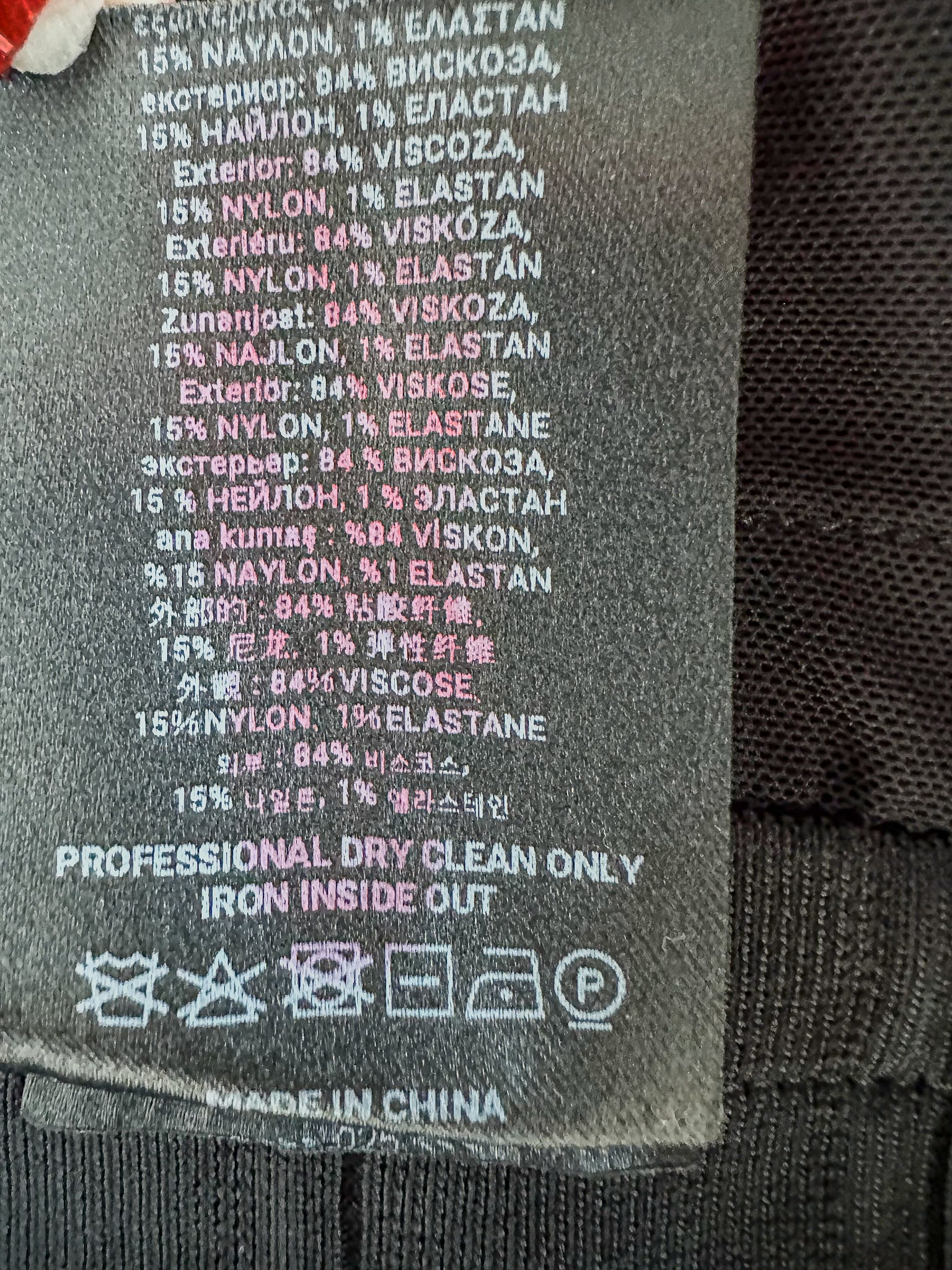 - Material: 84% viscose, 15% nylon, 1% elastane