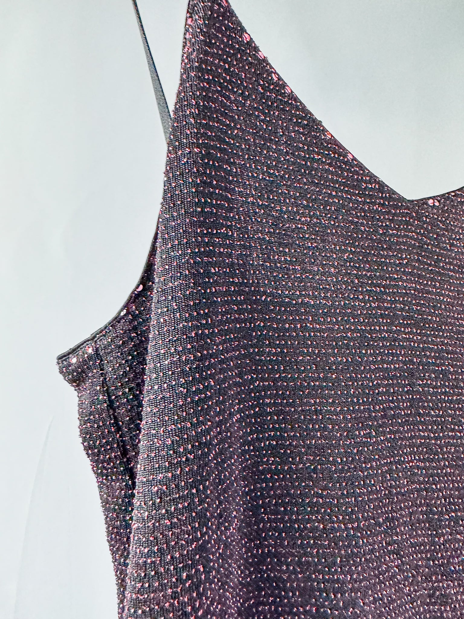Do Do Bar Or Black Sparkly Pink Knit Cami Slip Mini Dress