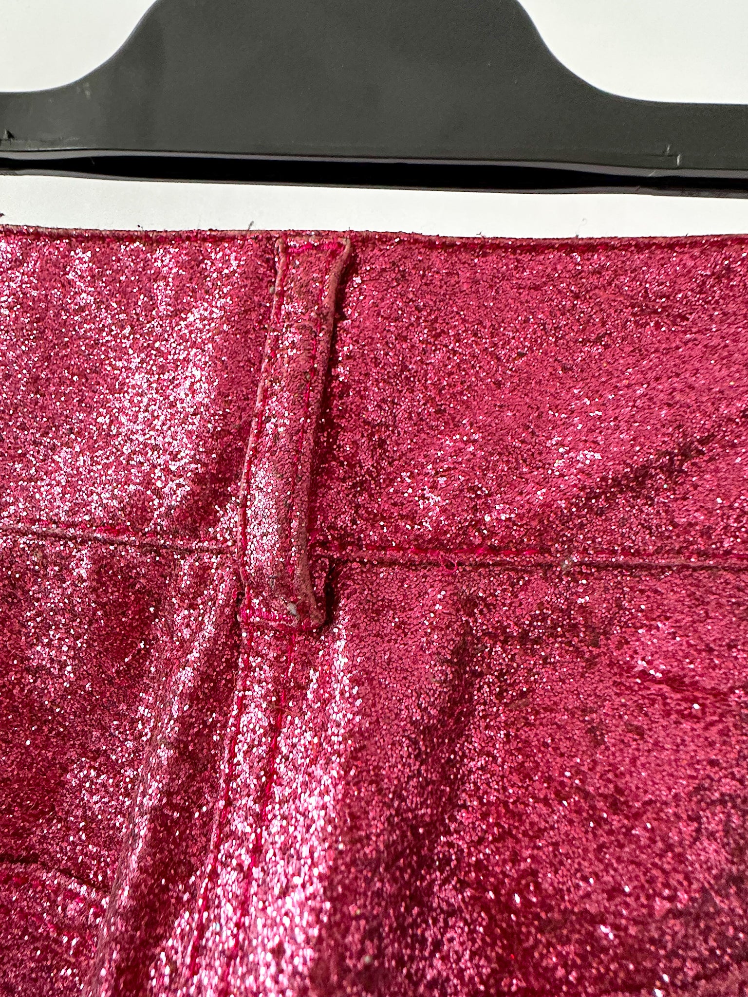 Due to the nature of this type of fabric, it has minor flaws such as peeling (from the clips of the hanger) and dust marks from storage. It is an ex-return from Matches Fashion which appears to be have been used. The inside care & size labels have been cut off. Please also note these trousers has been coated in glitter so there will be excess glitter like with any glitter product.