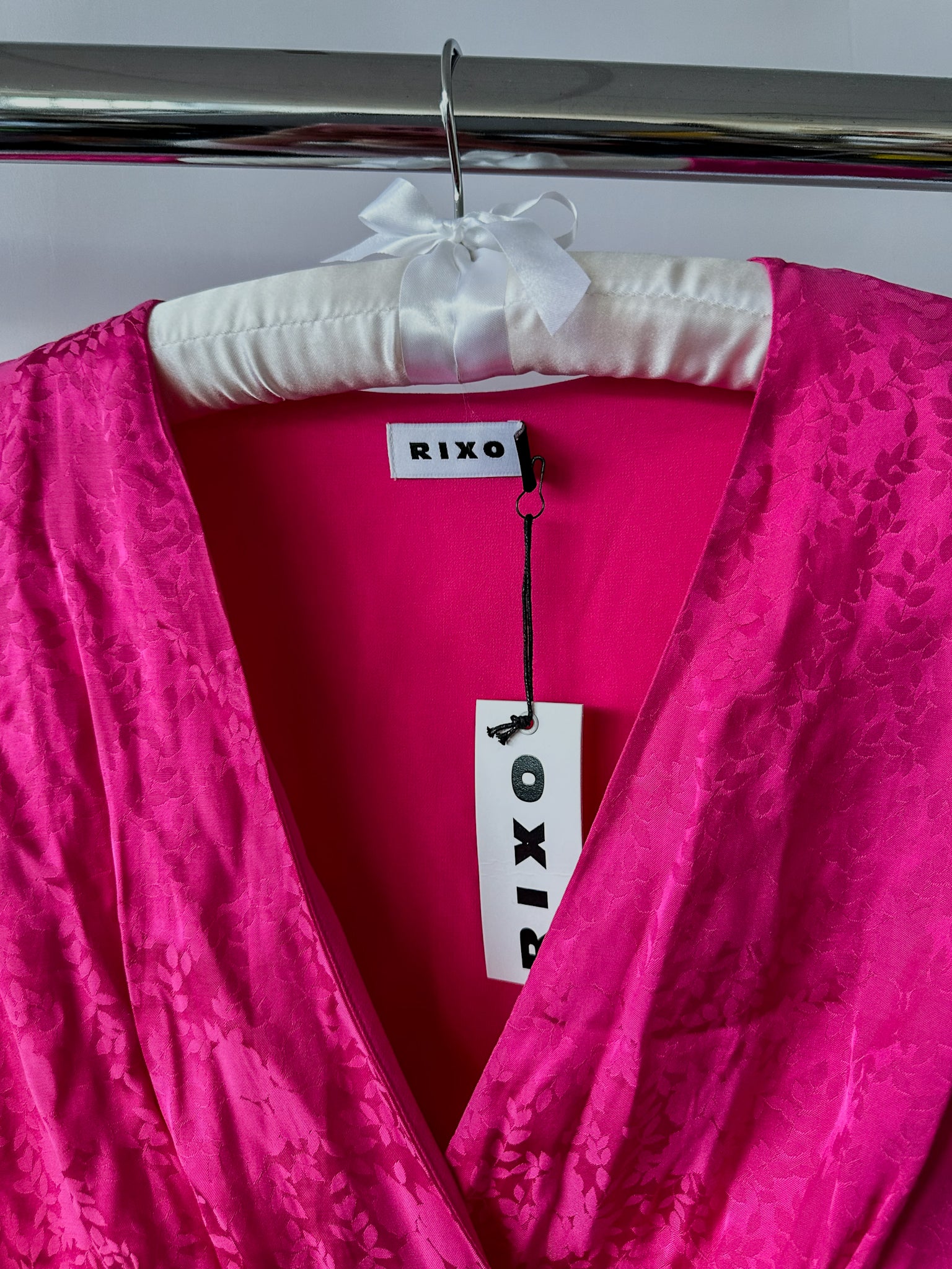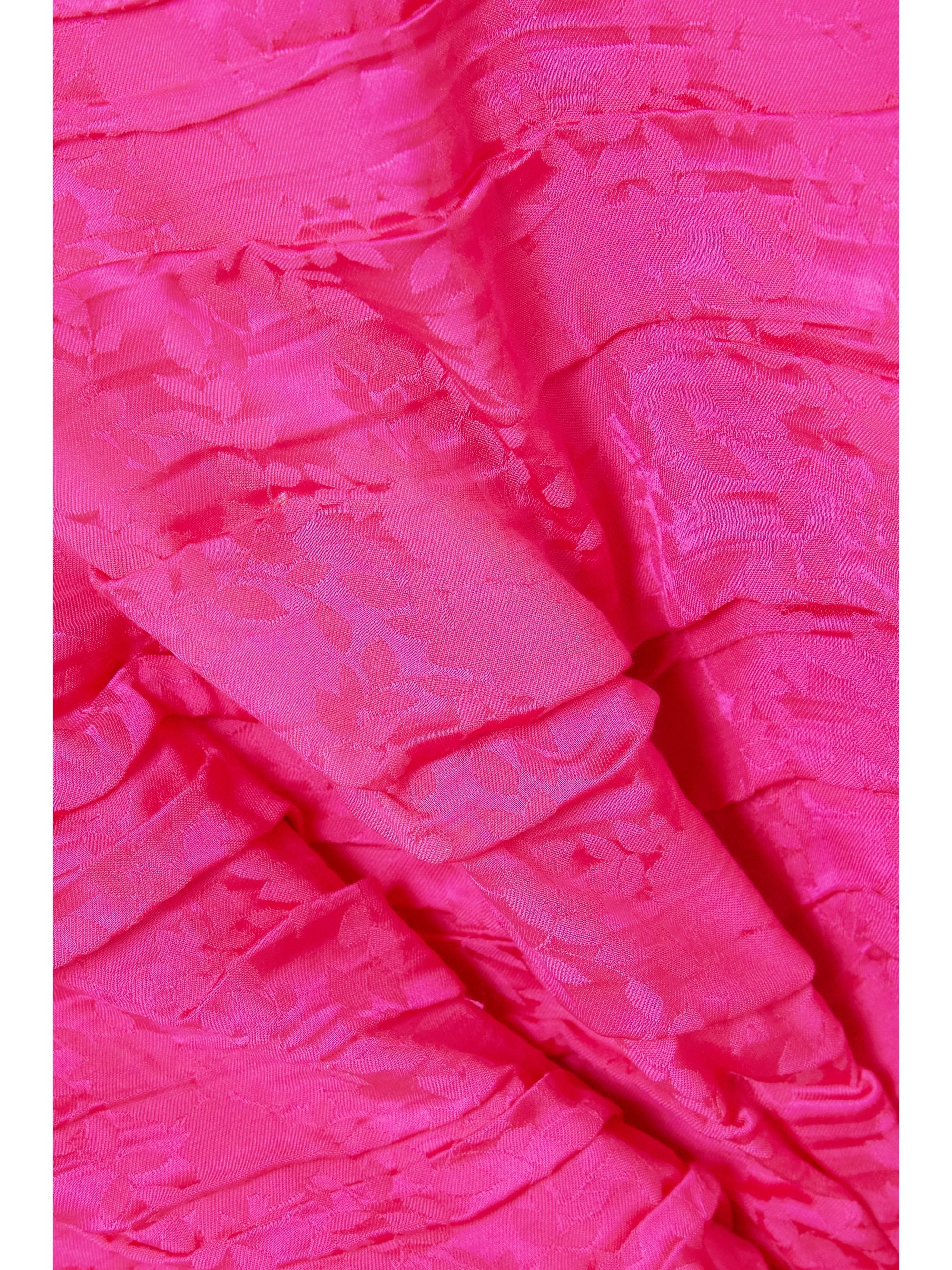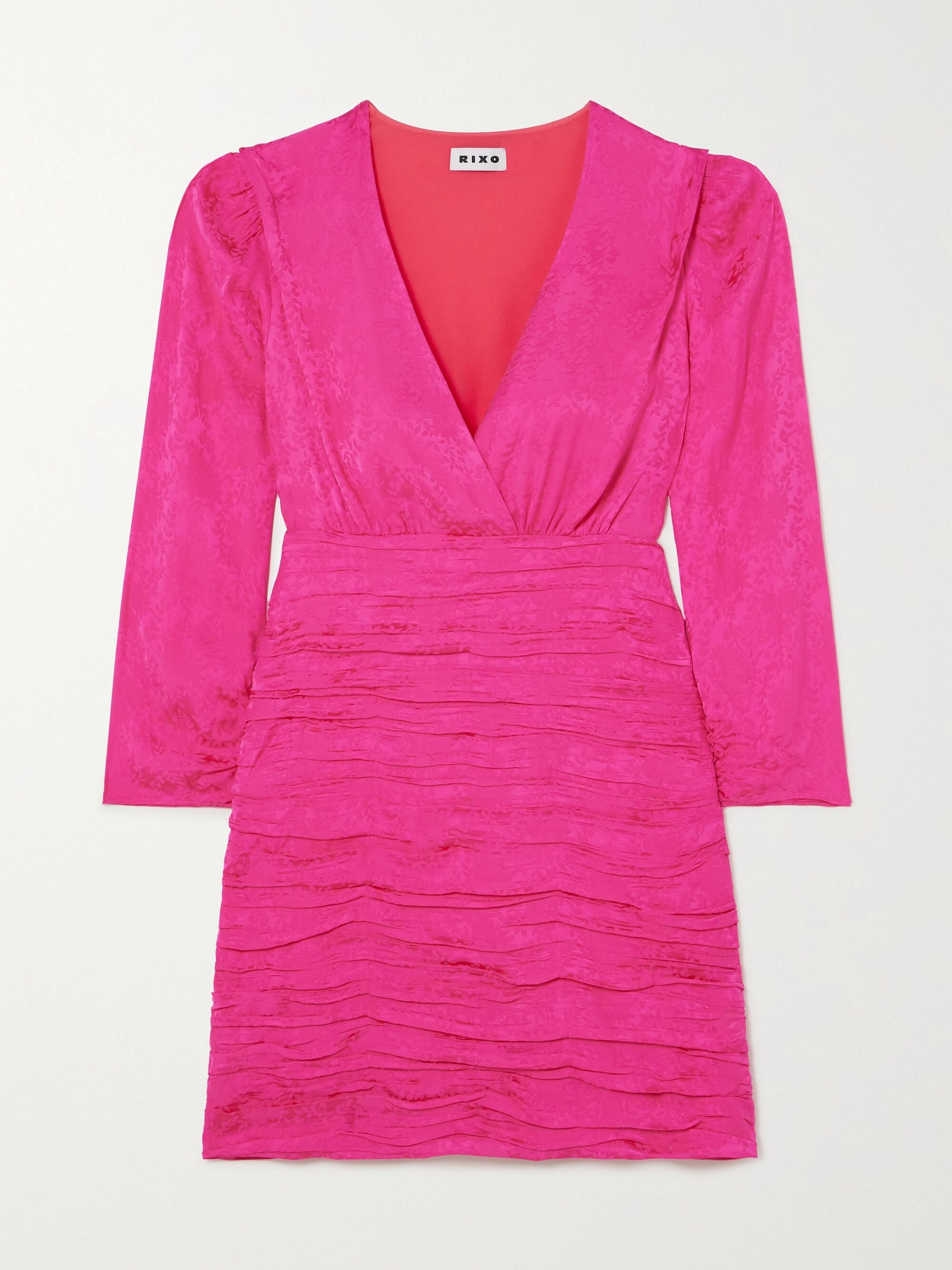 Rixo Ruched Satin Rose Jacquard Pink Mini Dress