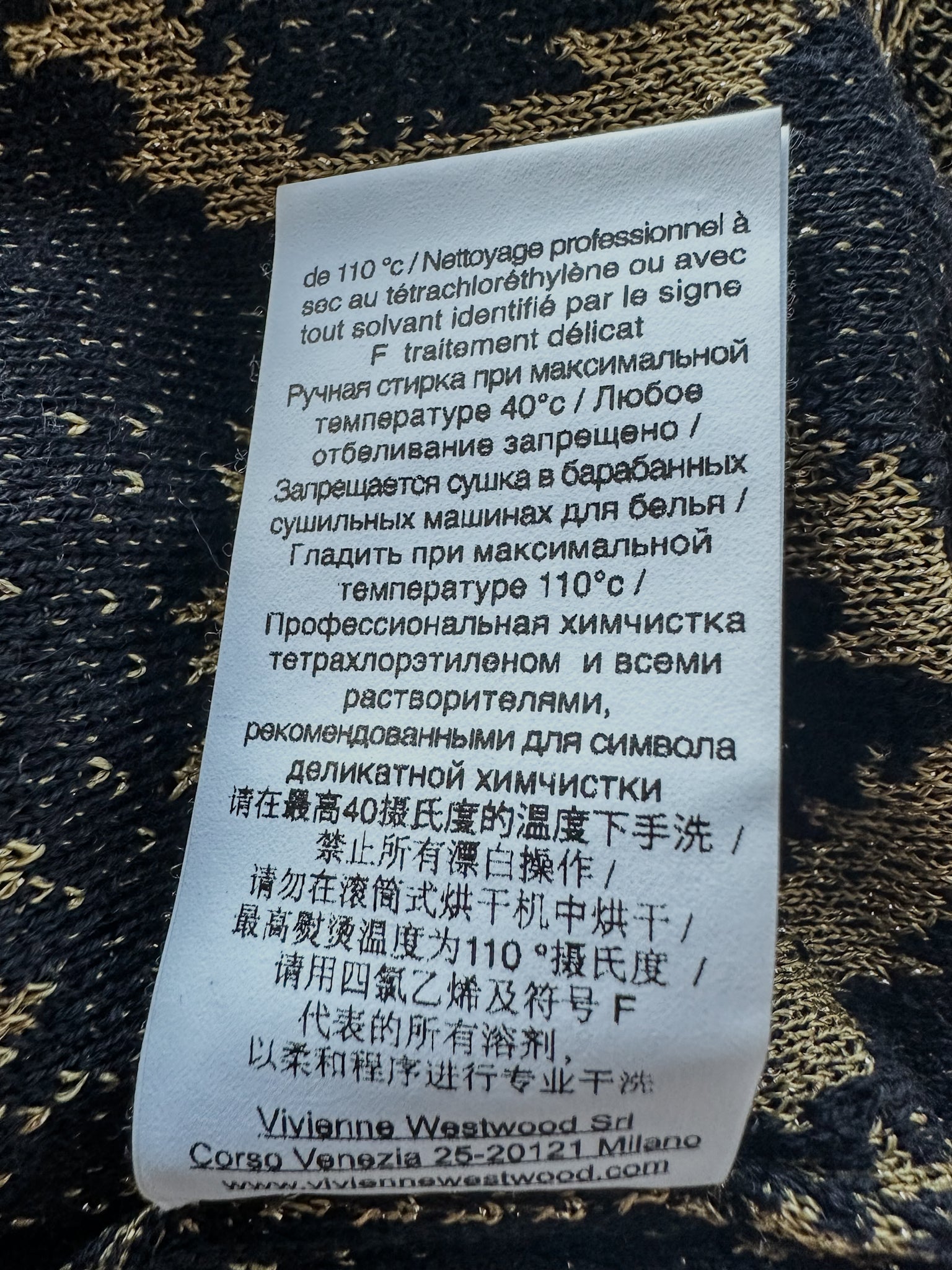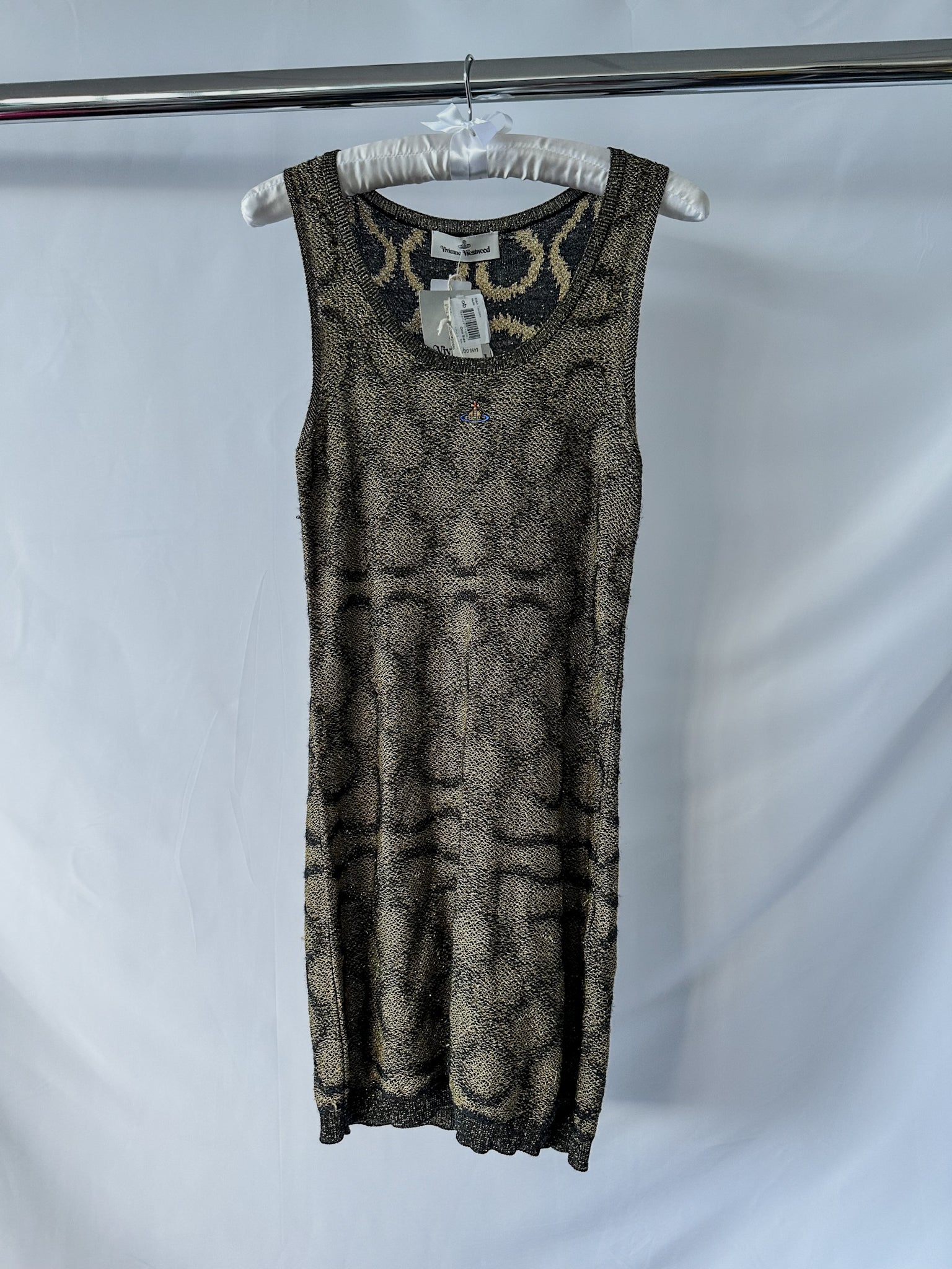 Vivienne Westwood Squiggle Print Knit Black Gold Metallic Mini Dress