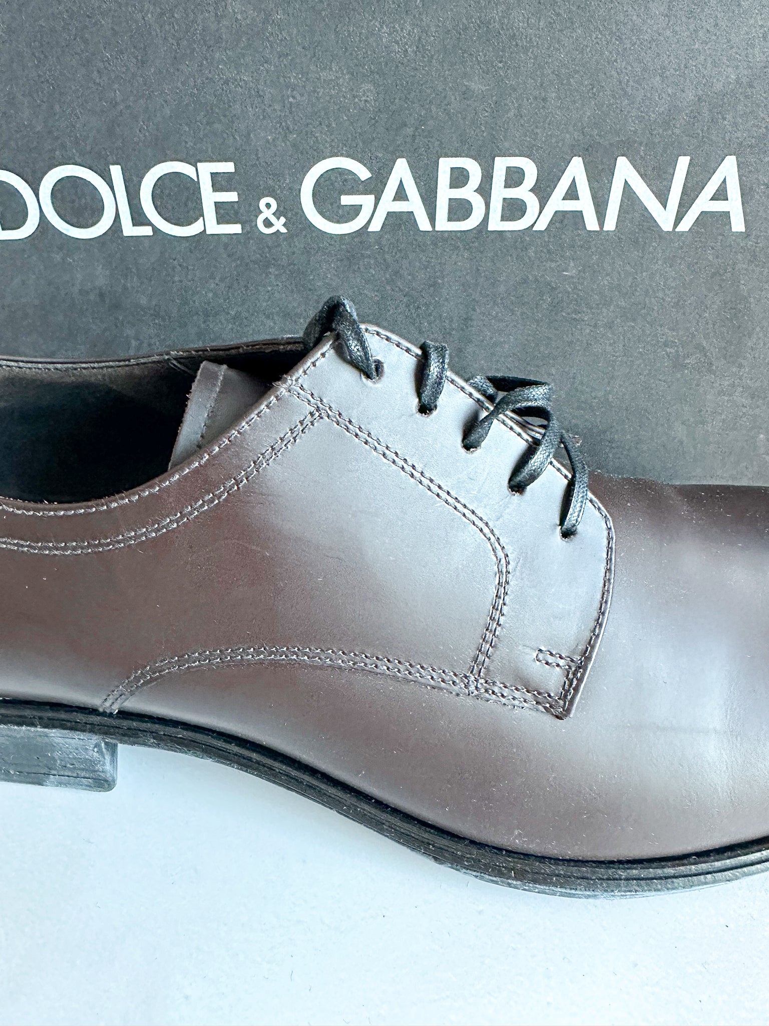 Dolce And Gabbana Brown Faux Leather Derby shoes