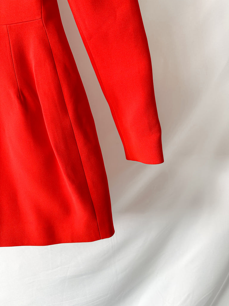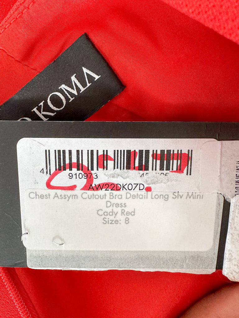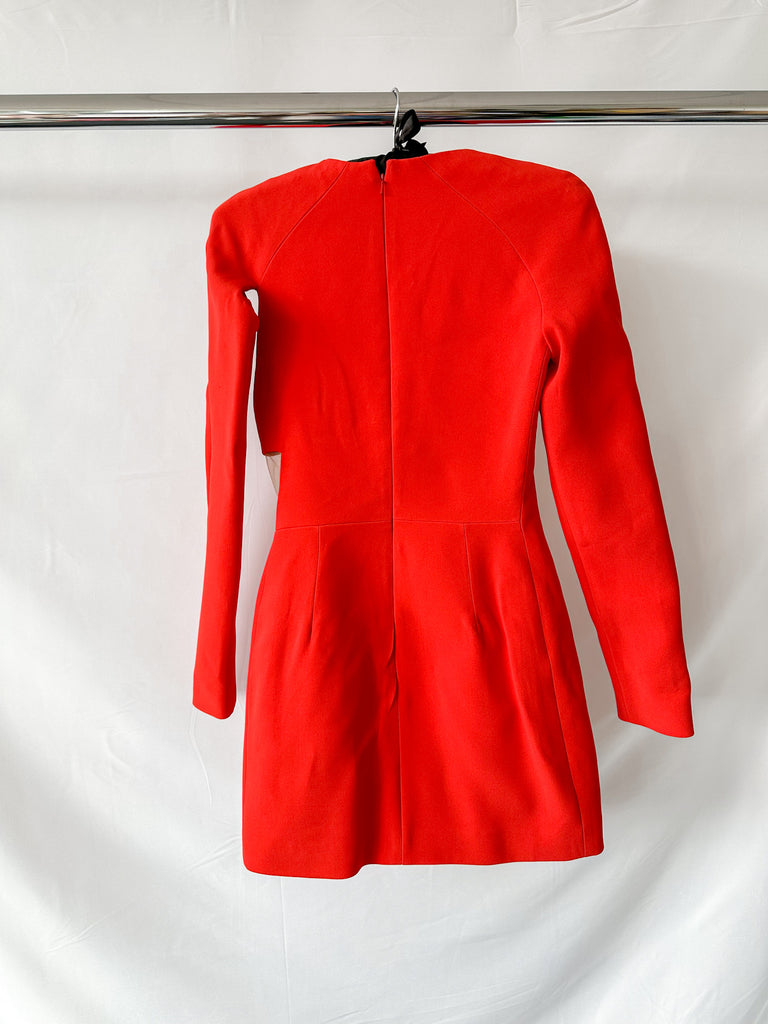David Koma Red Bra Detail Cut-Out Mesh Waist Long Sleeve Mini Dress