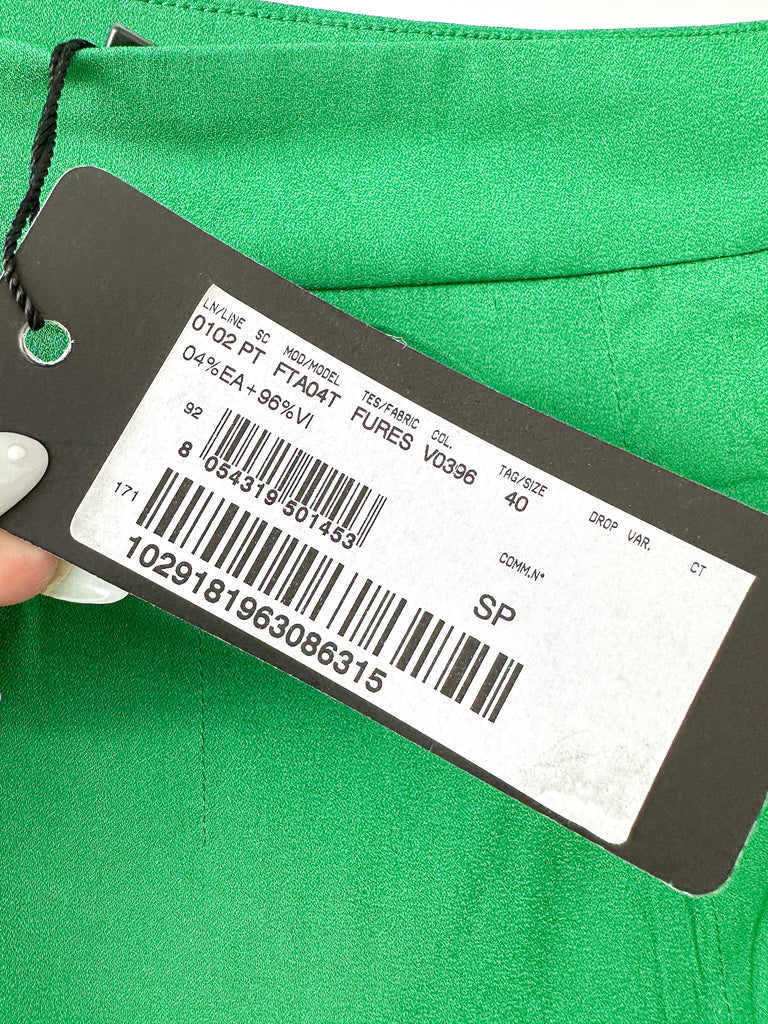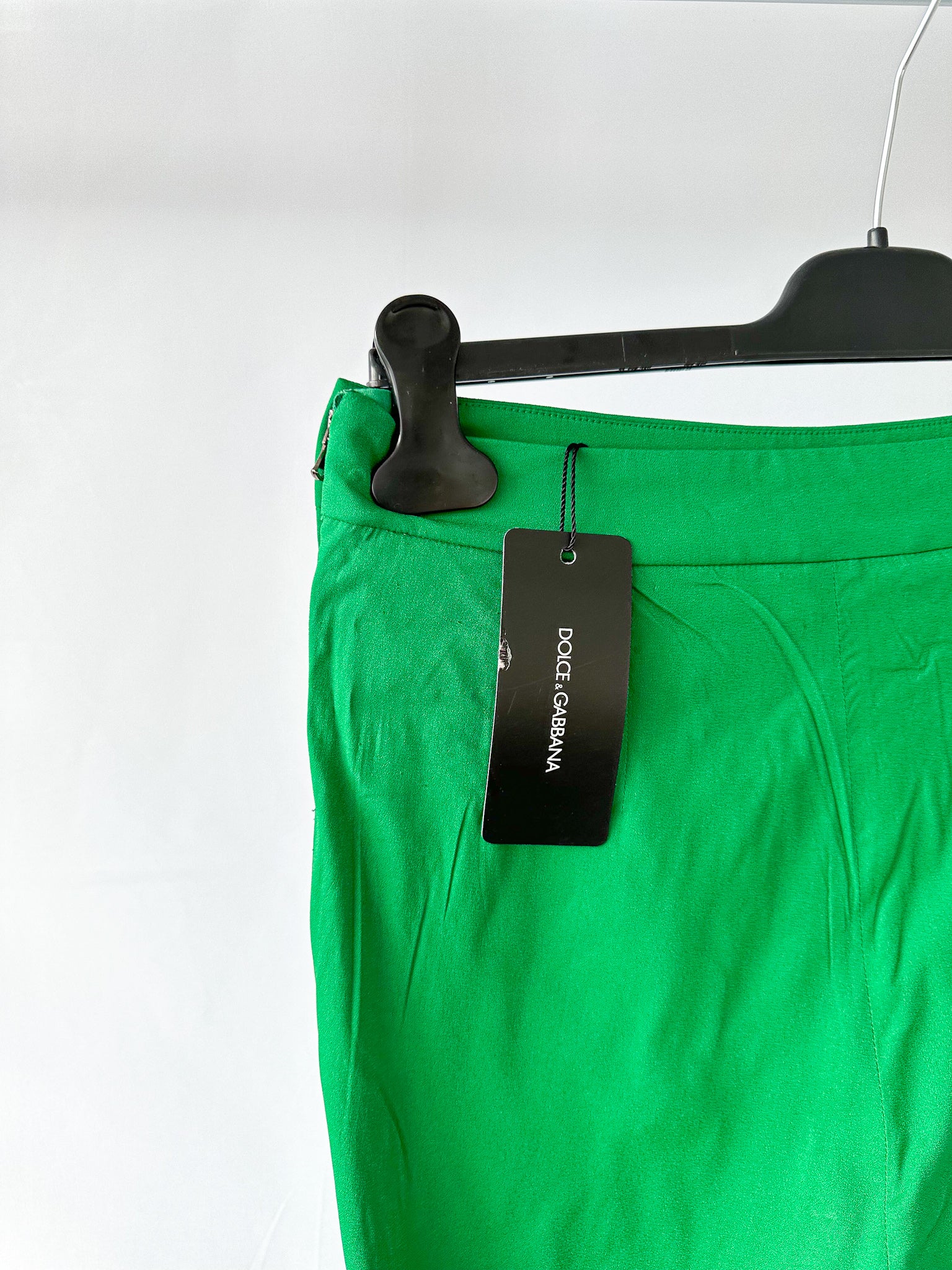 Capture the essence of an Italian summer with these playful Dolce & Gabbana green trousers. Their frilly flounce layers and flared bell-bottom design bring a lively, carefree vibe perfect for enjoying la dolce vita in style. Bright, bold, and full of personality, they’re your go-to for sunny days and festive nights.