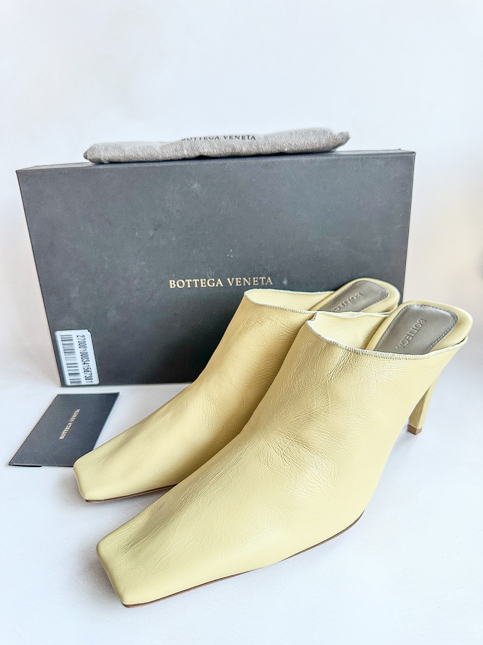Bottega Veneta Yellow Crunch Lux Leather Square Toe Mules Heels