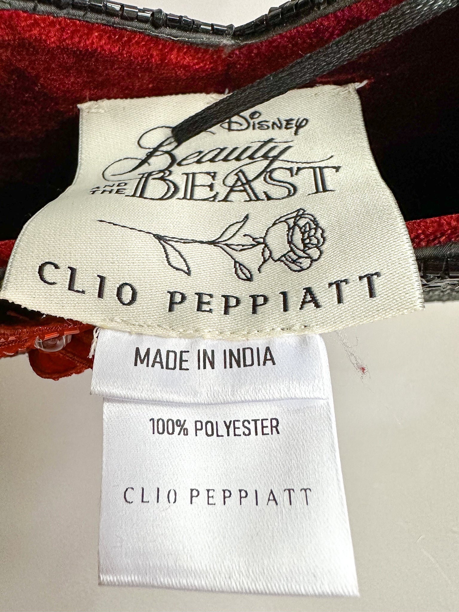 Carry a touch of magic with this enchanting collaboration between Clio Peppiatt and Disney. Crafted by Harry Lambert, this satin bag features delicate beading inspired by Beauty and the Beast's iconic Enchanted Rose, shaped as a charming heart. Perfect for Disney devotees and fashion lovers alike, it's a whimsical accessory that transforms any outfit into a fairytale moment. Intricate beadwork make it as beautiful displayed as it is functional.
