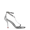 Alexander McQueen's iconic harness motif translates into refined footwear with this heeled sandal, where a delicate T-bar emblem sits atop the silhouette. A masterful balance of desire and restraint, the design captures the House's core aesthetic through understated elegance. The structured heel provides confident presence, while the signature harness detail offers a whispered nod to McQueen's heritage. Perfect for those who appreciate conceptual design woven into wearable luxury.