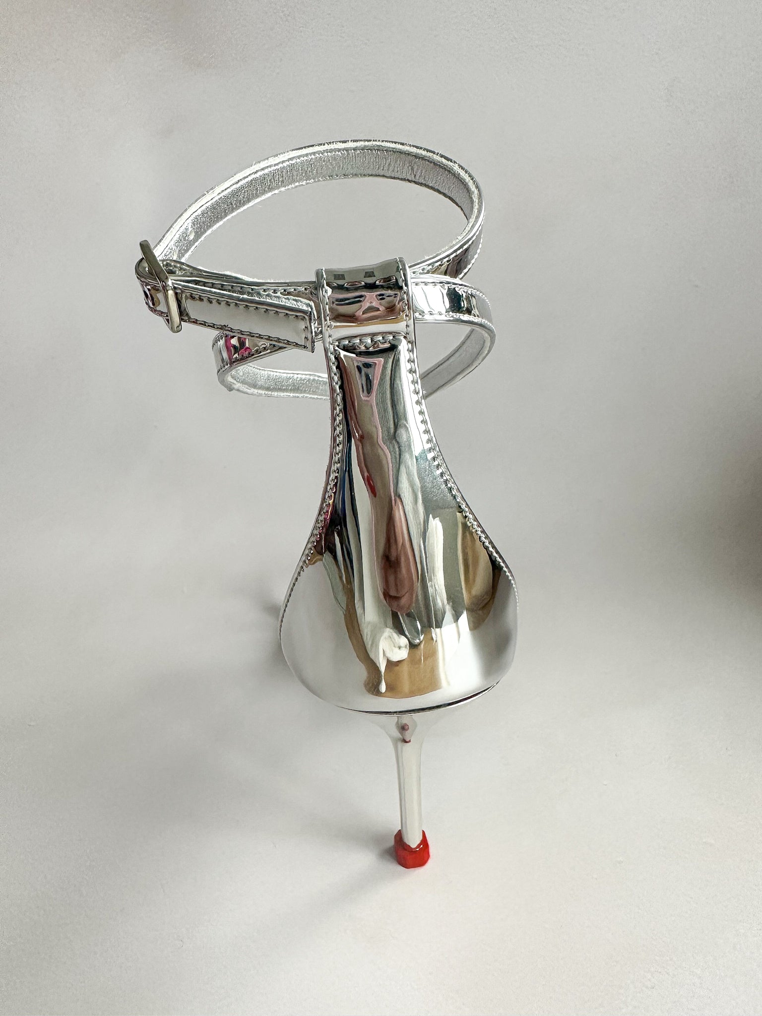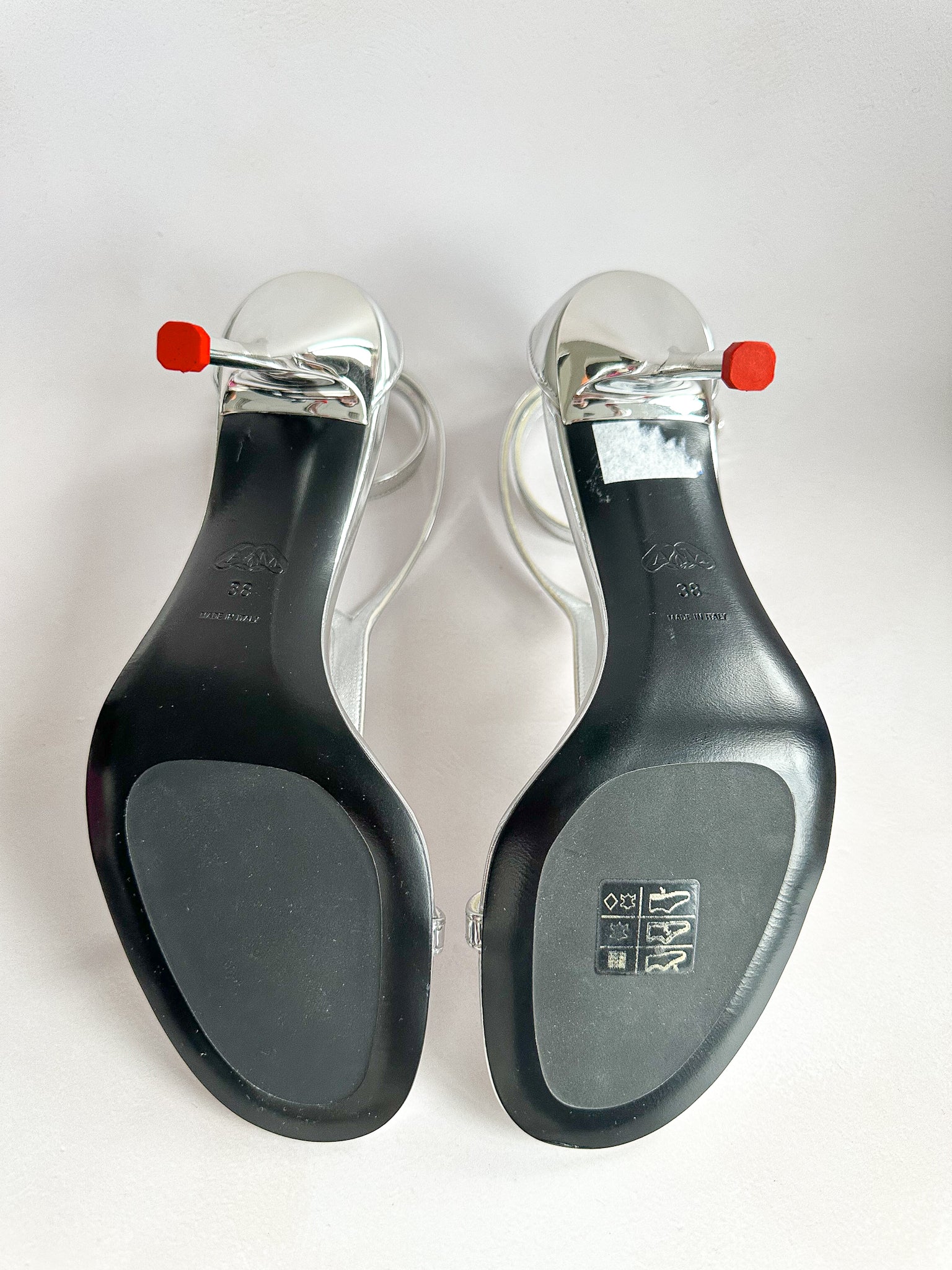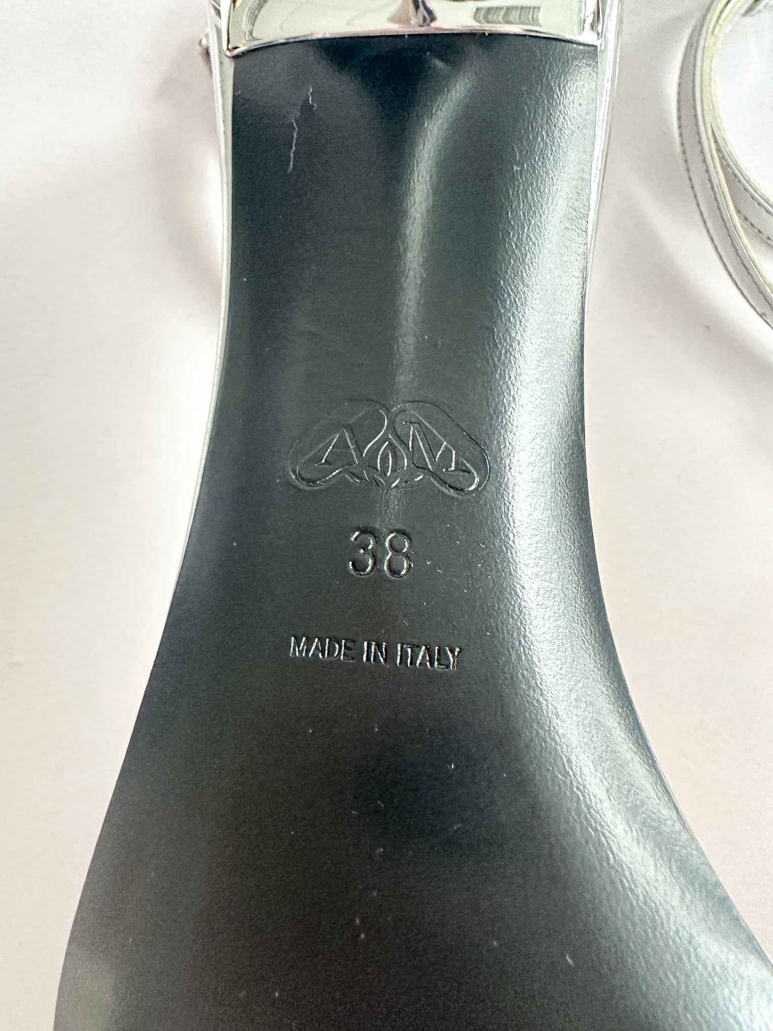 Alexander McQueen Silver Mirror Leather Harness Heeled Sandals 90