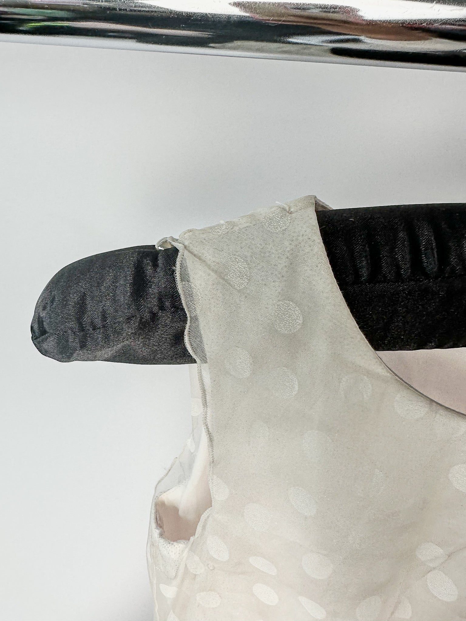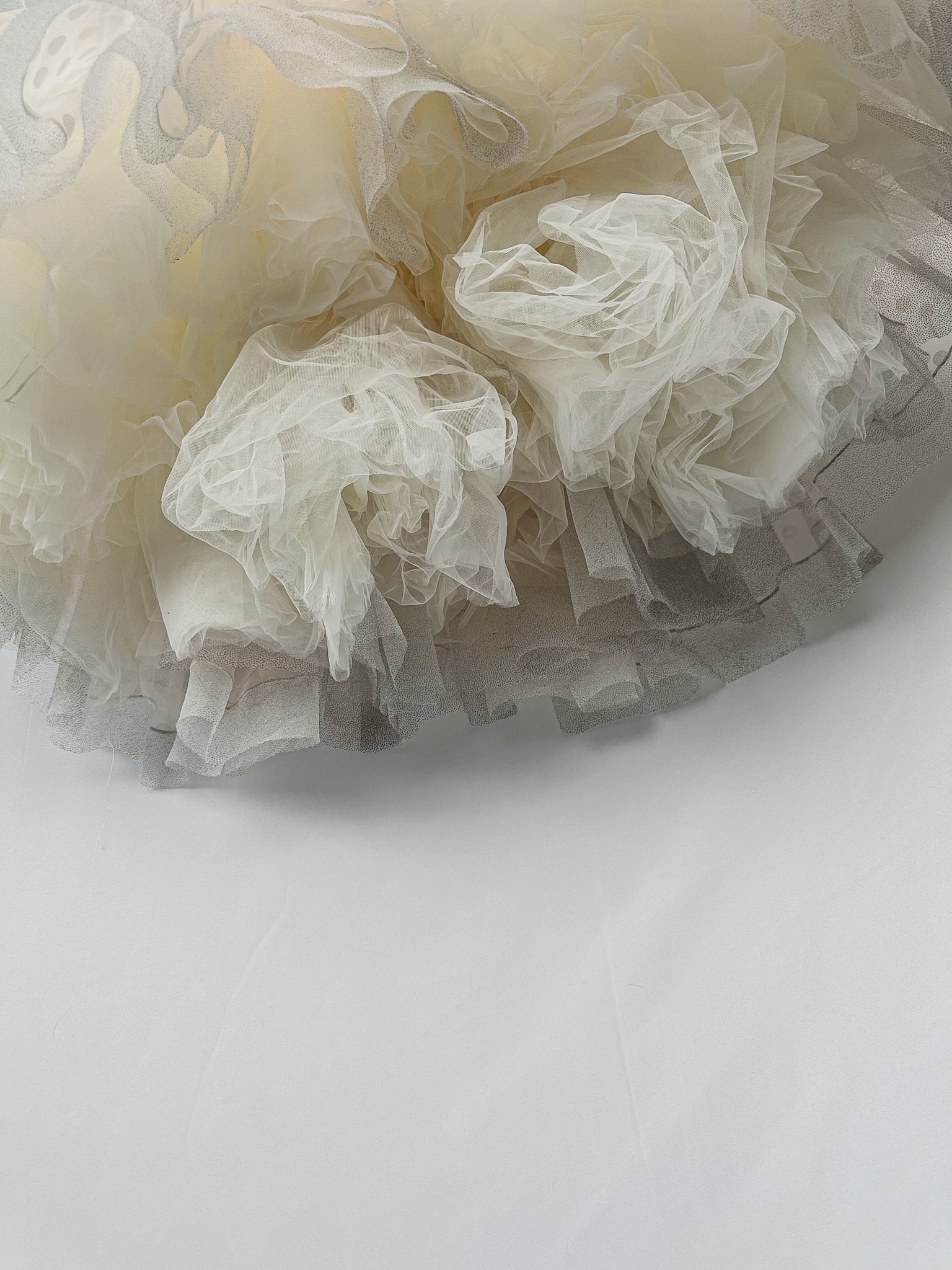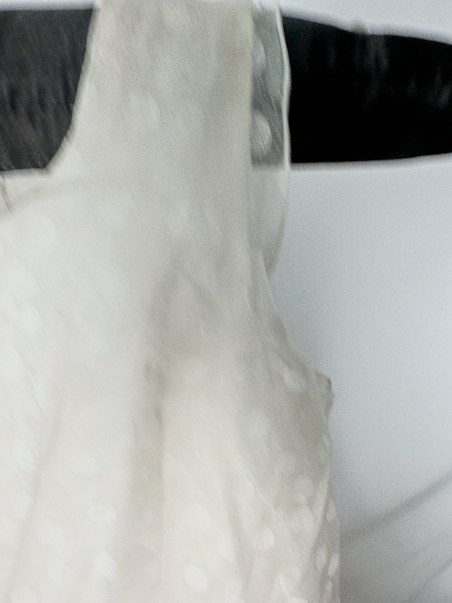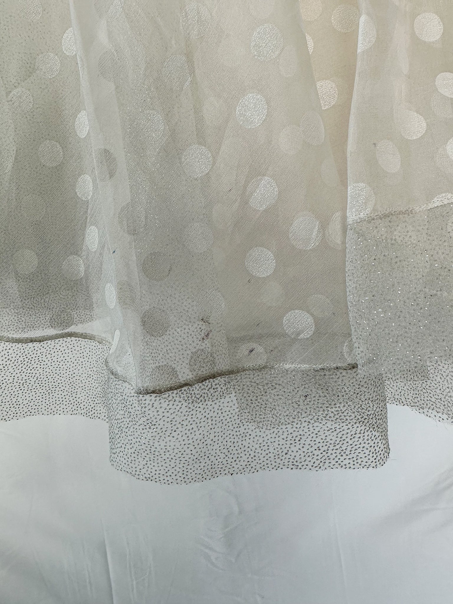 Discover timeless elegance with this Monnalisa Kids polka dot organza dress in soft rosy pink and white. The voluminous tulle skirt creates a graceful, twirling silhouette perfect for special occasions. Brand new with minor storage marks easily remedied by dry cleaning—we've priced it accessibly to accommodate this. Complete the look with your own statement belt for added charm and personality.
