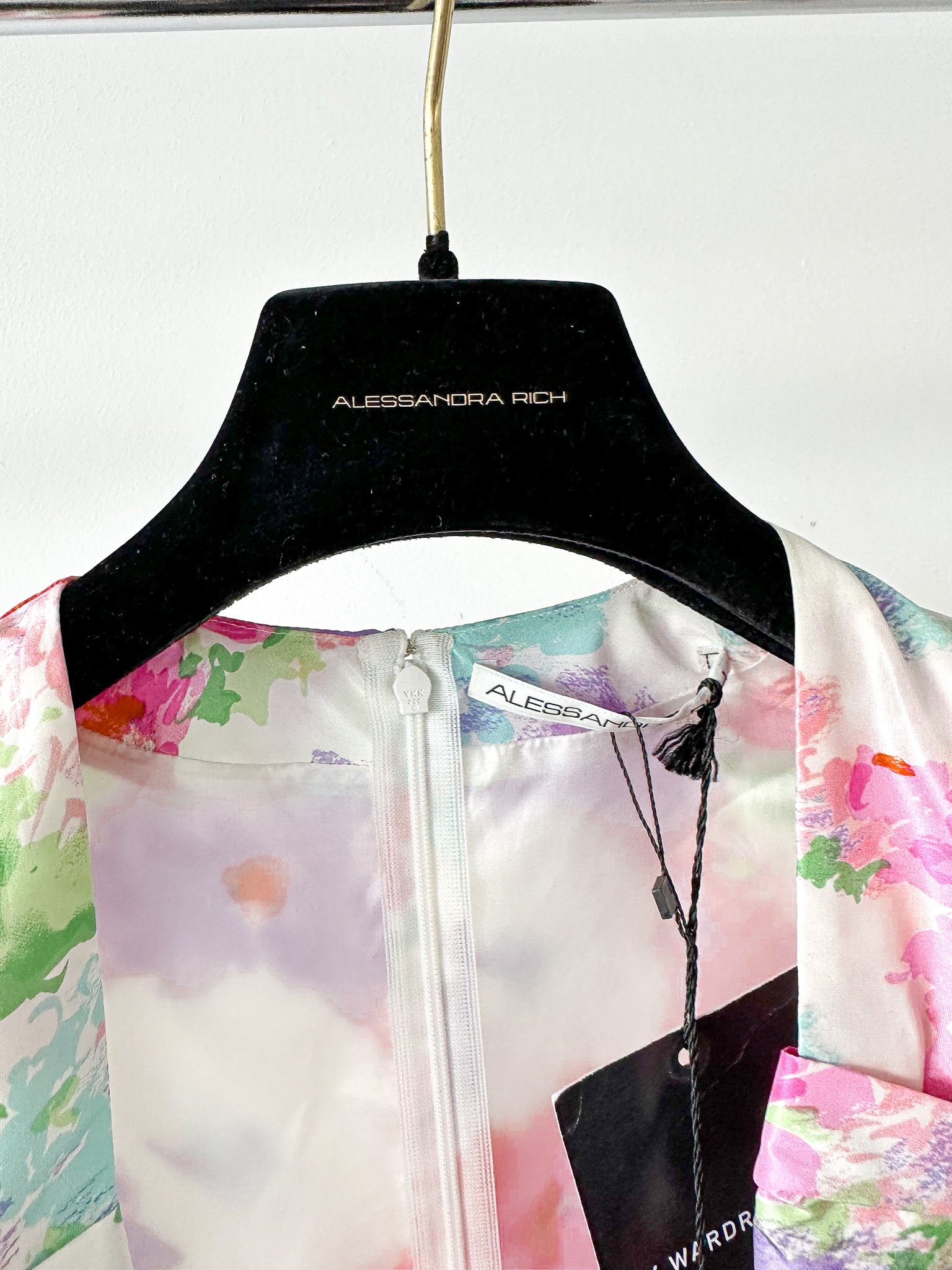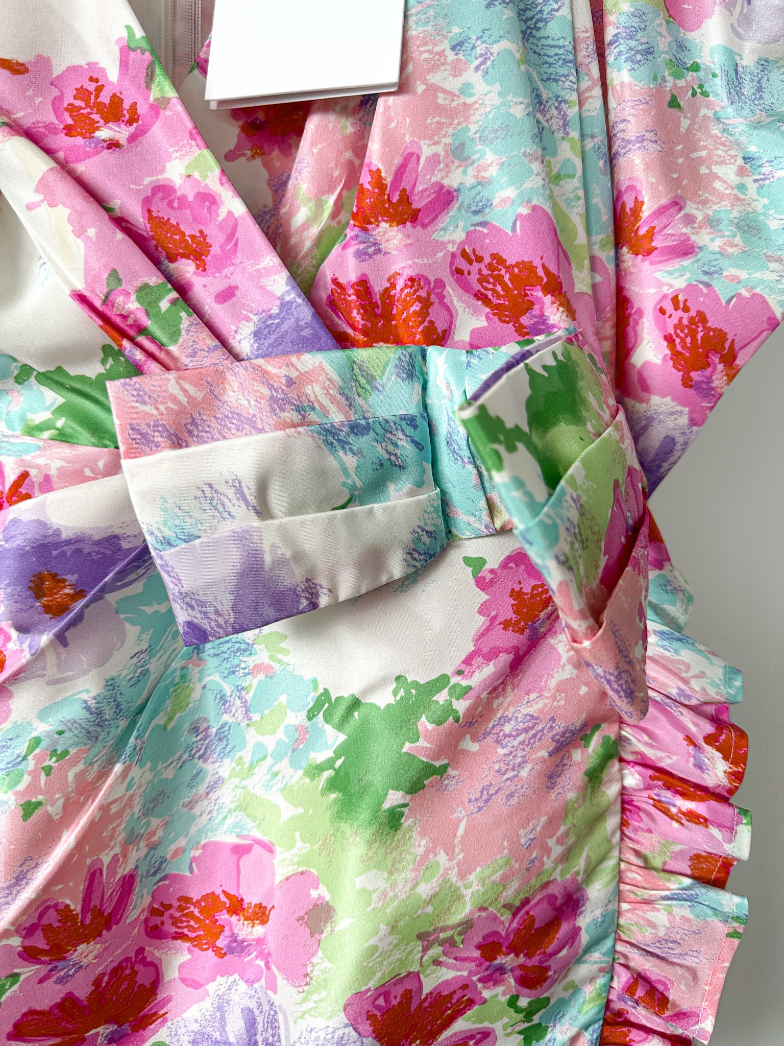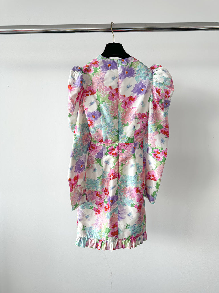Alessandra bohaté květinové tisk taffeta luk přední volání detail mini šaty