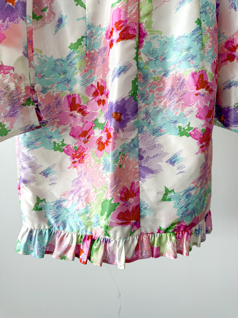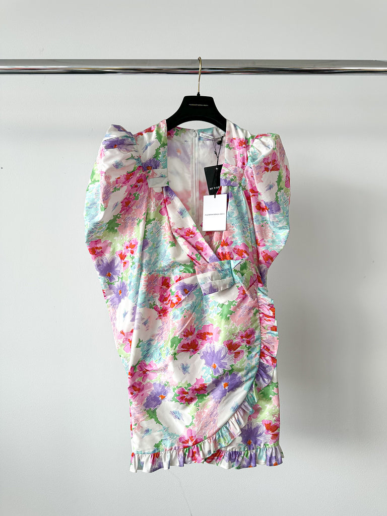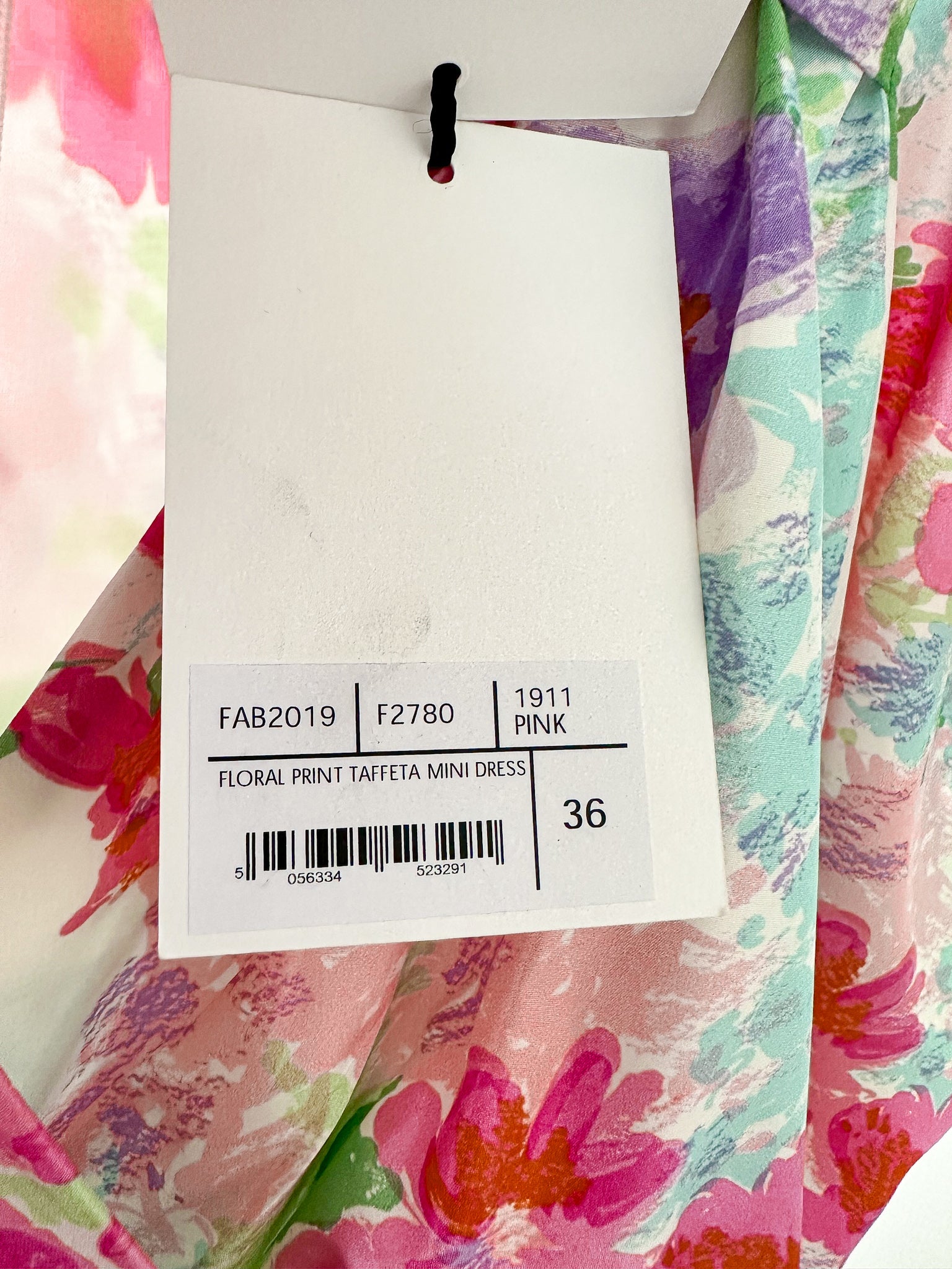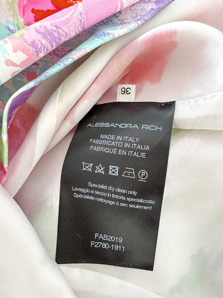 Alessandra bohaté květinové tisk taffeta luk přední volání detail mini šaty