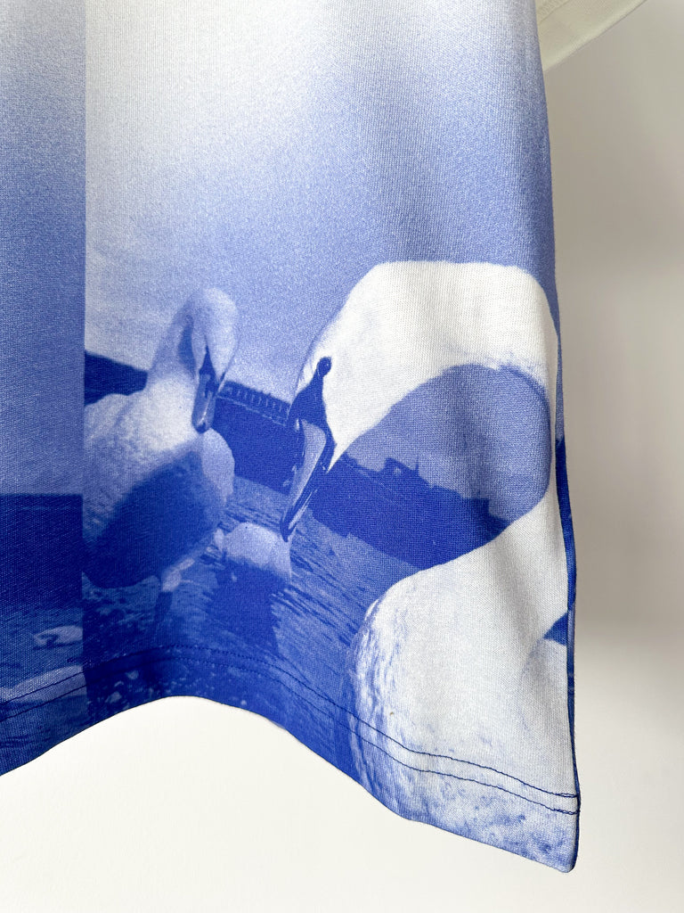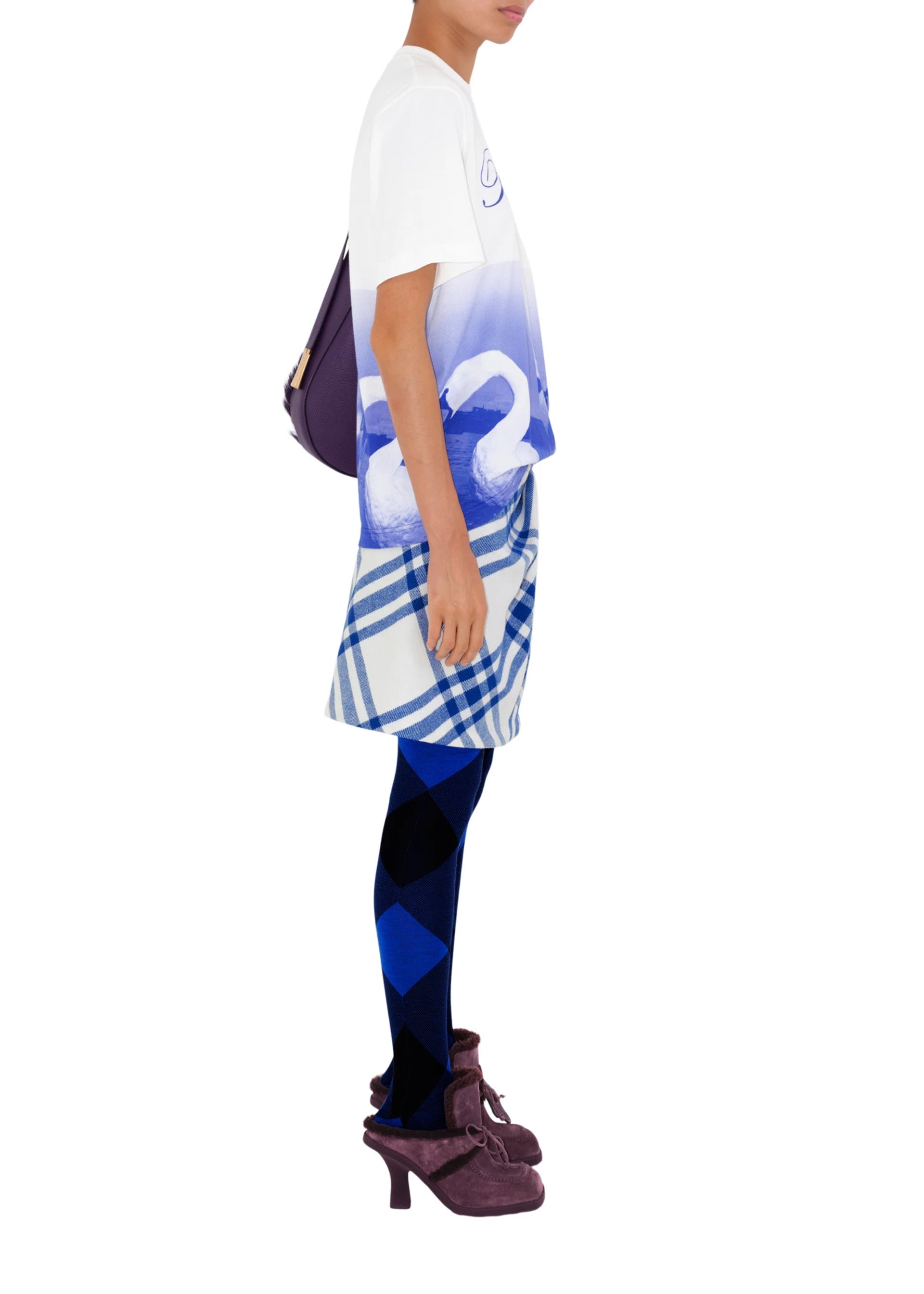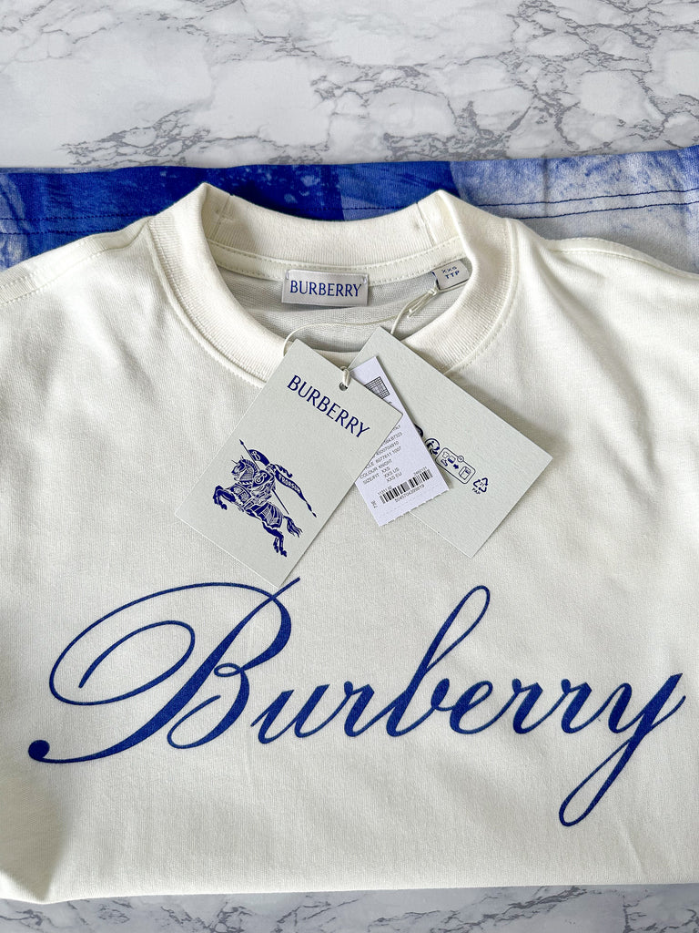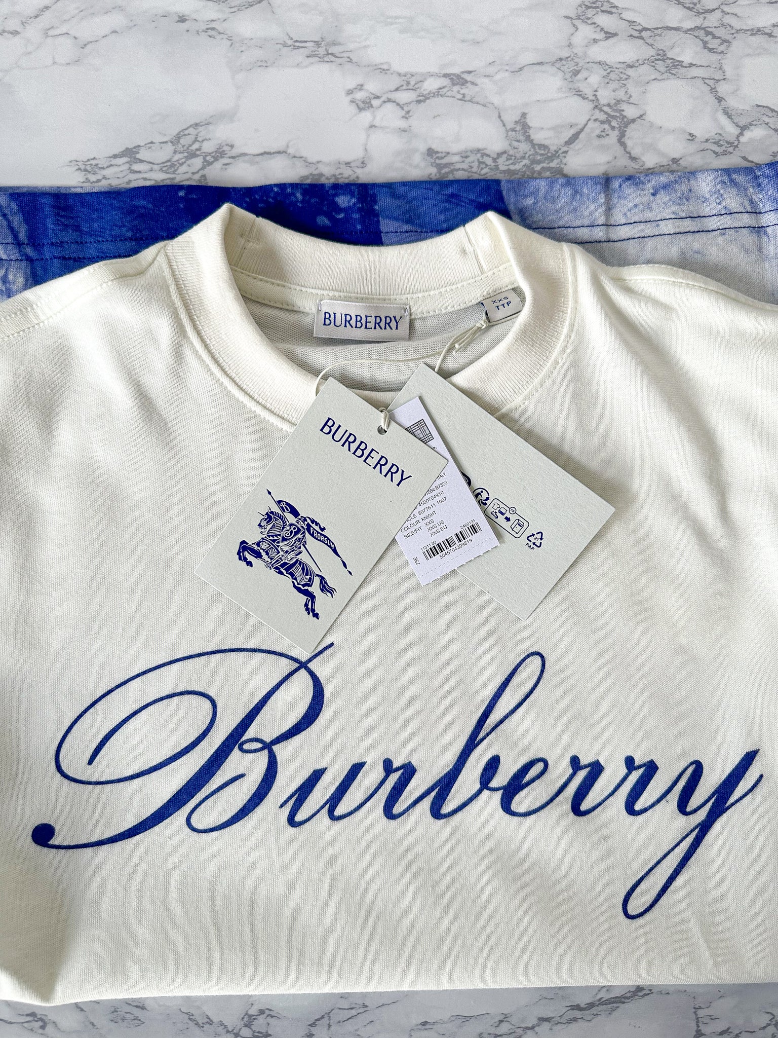 Get ready to make a splash with this Burberry Swan Spell Out White T Shirt. Made in Italy with soft cotton jersey, it features a playful swan and logo print. Designed with a relaxed fit and rib-knit neckline, this tee brings both comfort and style to any outfit. Dive in and make a statement today!