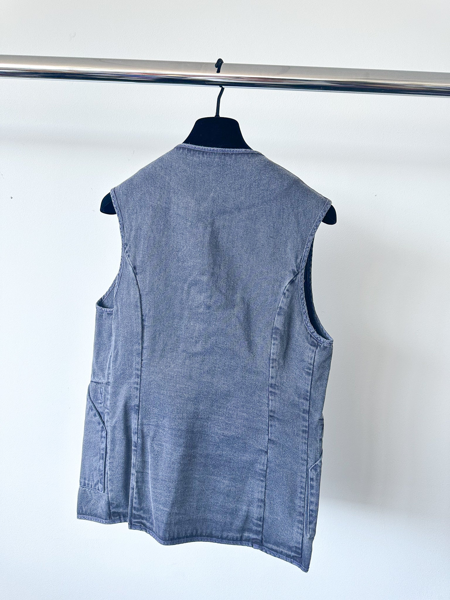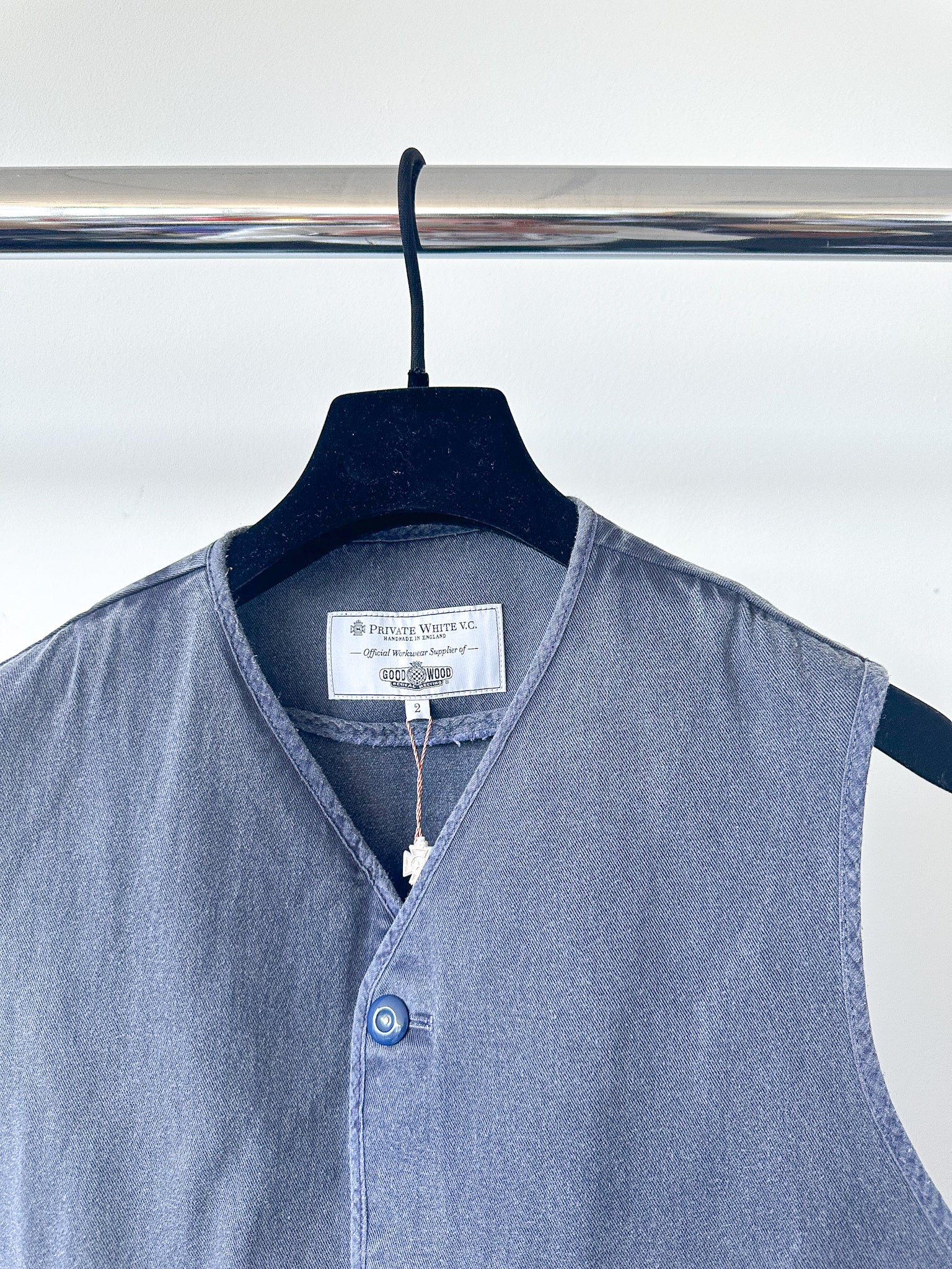 Get ready to turn heads with this Private White V.C Navy Gilet Worksuit Jerkin, a collaboration with the Goodwood Revival Meeting. Inspired by vintage mechanics' workwear, this quirky and playful piece is sure to make a statement. A perfect blend of style and functionality.
