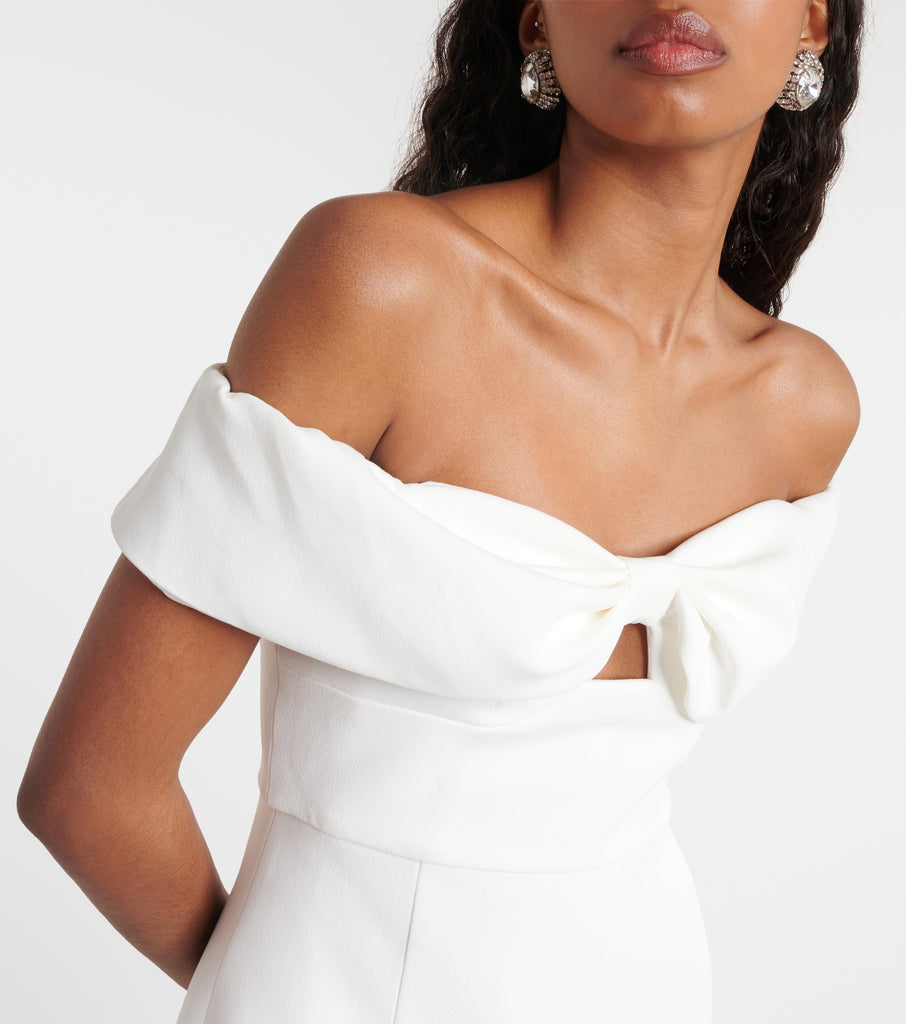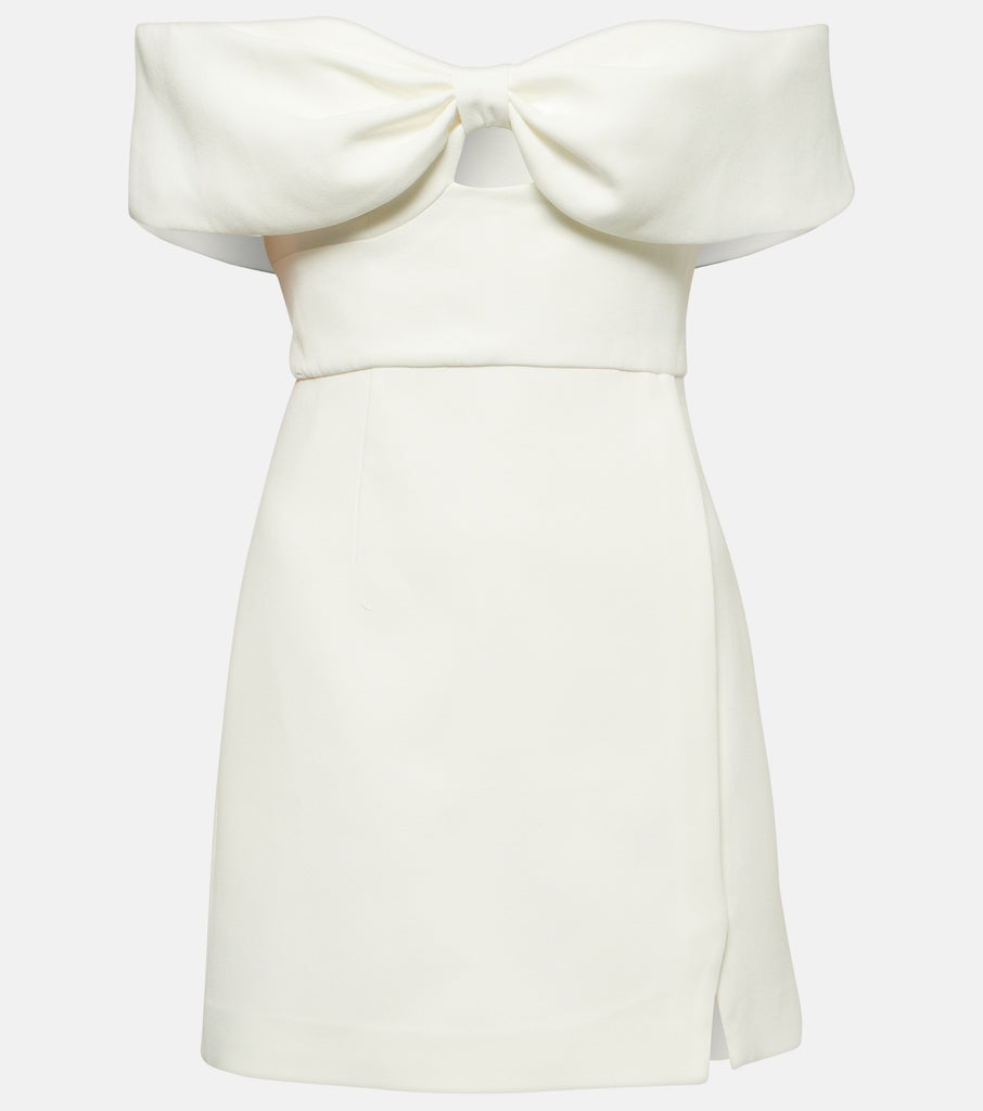 Self-Potrait White Bow Detail Off-Shoulder Crêpe Mini Dress