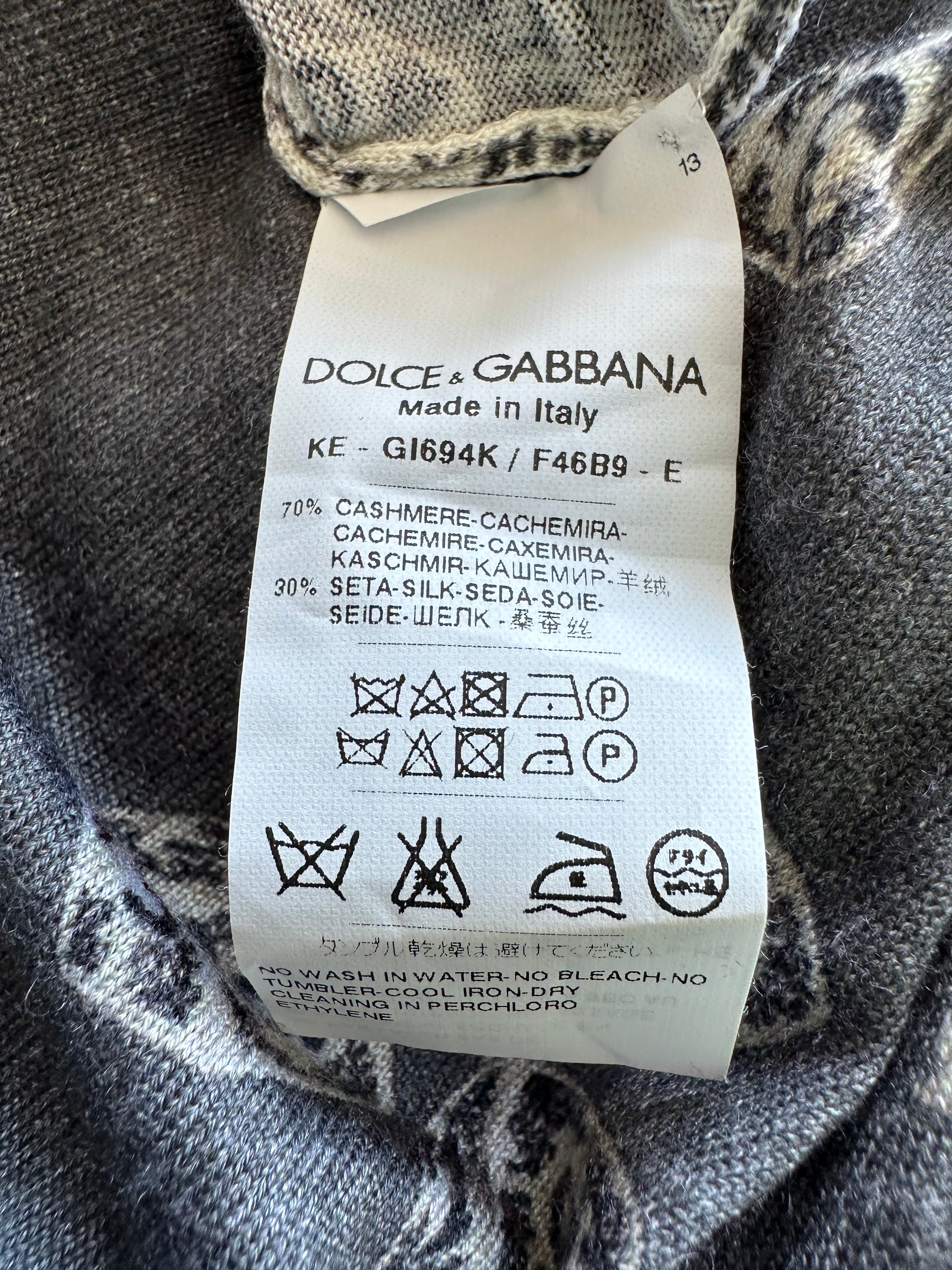 Enveloppez-vous de luxe et de charme avec ce pull Dolce & Gabbana. Confectionné dans un mélange soyeux de 70 % cachemire et 30 % soie, sa maille fine vous enveloppe d'une douce caresse. Son imprimé dés ludique apporte une touche d'originalité, tandis que son col polo douillet vous assure chic et confort. Idéal pour ajouter une touche de fantaisie à votre garde-robe par temps frais !
