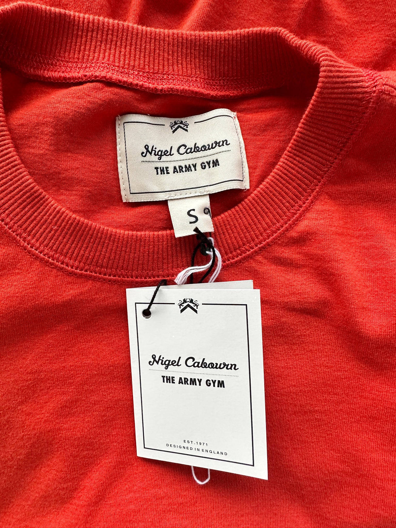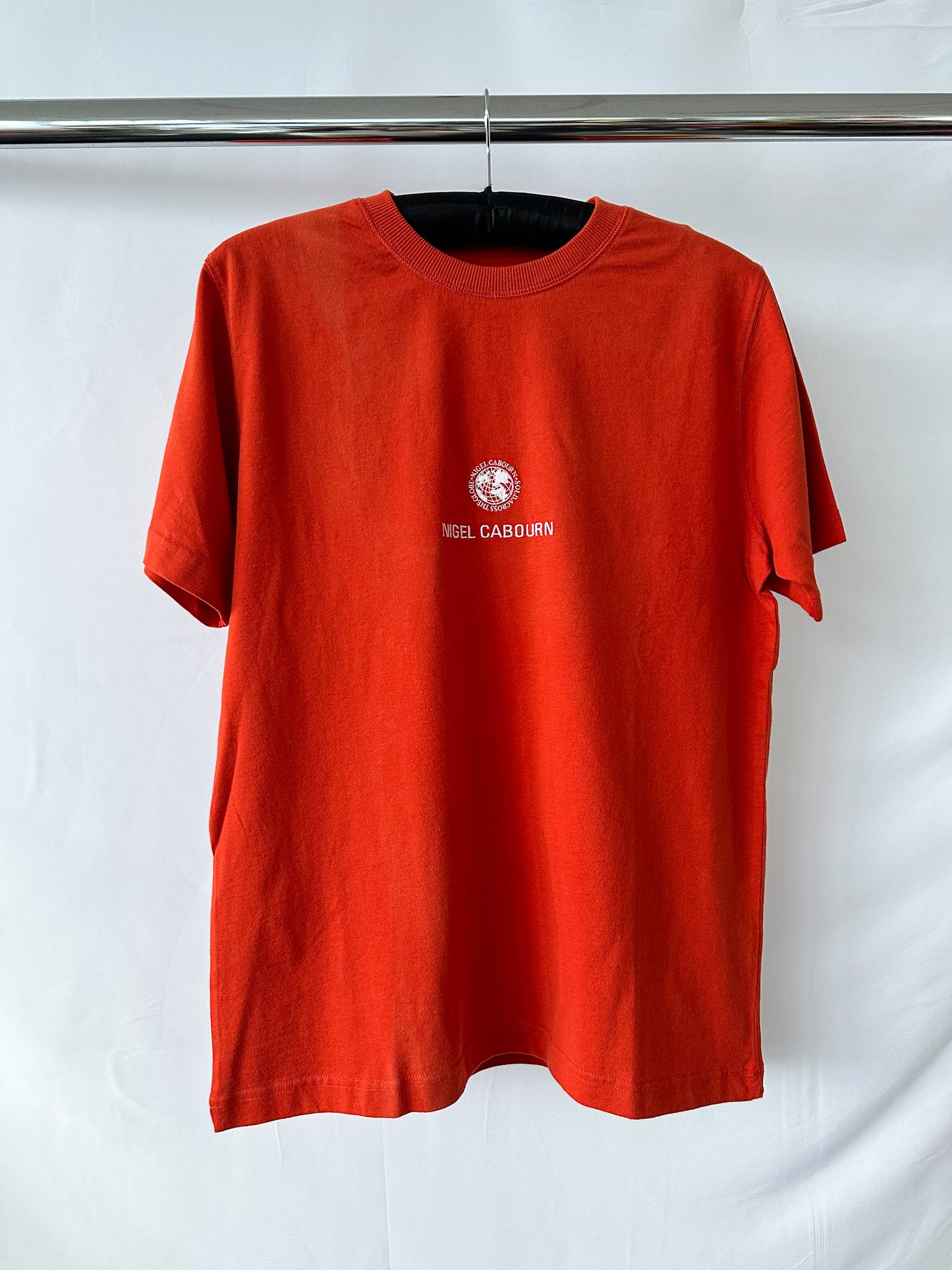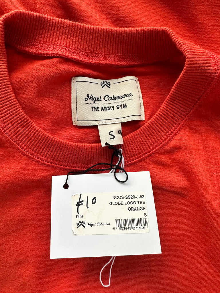 Nigel Cabourn Burnt Orange Globe Logo Broder Spellout tee