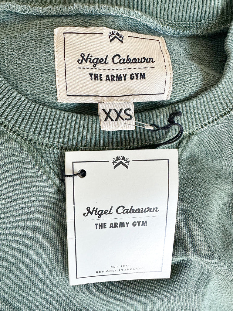 Sweat-shirt d'entraînement vert USMC à poche kangourou de Nigel Cabourn