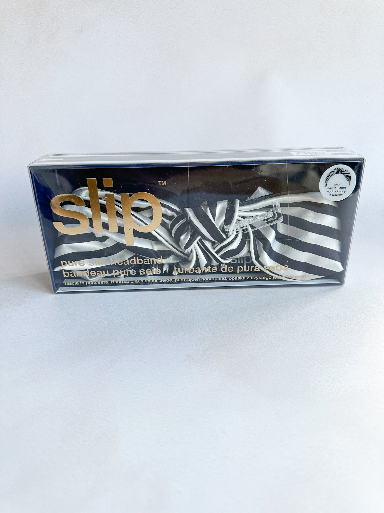 Bandeau en pure soie Slip The Twist à rayures marines, en boîte
