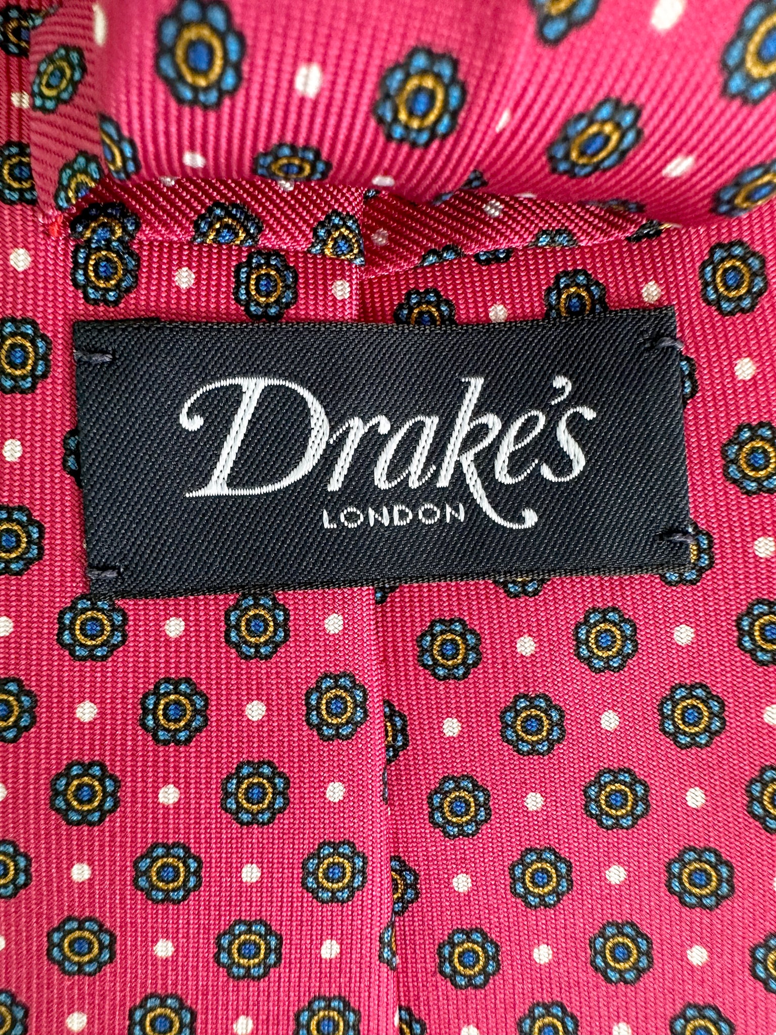 Ajoutez une touche de charme à votre tenue avec la cravate en soie à imprimé floral Daisy rose foncé de Drake. Ornée d'un motif de marguerites bleu foncé soigneusement bordé, cette création londonienne faite main allie à la perfection style ludique et savoir-faire raffiné. Idéale pour égayer votre look tout en restant élégante et ludique.
