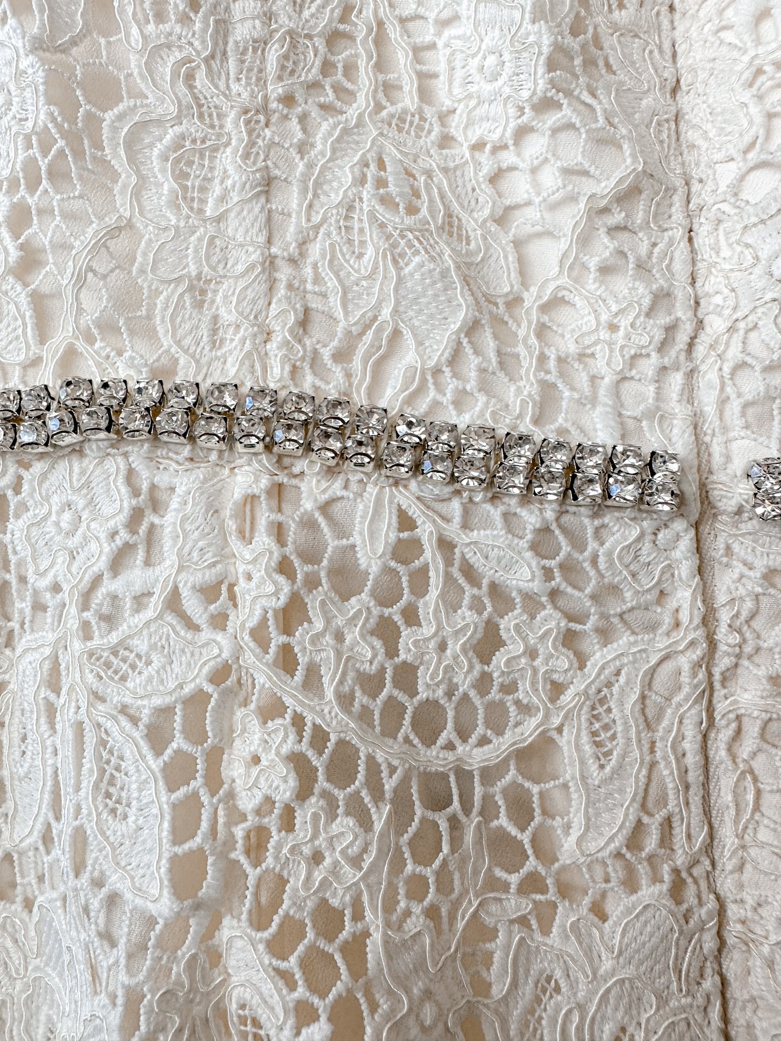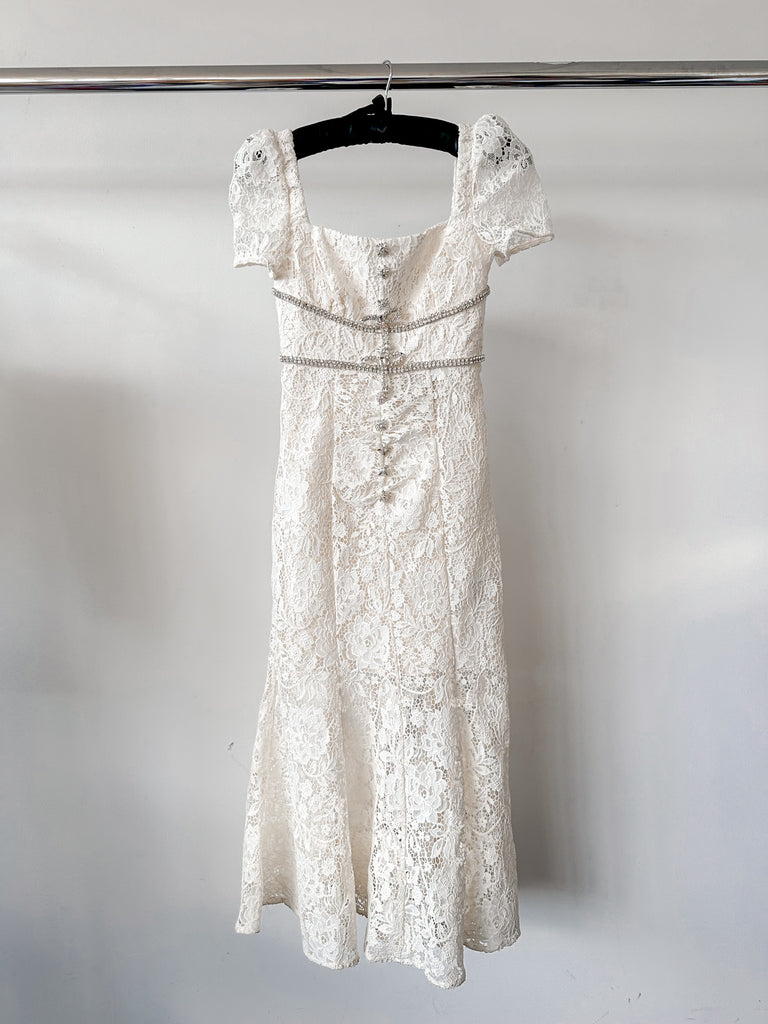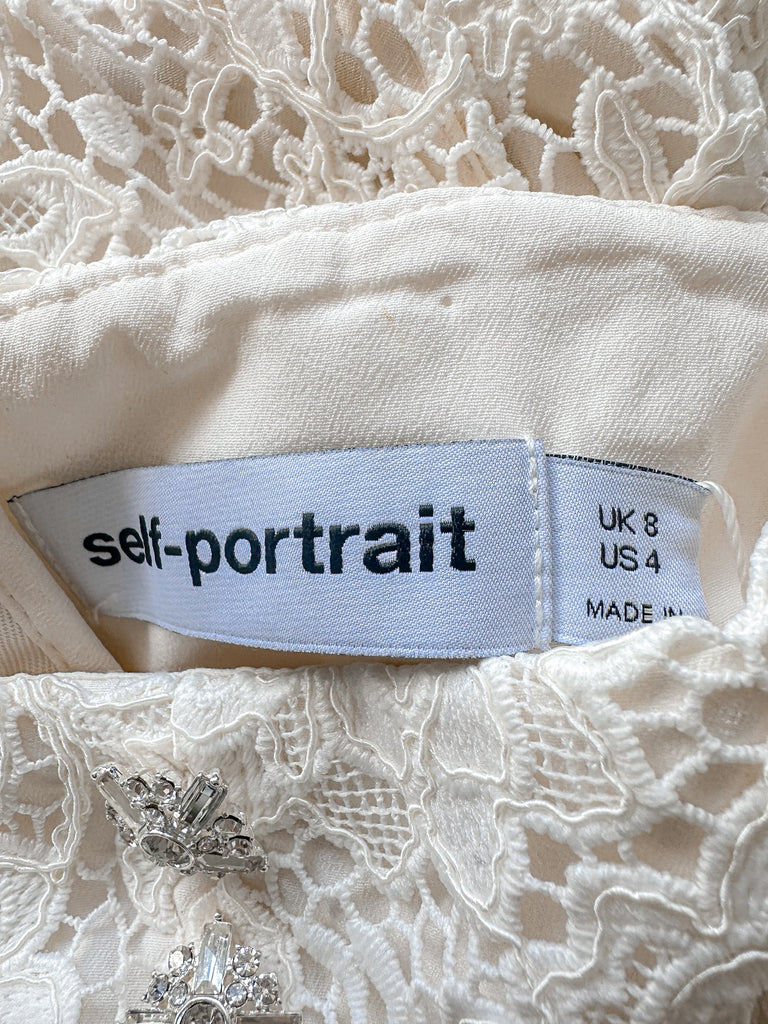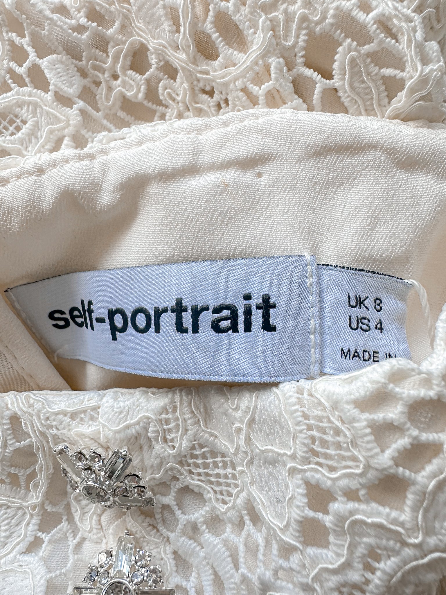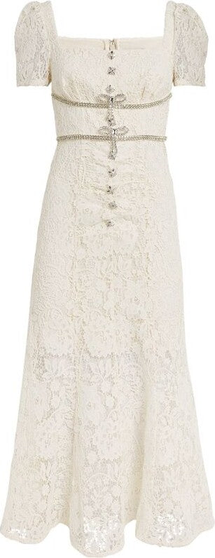 Robe mi-longue en dentelle crème avec nœud en strass Self-Portrait