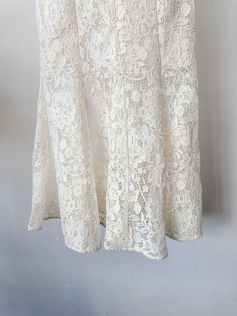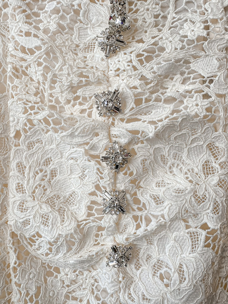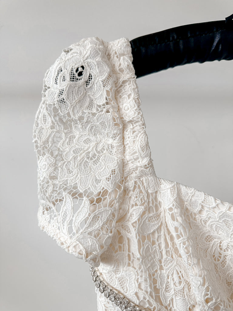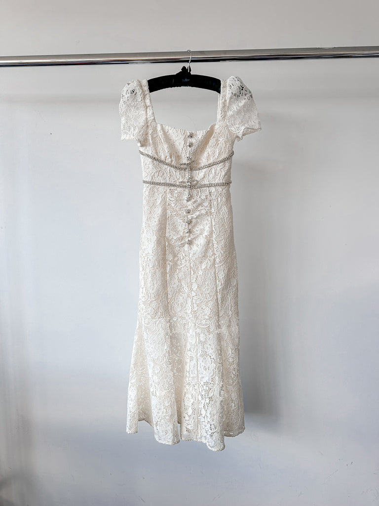 Robe mi-longue en dentelle crème avec nœud en strass Self-Portrait