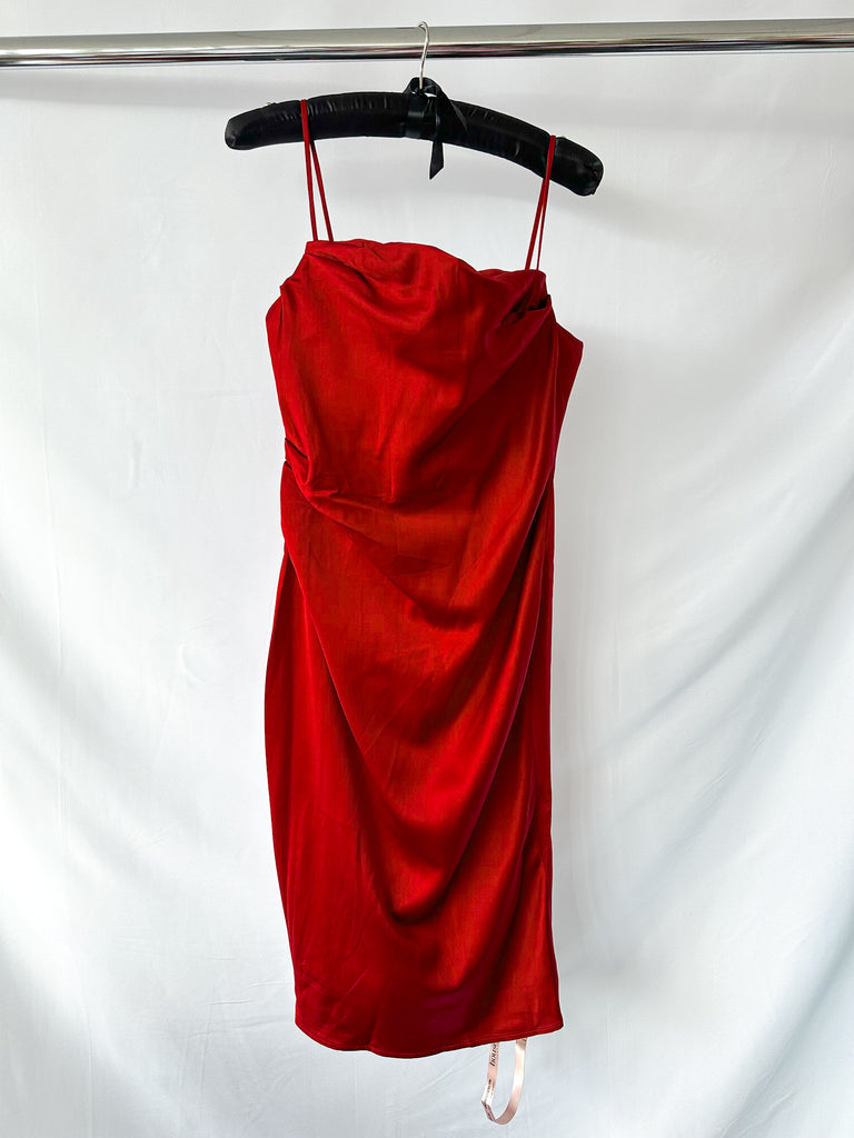 Cette superbe robe en satin d'un somptueux bordeaux profond est une pièce incontournable de la saison. « Anja » épouse parfaitement chaque courbe grâce à son corsage entièrement corseté qui vous cintre parfaitement, tandis que sa jupe midi apporte une touche d'élégance et flatte la silhouette. Légèrement extensible pour plus de confort et sans soutien-gorge (même si un modèle sans bretelles est tout aussi pratique), elle est naturellement chic. Associez-la à des talons neutres et préparez-vous à faire tourner les têtes !