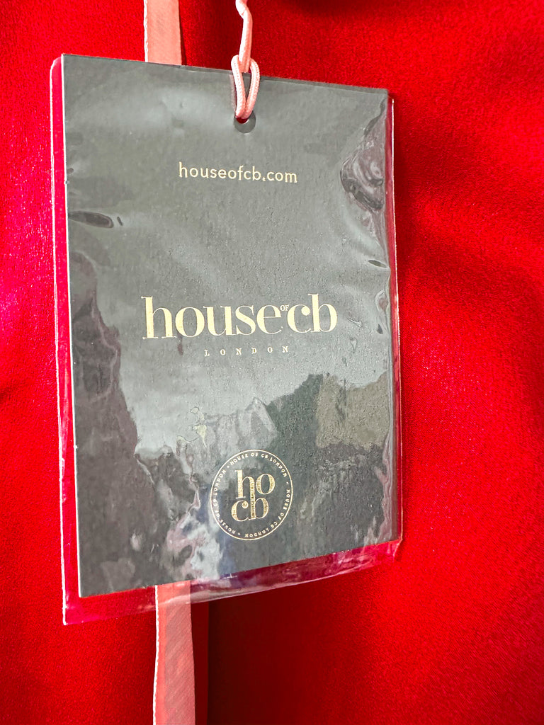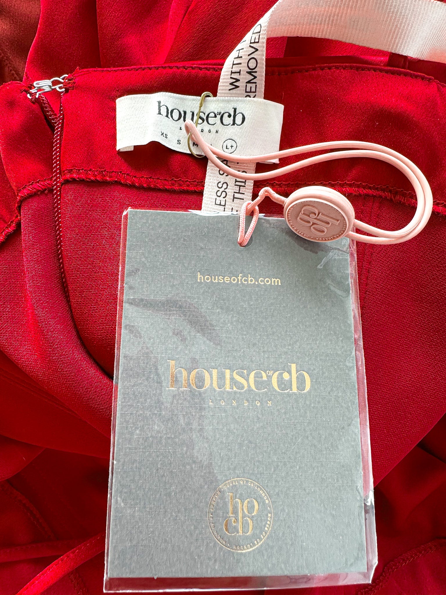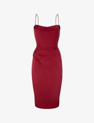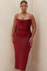 Robe mi-longue corset en satin bordeaux Anja de House Of CB
