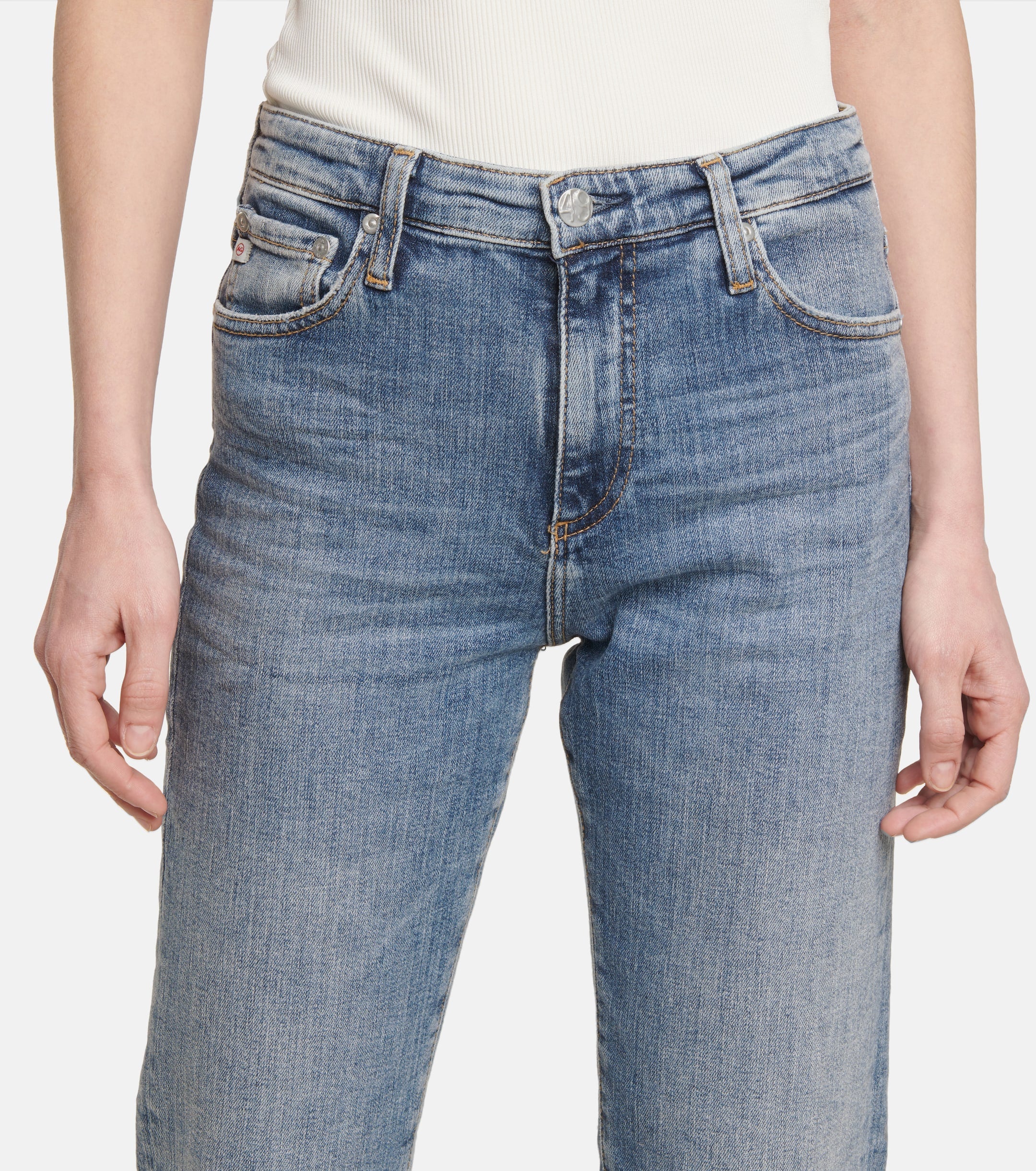 Jean AG Jeans Isabelle en denim bleu taille haute, coupe droite et courte