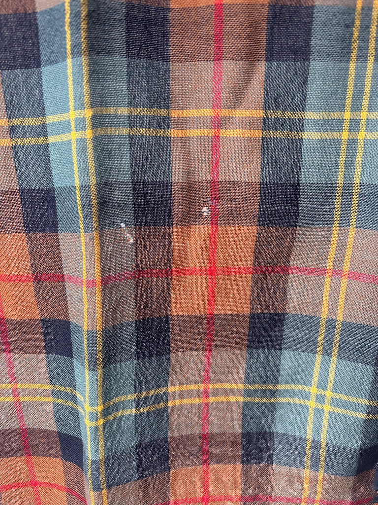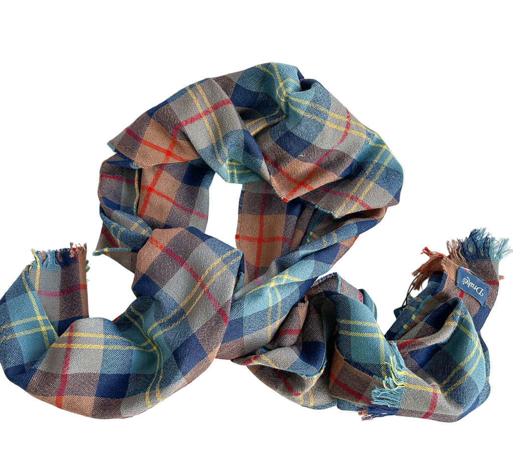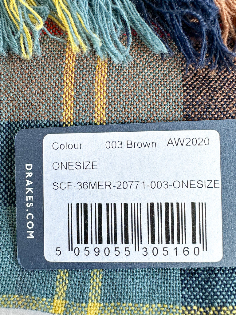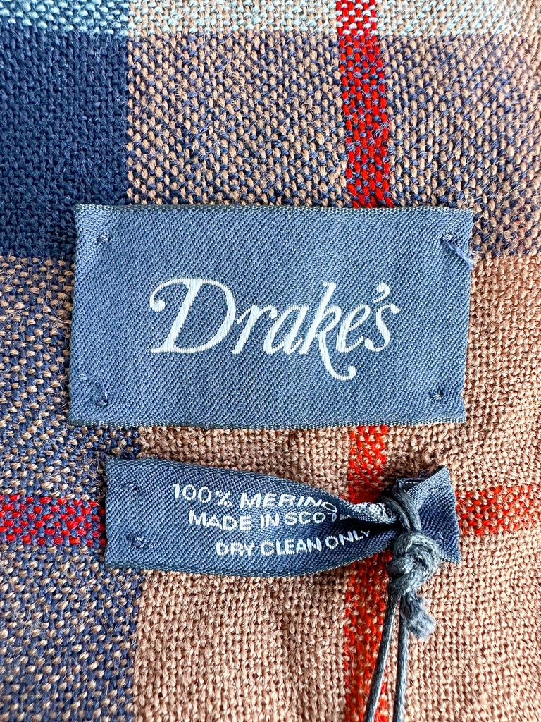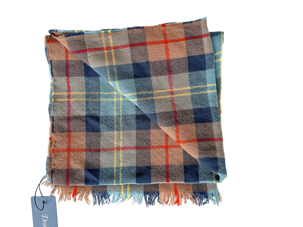 Écharpe en laine mérinos à carreaux marron et bleu de Drake ENDOMMAGÉE