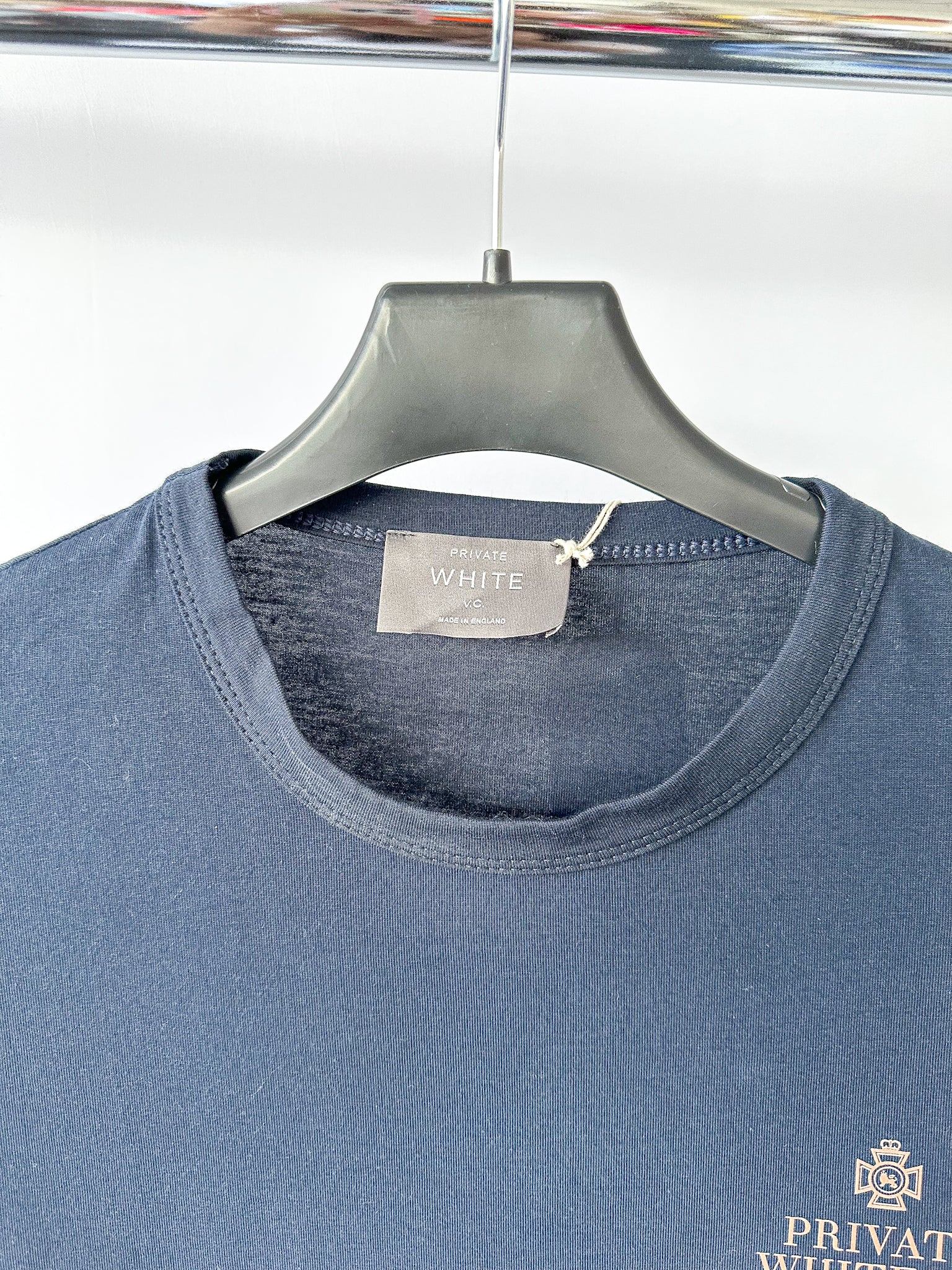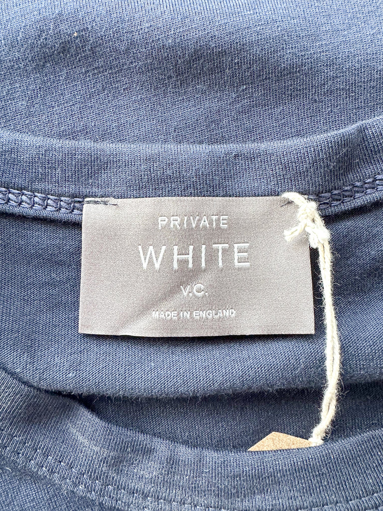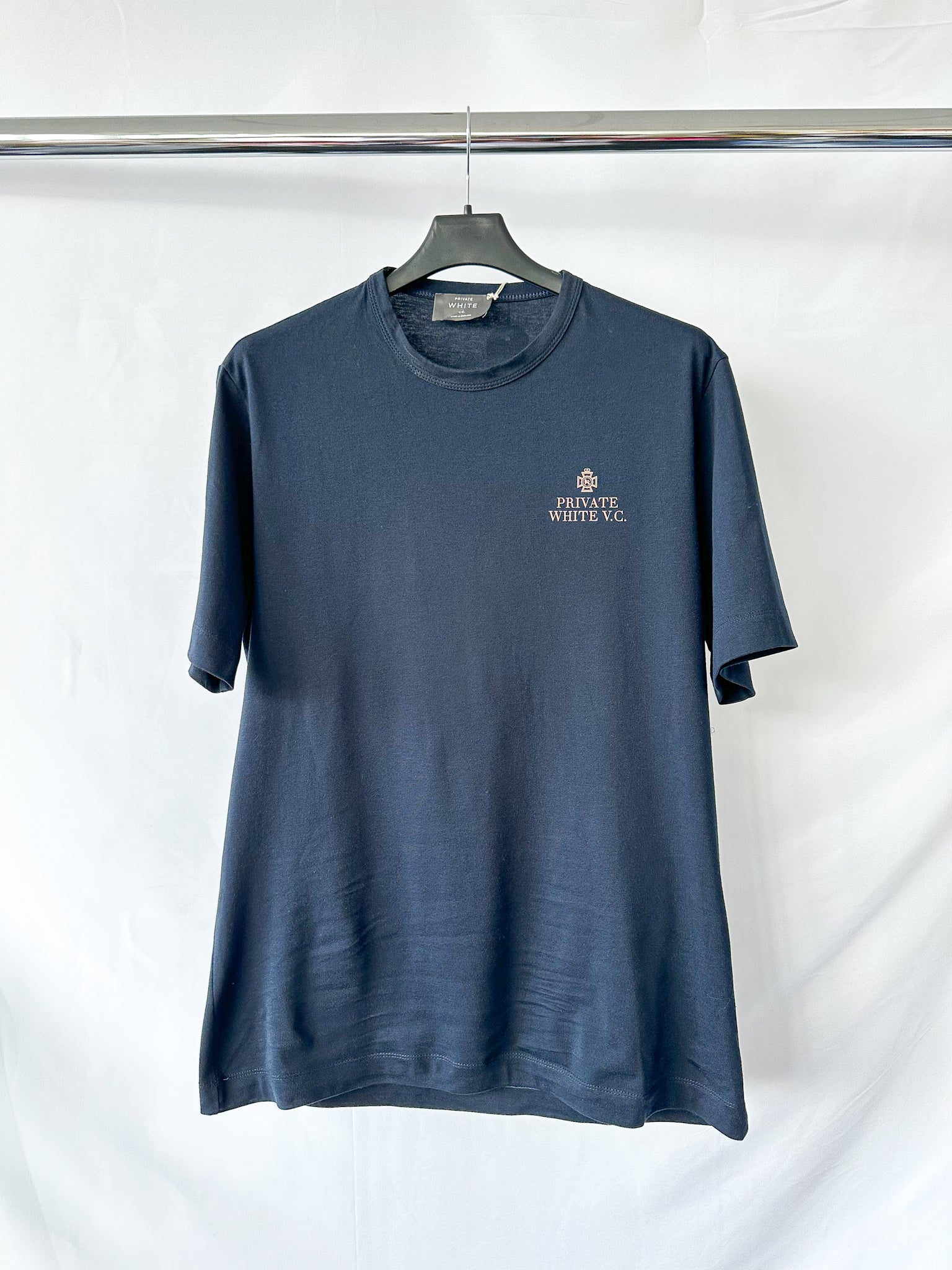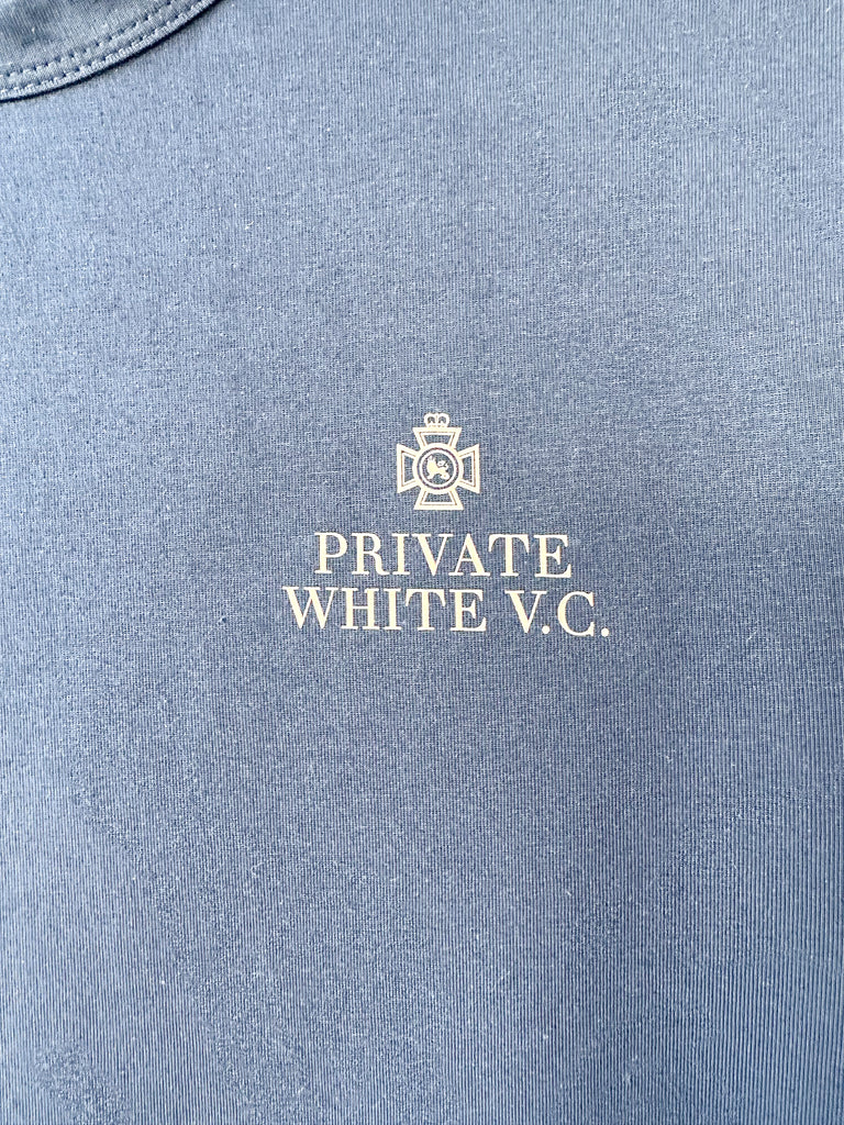 Affirmez votre style avec le t-shirt Private White VC Navy Logo, orné d'un logo cuivré ludique sur le devant droit de la poitrine. Ses détails éclatants apportent une touche de fraîcheur à un t-shirt bleu marine classique, idéal pour se démarquer sans effort. Confortable et élégant, c'est votre nouveau modèle incontournable pour une allure décontractée.