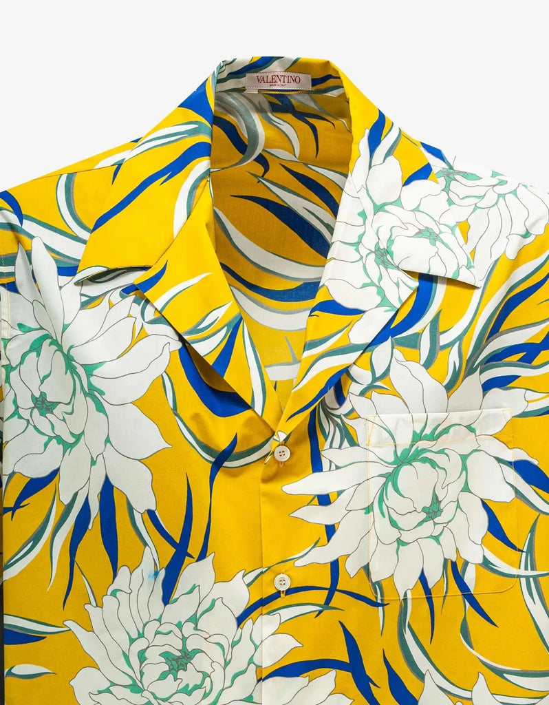 Chemise Bowling Valentino Imprimé Fleurs Jaunes Pivoines.