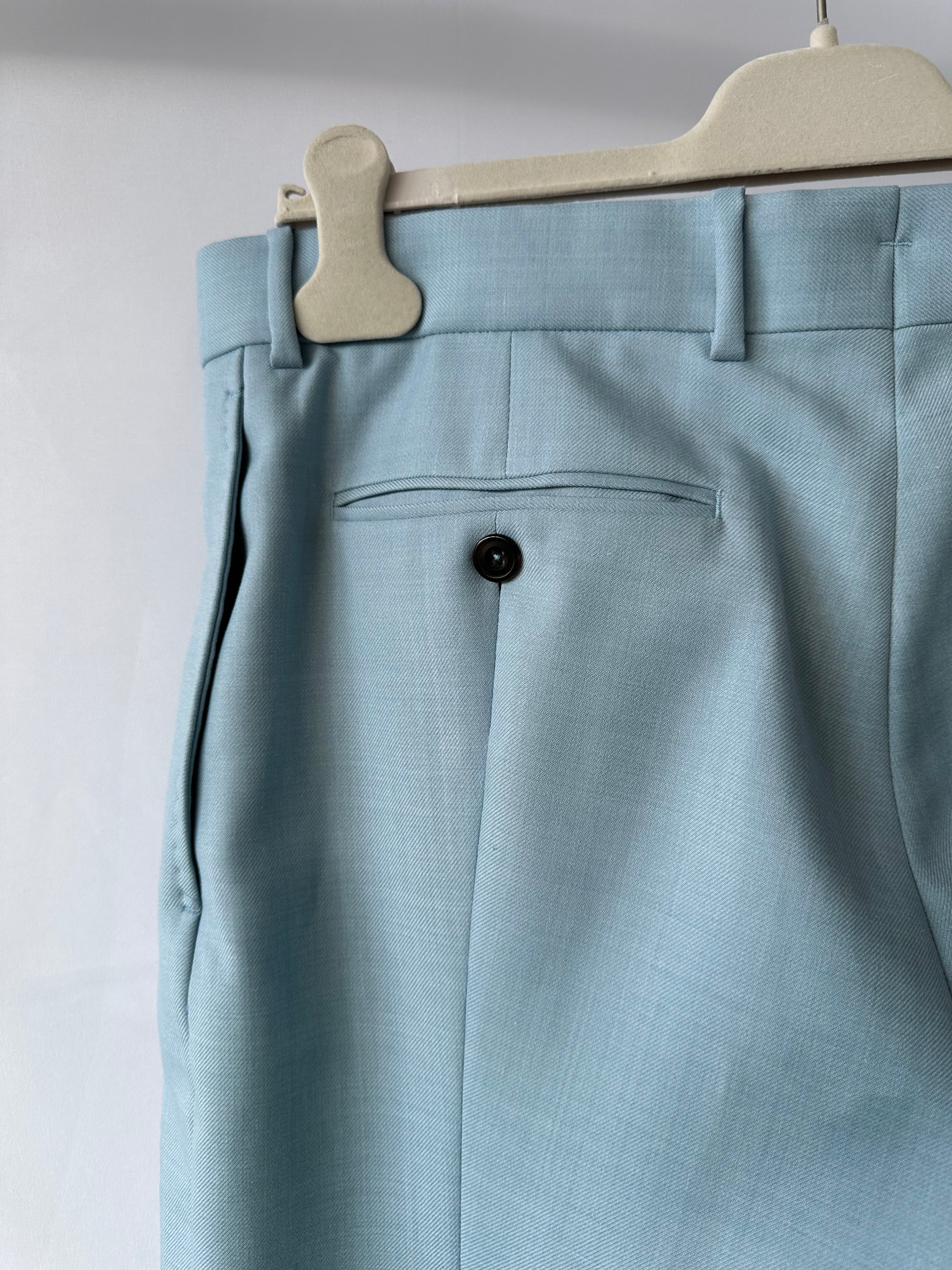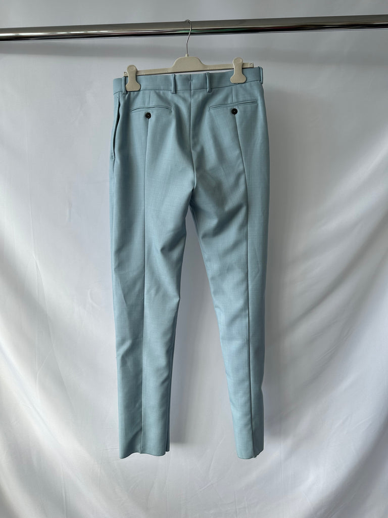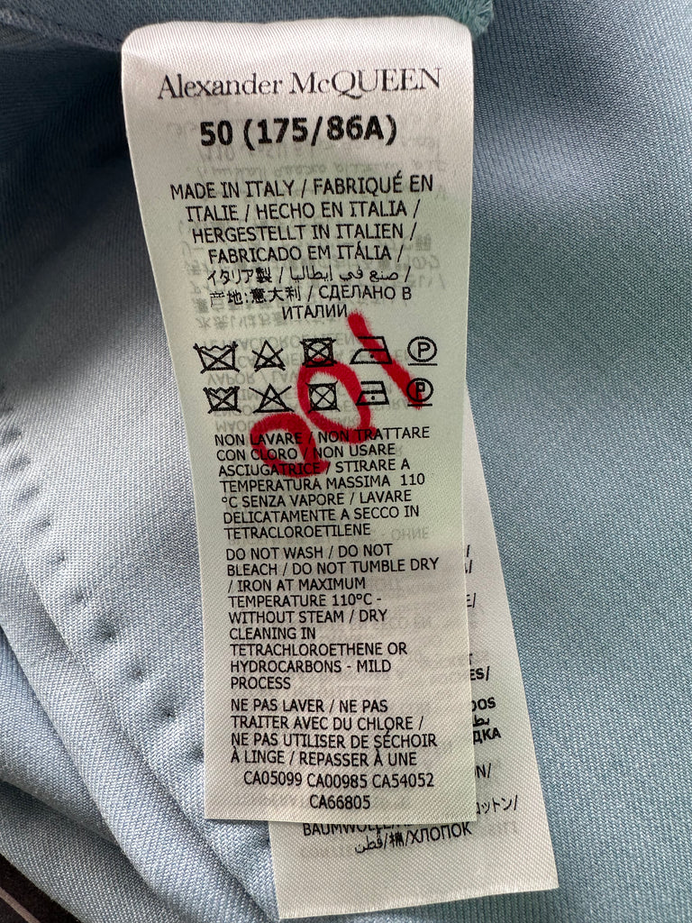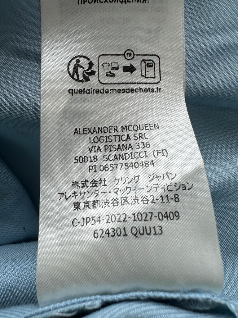 Sublimez votre garde-robe avec ce pantalon cigarette Alexander McQueen d'un bleu pâle raffiné. Confectionné dans un mélange équilibré de 50 % polyester et 50 % laine, il allie durabilité, douceur et confort. Sa coupe ajustée et sa couleur subtile en font un modèle idéal pour les occasions formelles comme pour un look élégant au quotidien, ajoutant une touche d'élégance discrète à votre collection.