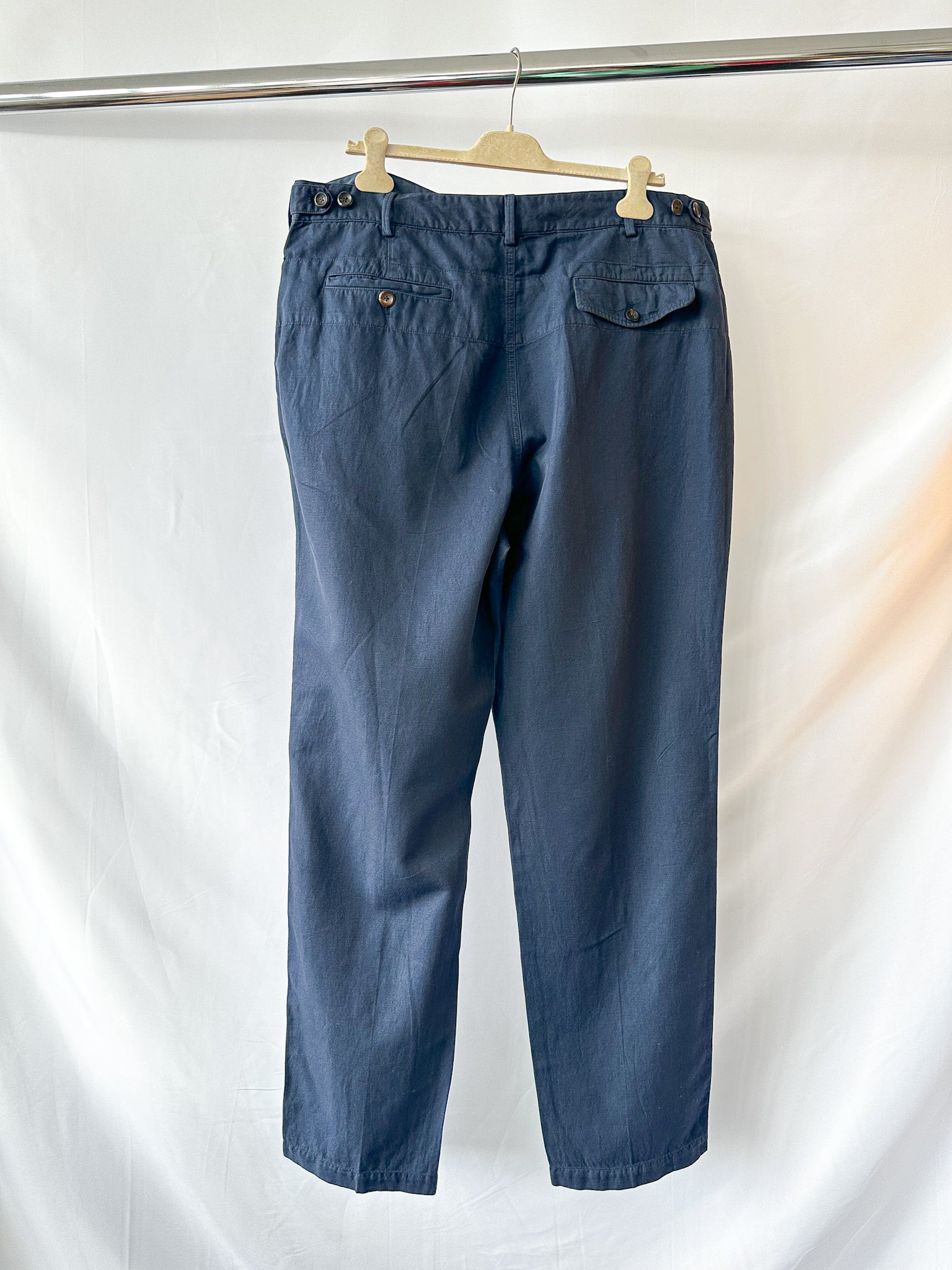 Adoptez un style décontracté avec le pantalon chino bleu marine à pli simple Games de Drake. Confectionné dans un mélange de coton et de lin respirant, ce pantalon vous garde au frais tout en apportant une touche d'originalité à votre garde-robe décontractée. Son pli simple rappelle les costumes classiques, ce qui le rend parfait pour les aventures du week-end ou les journées décontractées, avec une touche d'élégance. Adoptez le confort et le charme dans un ensemble ludique.