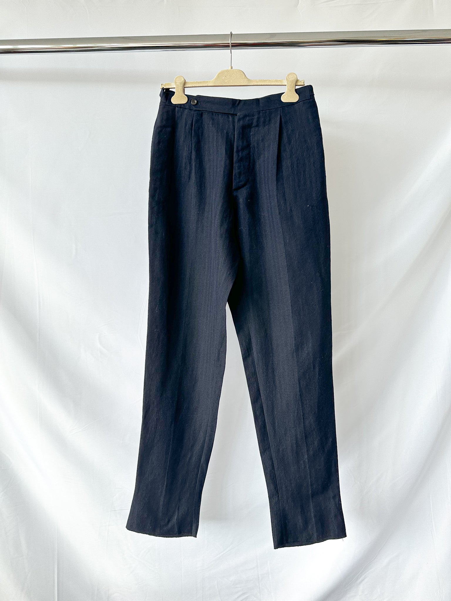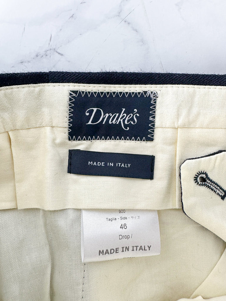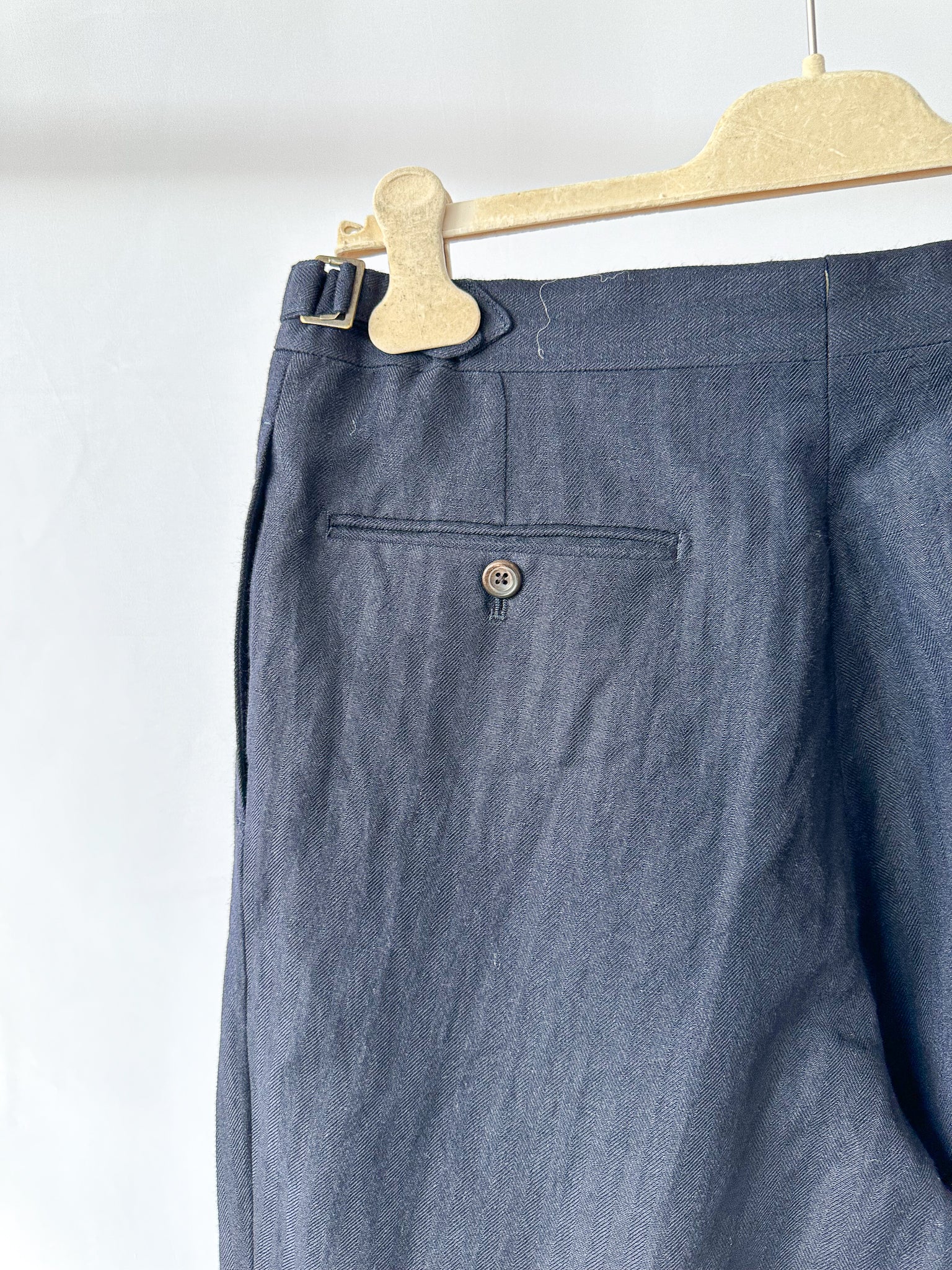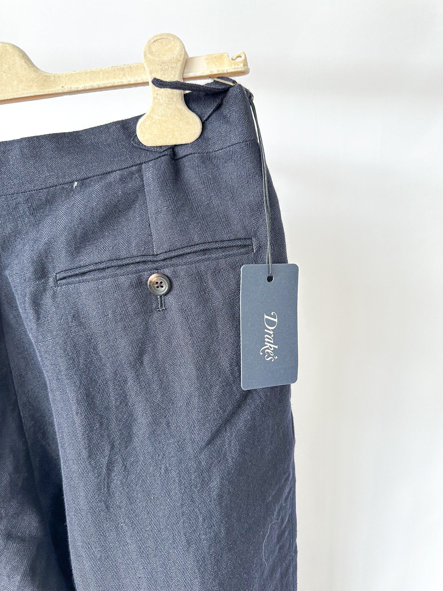 Pantalon Drake en mélange de laine et de lin à chevrons bleu marine