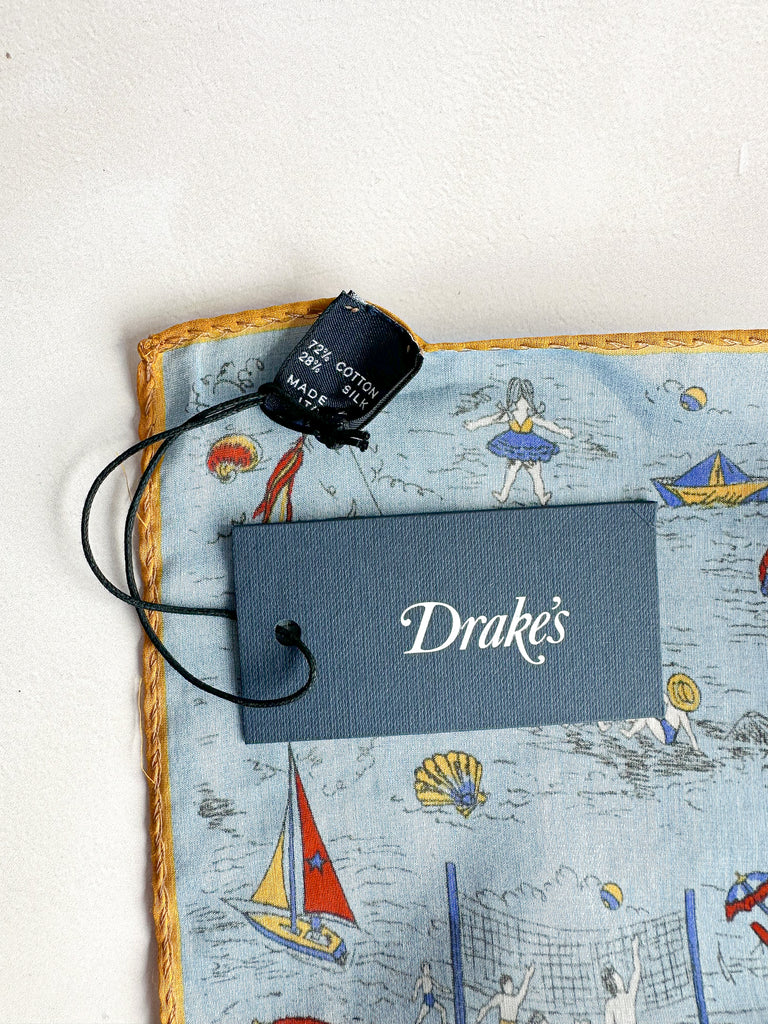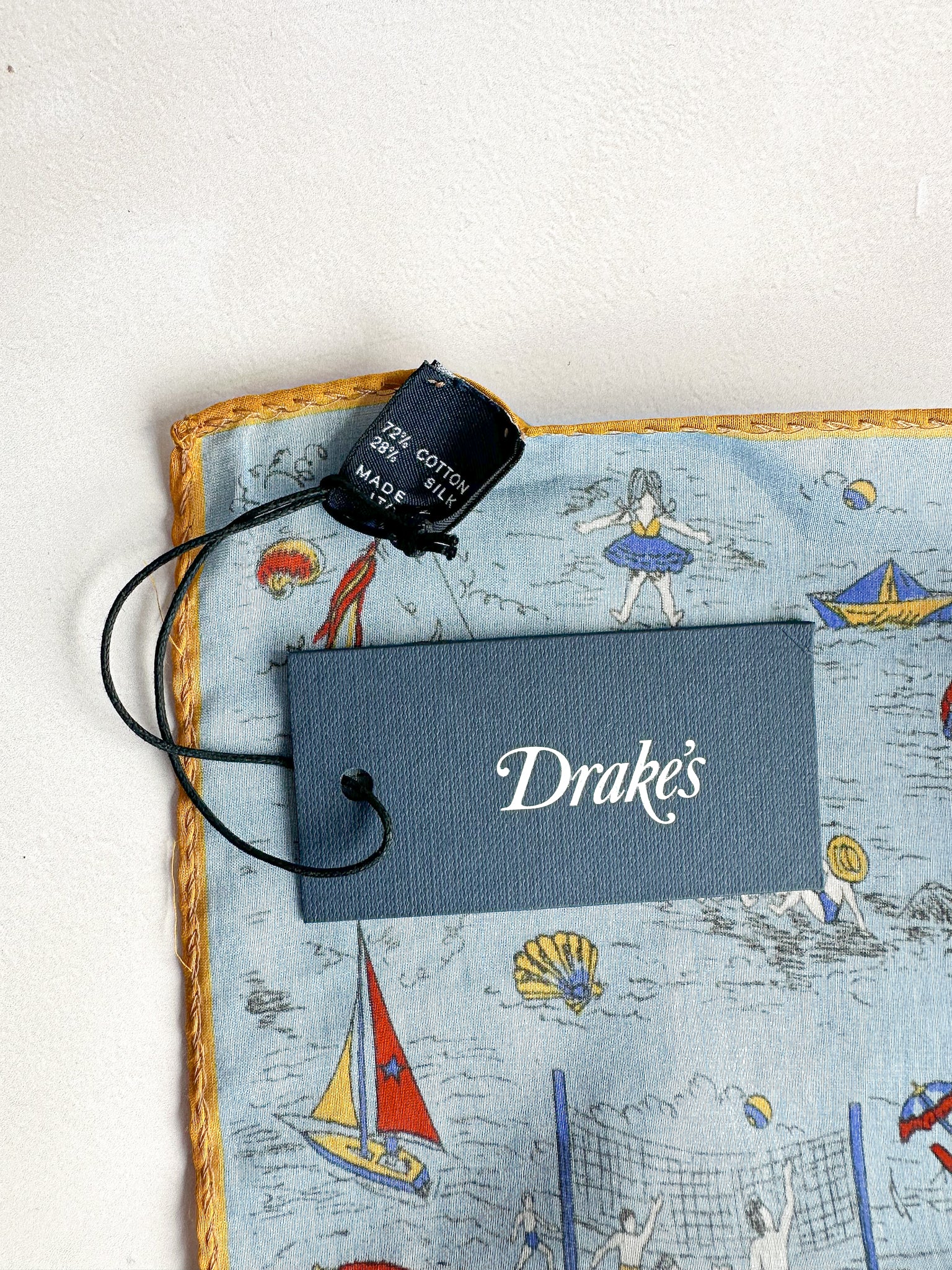 Sublimez votre style estival avec les pochettes de costume Drake's Beach Summer Hand Drawn. Cet accessoire bleu audacieux arbore des motifs uniques, dessinés à la main, sur le thème de la plage, qui évoquent l'esprit des journées ensoleillées. Fabriqué à la main à Londres, il apporte une touche de personnalité audacieuse à toutes vos tenues, parfait pour celles qui osent se démarquer avec des détails subtils et saisissants.