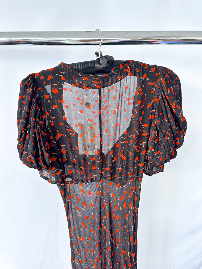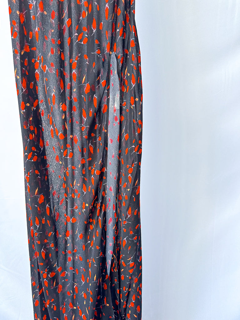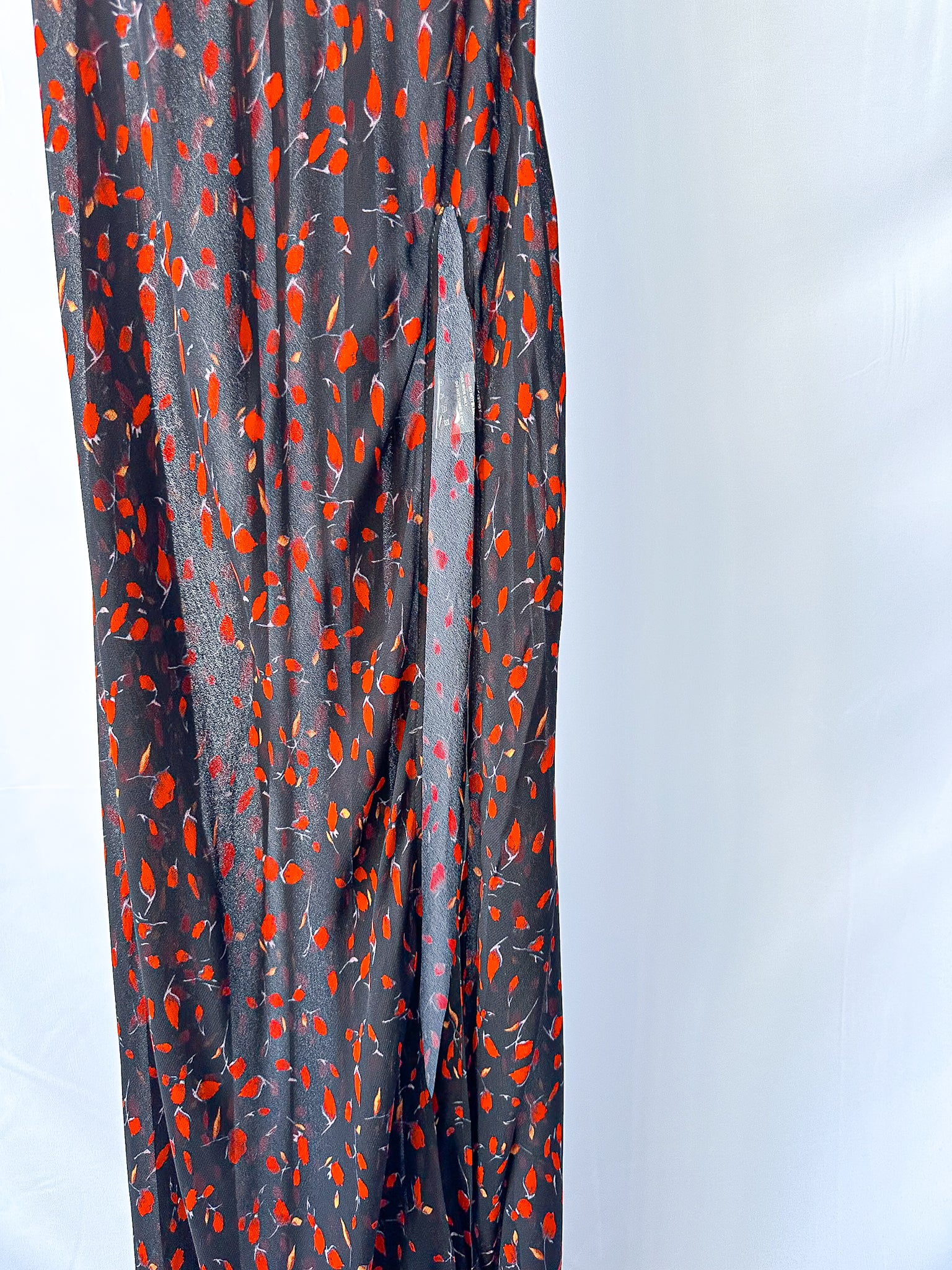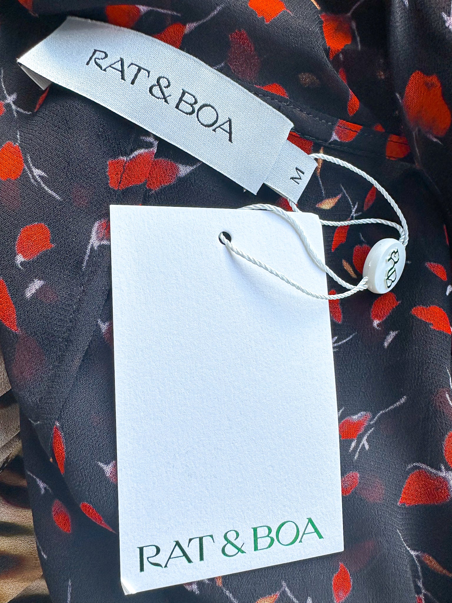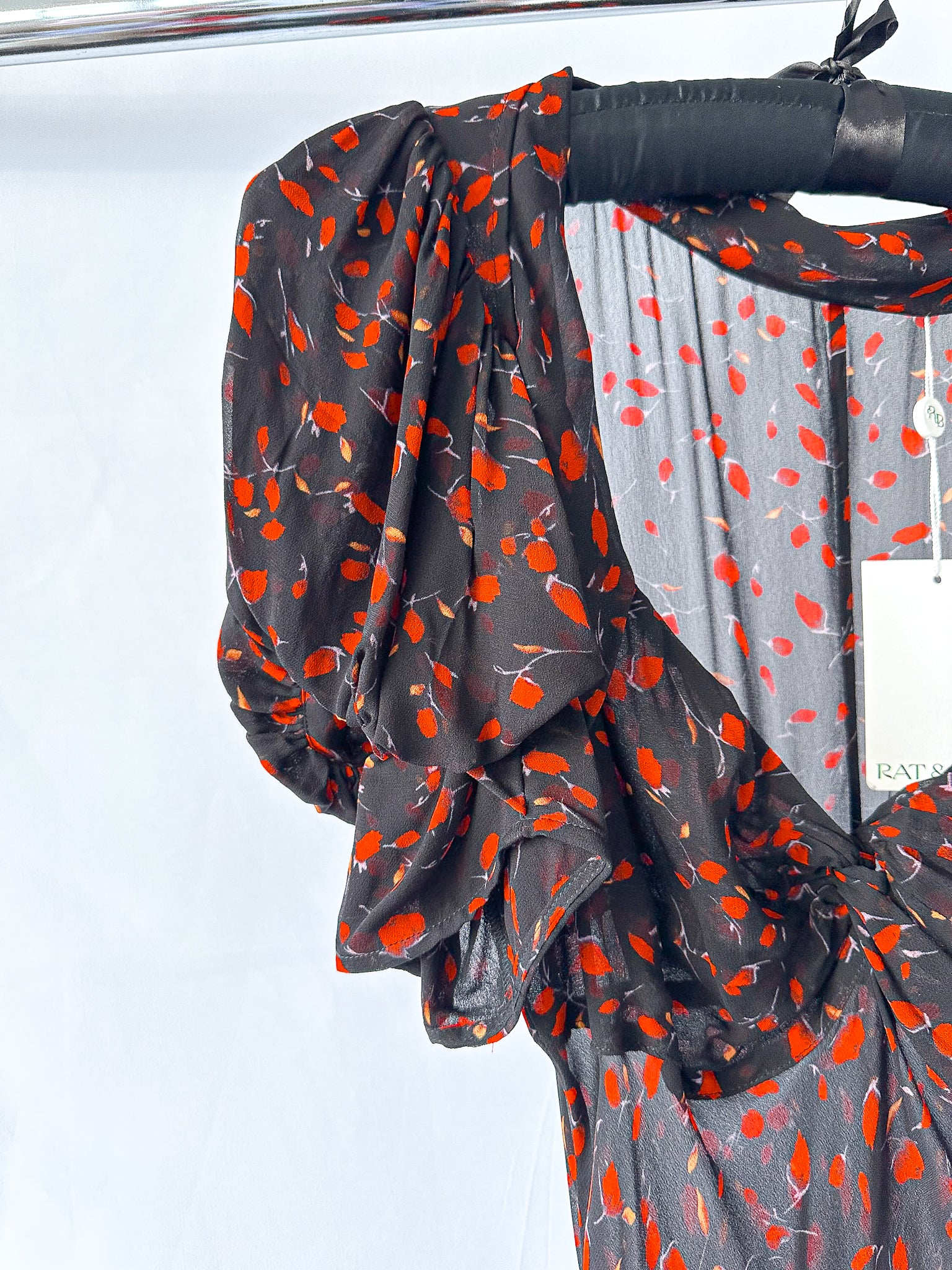 La robe longue Magnolia illustre la passion de Rat & Boa pour les imprimés éclatants, les matières riches et les coupes flatteuses. Confectionnée en georgette de viscose semi-transparente et ornée d'un audacieux motif floral rouge, cette robe longue cintrée séduit par son décolleté en cœur romantique, ses manches bouffantes espiègles et sa fente audacieuse jusqu'à la cuisse.