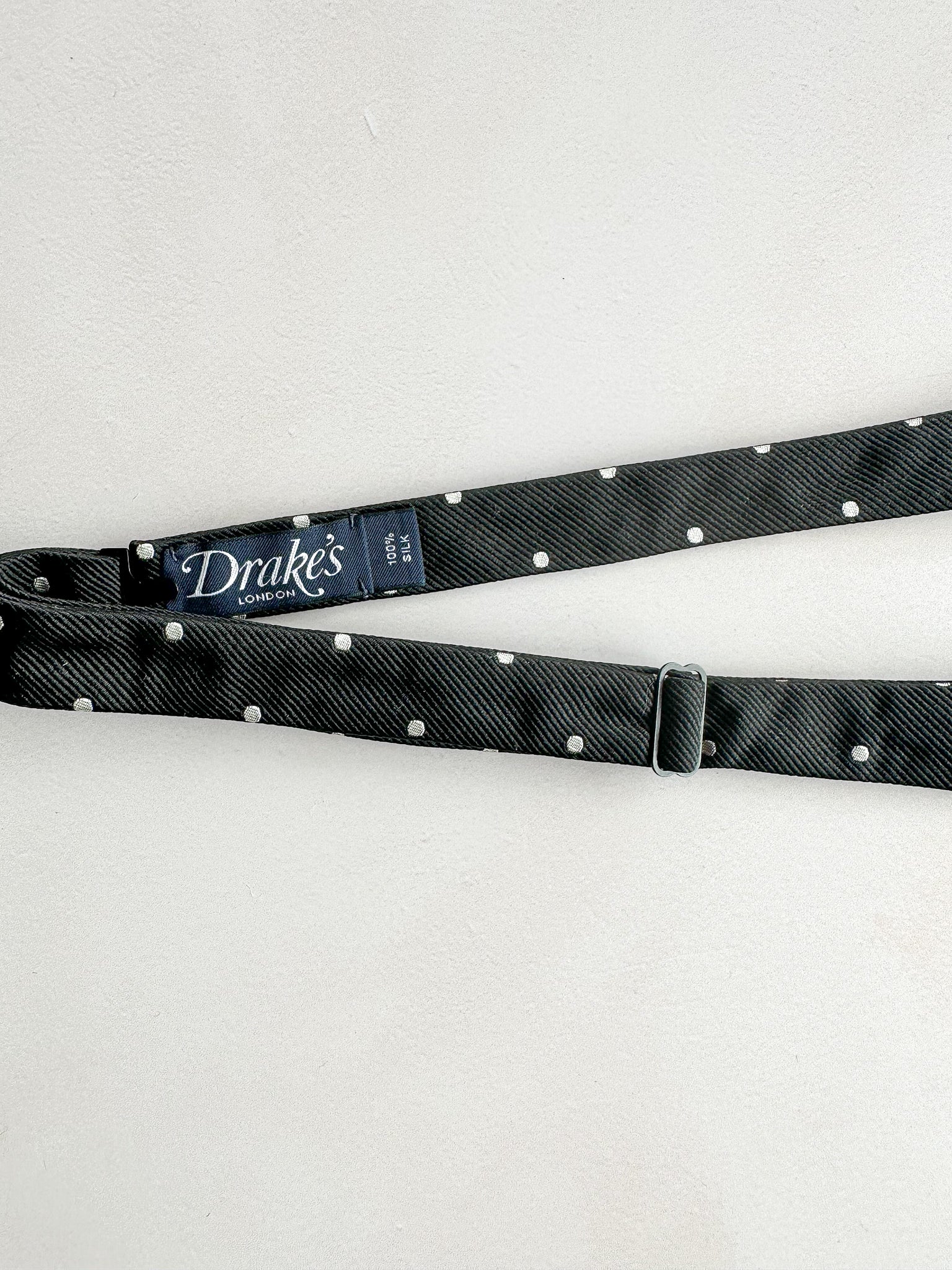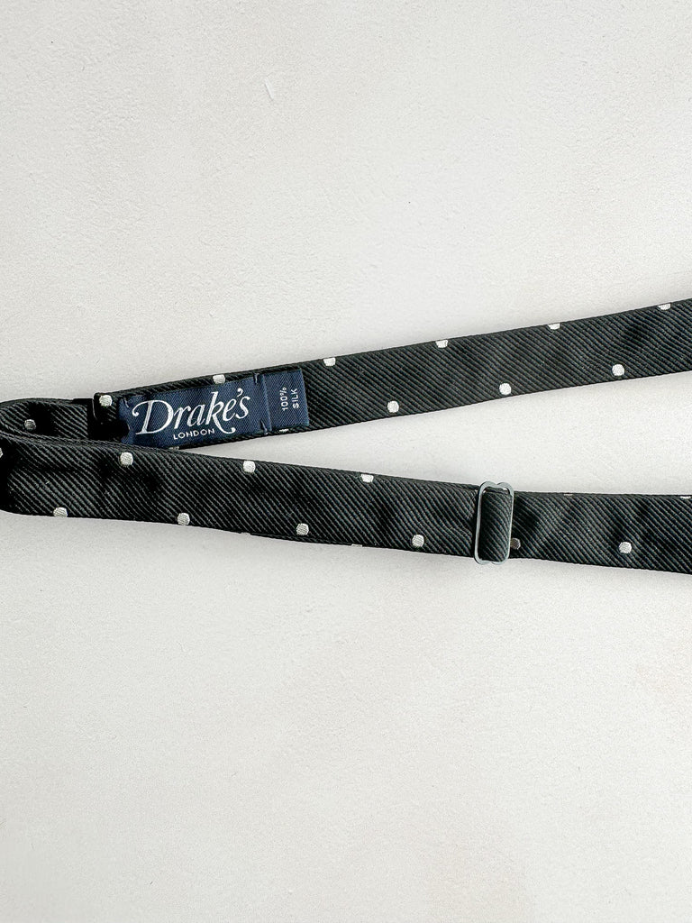 Sublimez votre style avec le nœud papillon noir et blanc à pois de Drake, confectionné artisanalement à Londres en 100 % soie épaisse. Son audacieux motif à pois noirs et blancs, associé à un tissage côtelé distinctif, crée une allure saisissante qui ne passera pas inaperçue. Parfait pour ceux qui osent se démarquer par une élégance intemporelle et un savoir-faire exceptionnel.