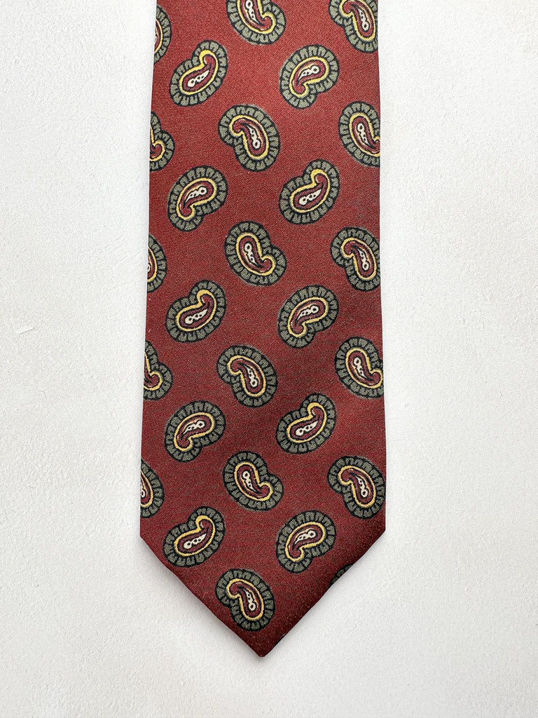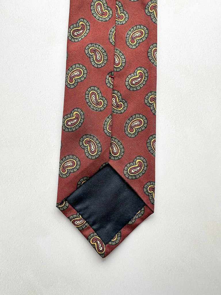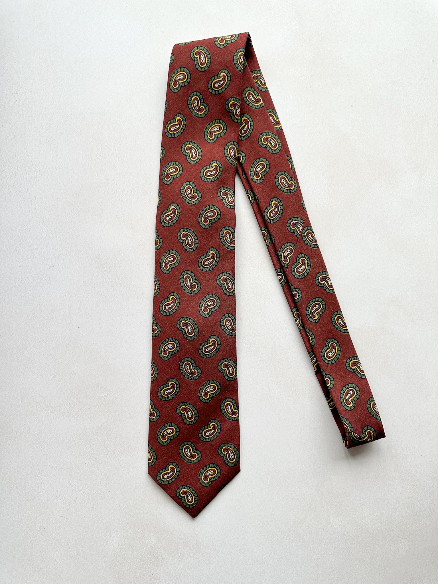 Cravate en soie bordeaux Michael J Drake de Drake, motif cachemire olive