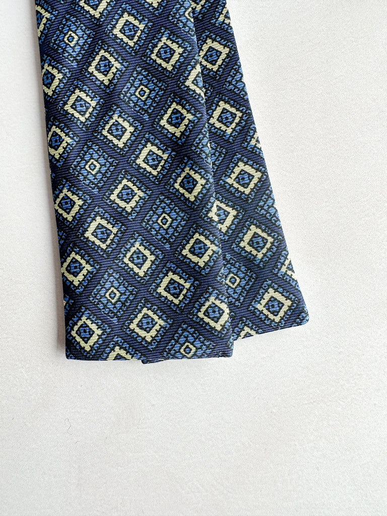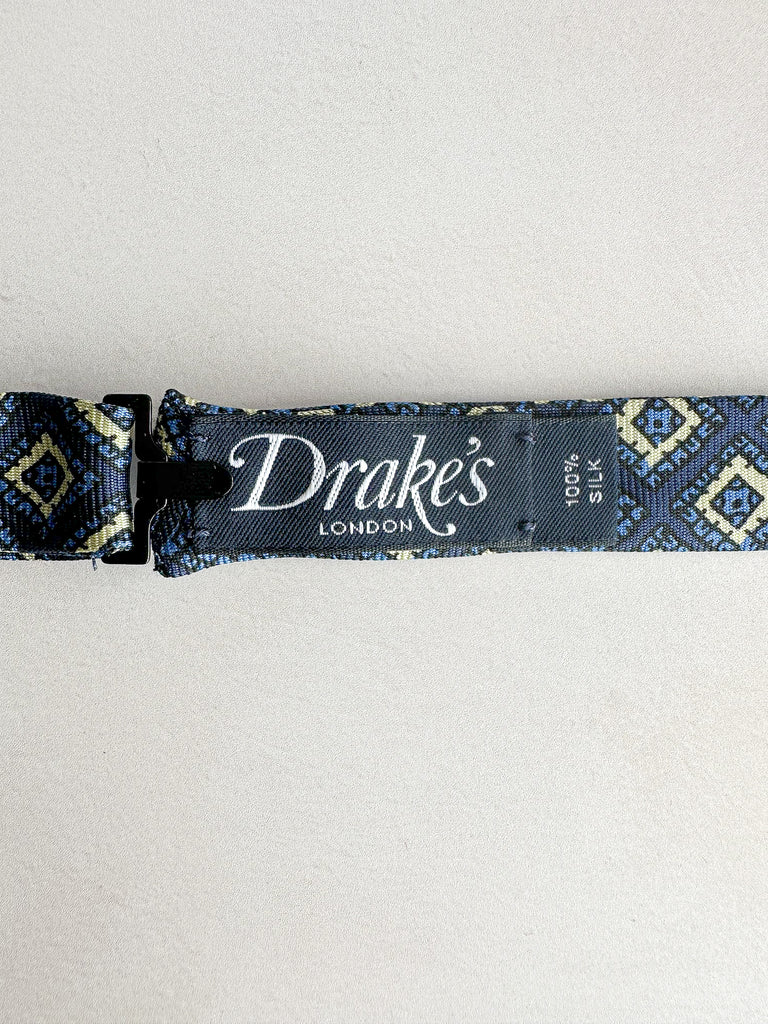 Sublimez votre style avec le nœud papillon en soie bleu marine Foulard Diamond Mosaic de Drake, méticuleusement fabriqué à la main à Londres. Son audacieux motif mosaïque de diamants en soie bleu marine profond attire tous les regards, idéal pour celles qui osent se démarquer. Confectionné avec précision, ce nœud papillon apporte une touche de sophistication audacieuse à toutes vos tenues.