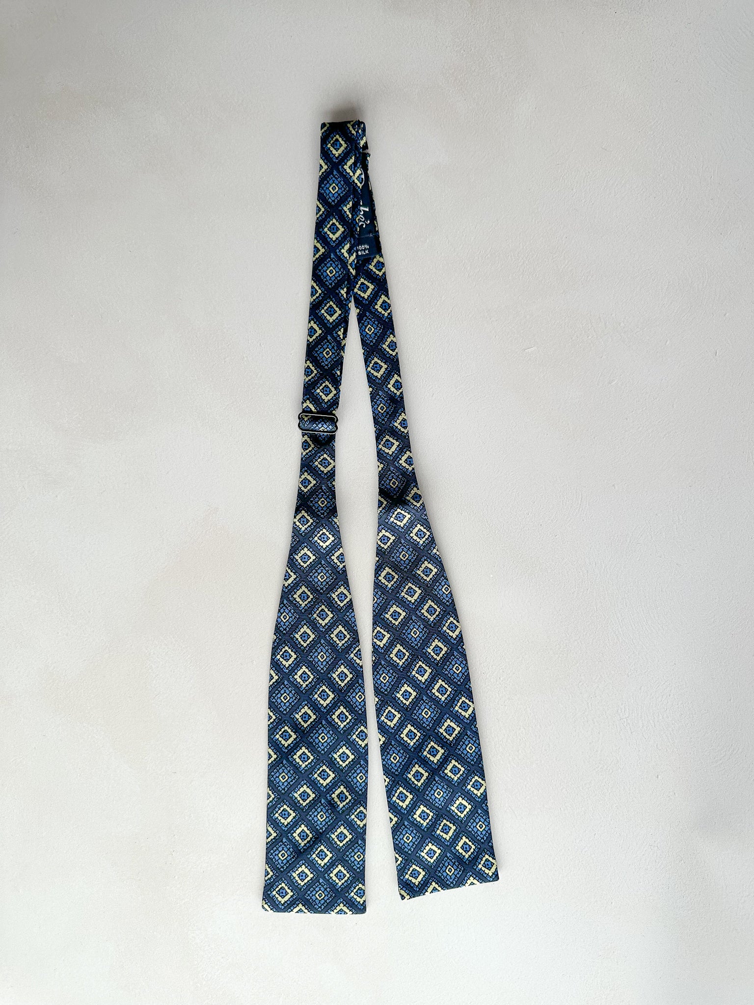 Nœud papillon en soie à motif mosaïque de diamants et foulard bleu marine de Drake