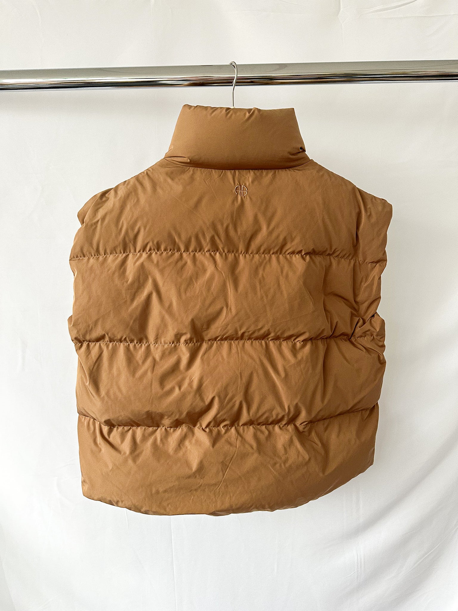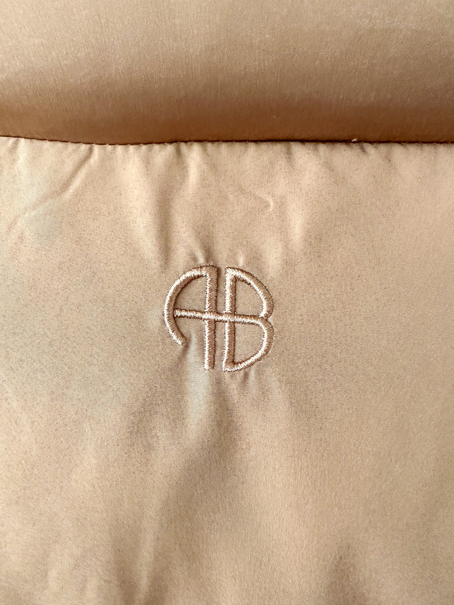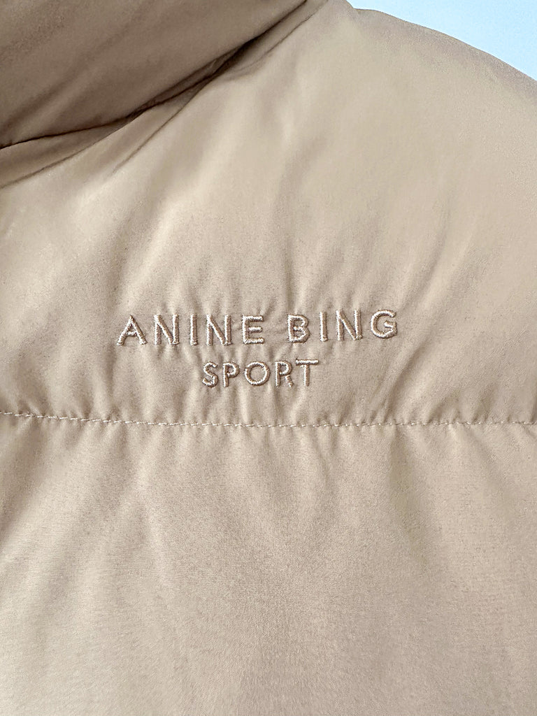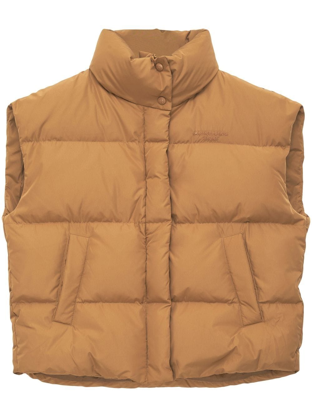 Gilet sans manches marron matelassé en duvet de canard brodé du logo Anine Bing