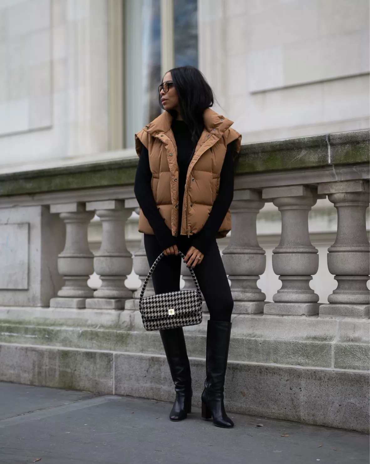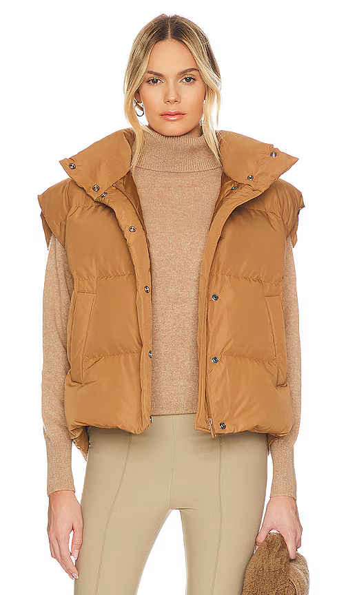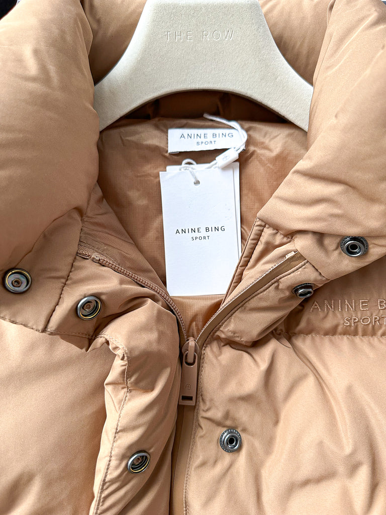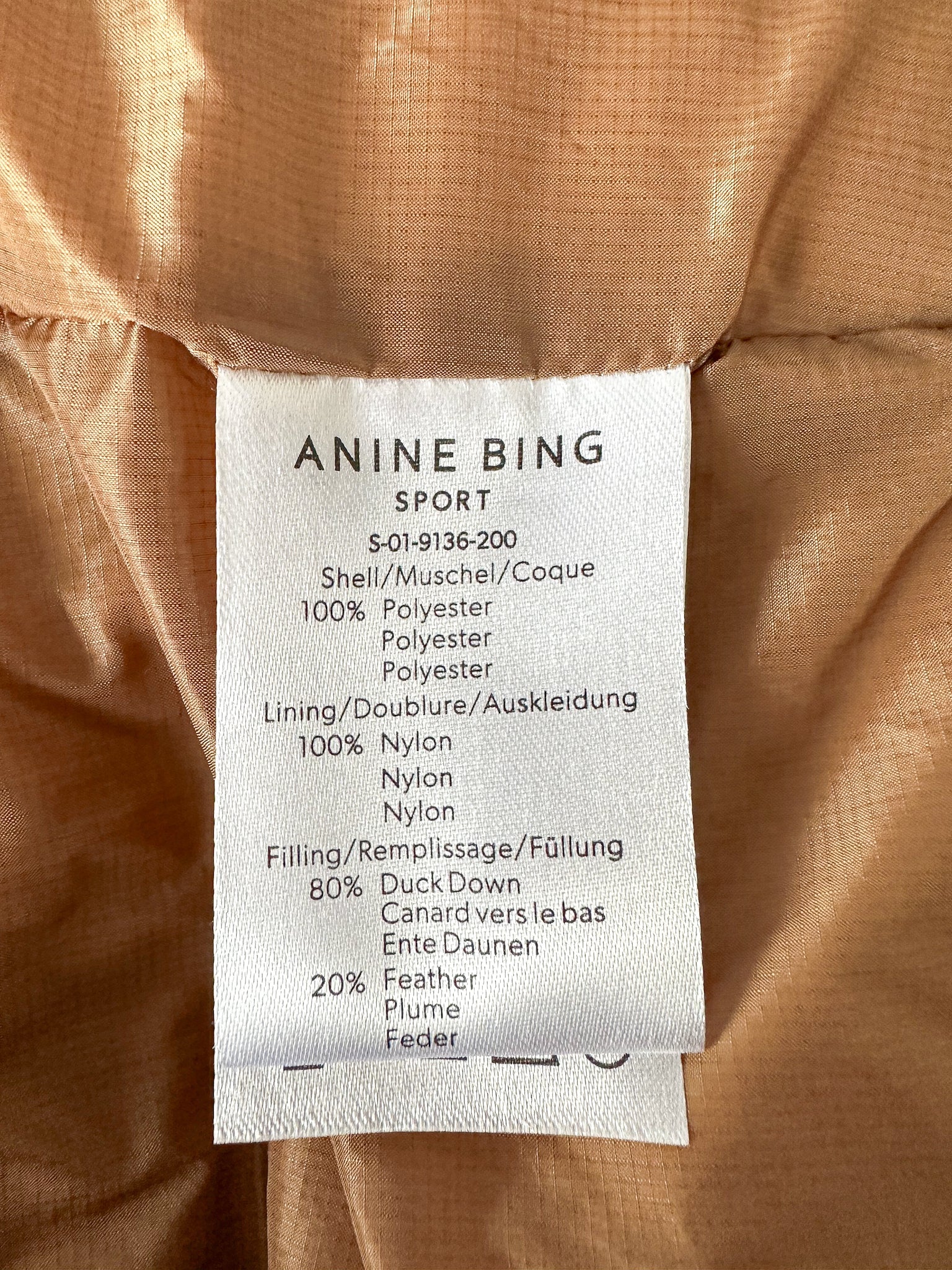 Gilet sans manches marron matelassé en duvet de canard brodé du logo Anine Bing