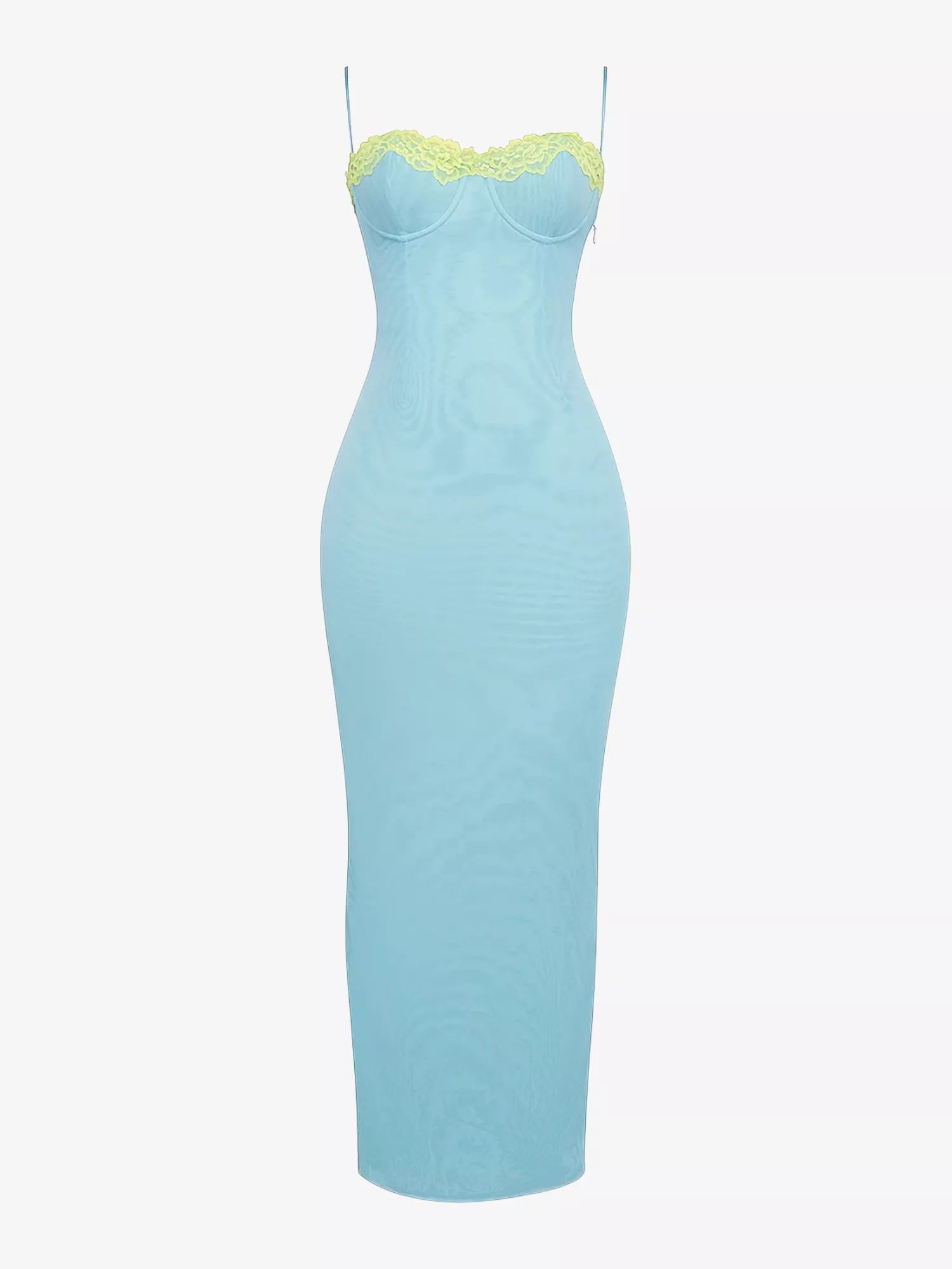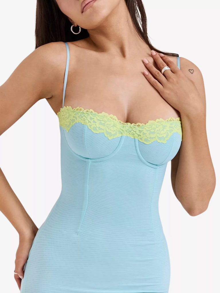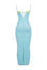 La robe longue Aiza bleu poudré de la Maison CB allie à merveille élégance ludique et coupe flatteuse. Confectionnée en maille extensible signature, elle sculpte magnifiquement votre silhouette, tandis que sa délicate teinte bleu poudré lui confère une allure douce et rêveuse. Son atout majeur ? Un ravissant dos lacé contrastant citron vert qui apporte une touche de couleur ludique et un charme séduisant. Parfaite pour faire tourner les têtes avec une touche d'élégance classique revisitée.