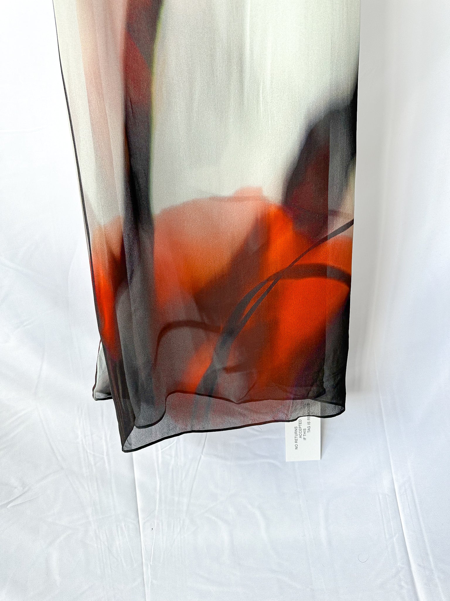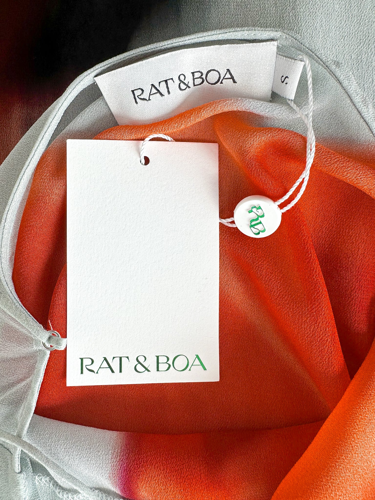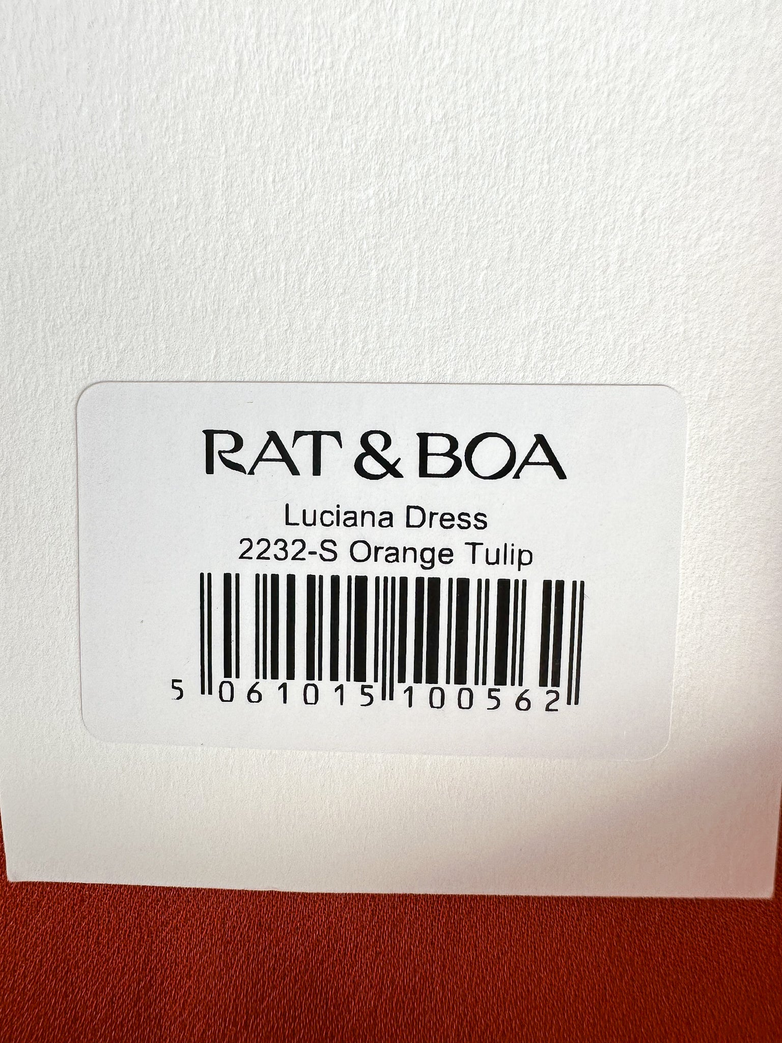 La robe longue Luciana illustre l'amour de Rat & Boa pour les imprimés accrocheurs, les tissus somptueux et les coupes flatteuses. Confectionnée en georgette de viscose semi-transparente et ornée d'un motif tulipe orange vif, cette robe offre une élégance fluide grâce à sa coupe trapèze décontractée, ses bretelles délicates et son ourlet qui glisse au sol.