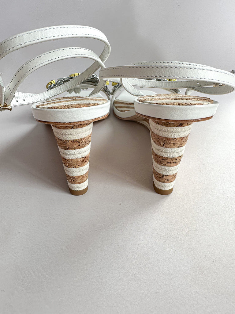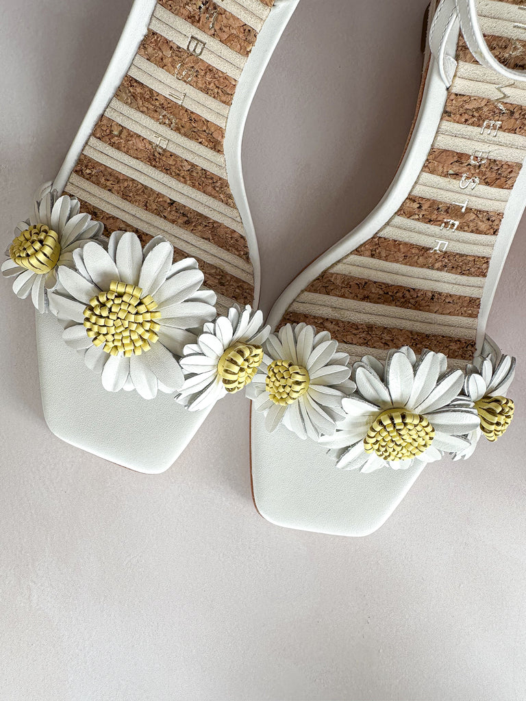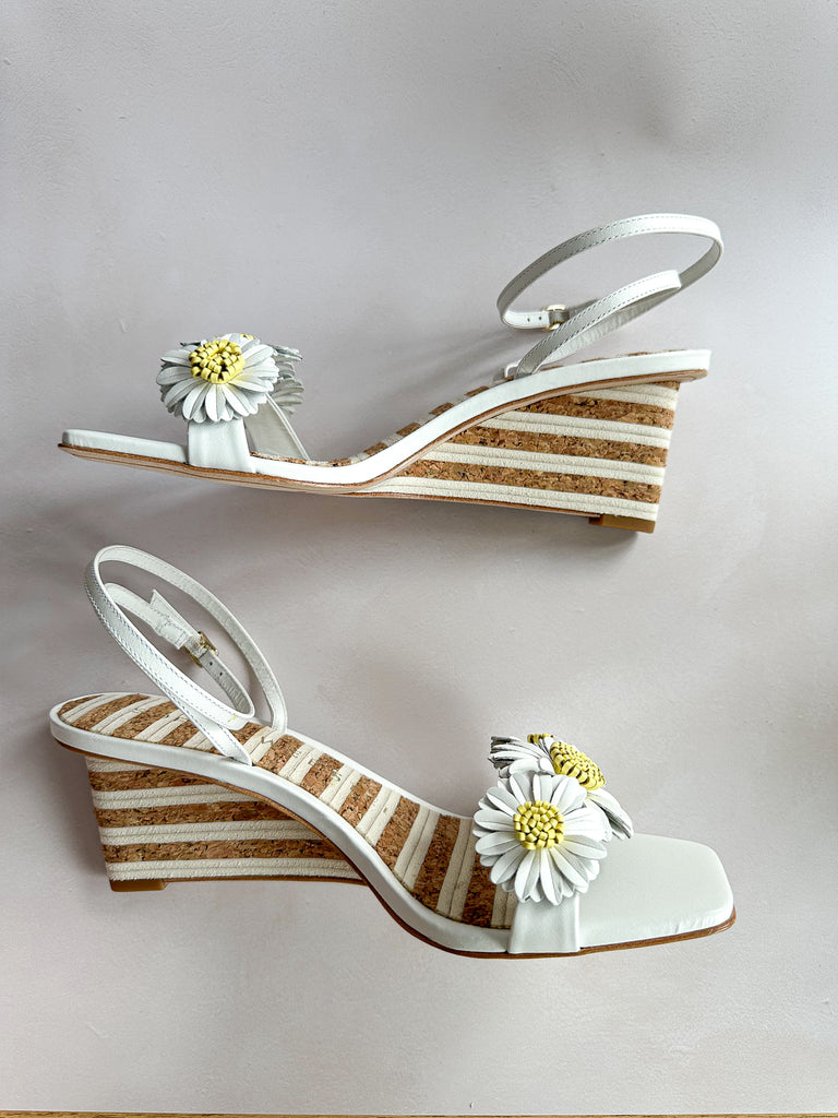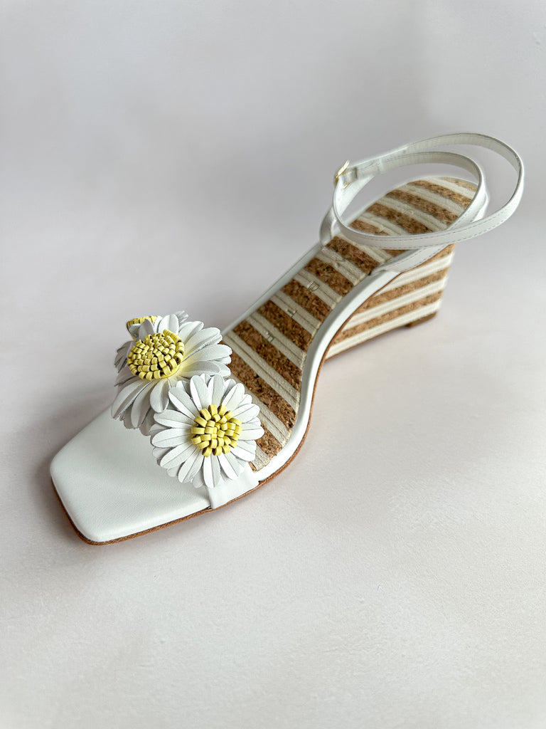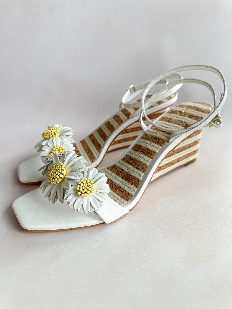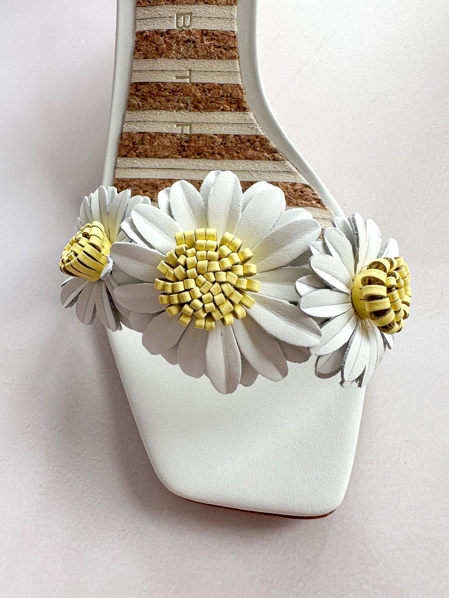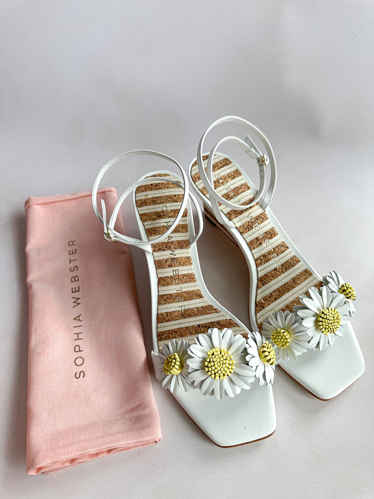 Entrez dans le soleil avec les sandales compensées mi-hautes Sophia Webster Daisy Detail 3D White. Ces charmantes sandales compensées illuminent toutes vos tenues avec leurs touches de marguerites 3D fantaisistes et leur finition blanche rafraîchissante. Leur semelle compensée mi-haute offre un maintien confortable et un soutien ludique, parfait pour danser avec style au printemps et en été. Adoptez une touche de féminité à chaque pas.