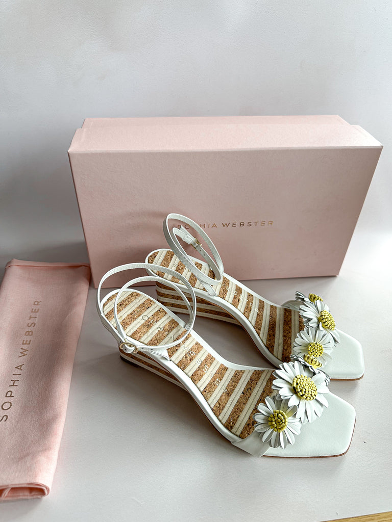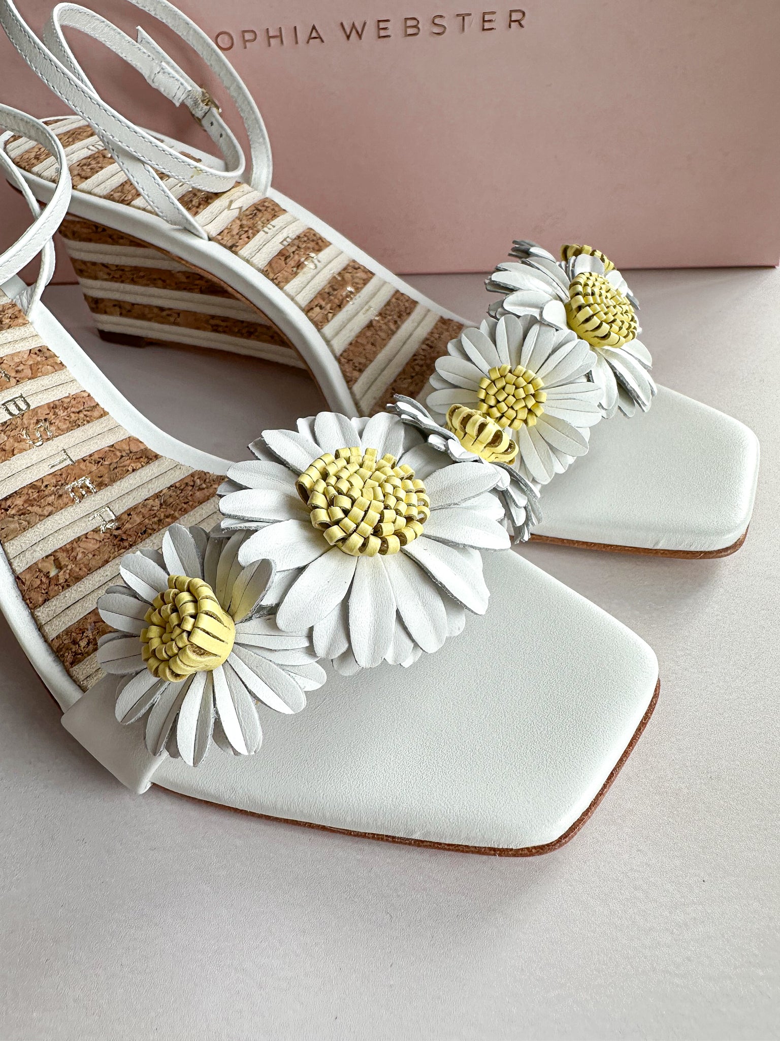 Sandales compensées mi-hautes blanches Sophia Webster à détails marguerites 3D