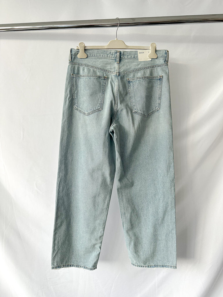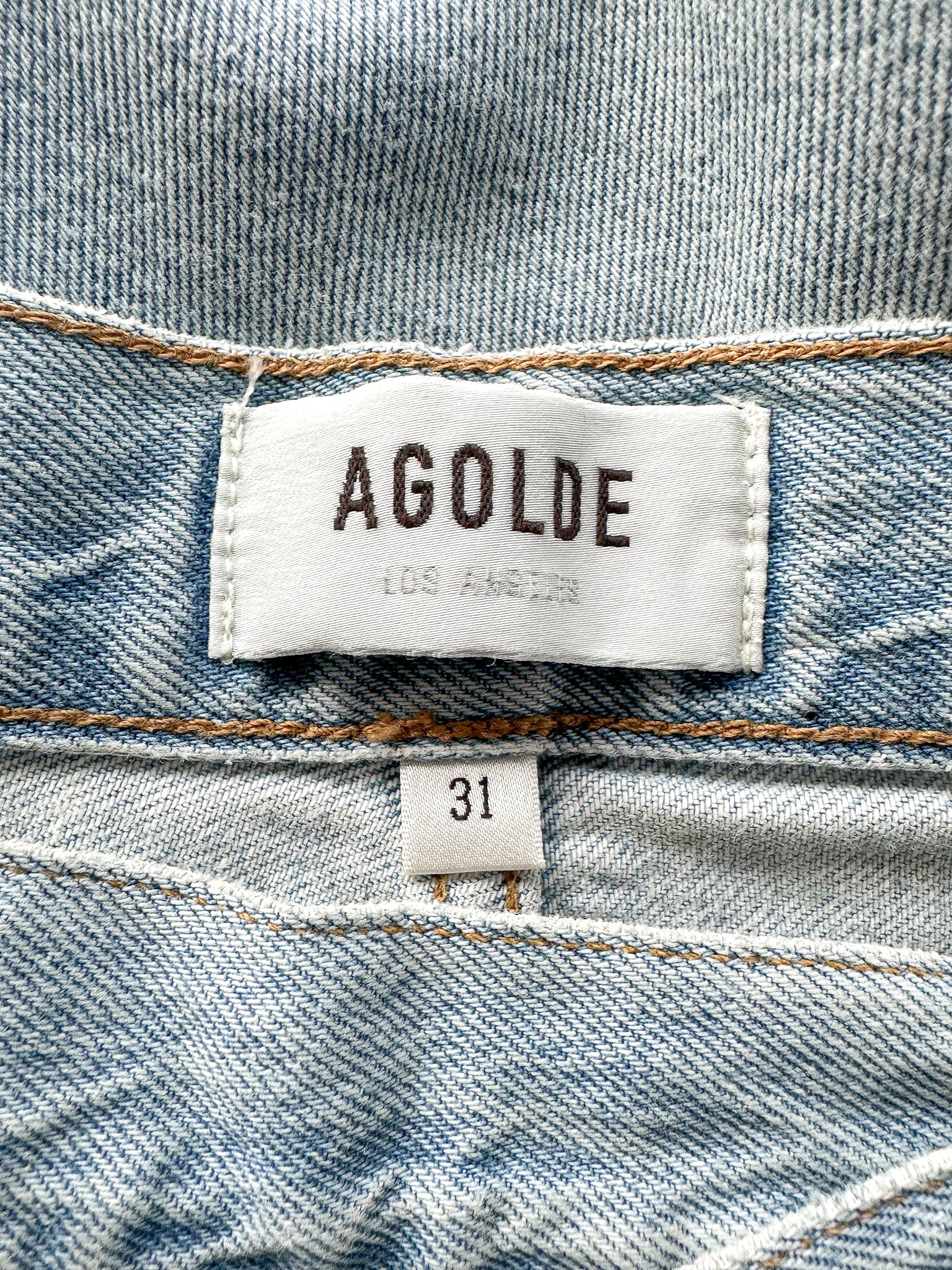 Le jean bleu clair à boutons croisés d'AGOLDE allie avec brio charme vintage et design contemporain. Confectionné en coton bleu clair, ce jean à la coupe droite présente une taille mi-haute flatteuse et des détails usés distinctifs sur les poches et les ourlets. Sa fermeture asymétrique à boutons croisés apporte une touche unique et moderne, faisant de cette pièce un ajout à la fois raffiné et audacieux à votre collection de jeans. Conçu avec un souci du détail exceptionnel, ce jean sublime les basiques du quotidien avec une sophistication naturelle.
