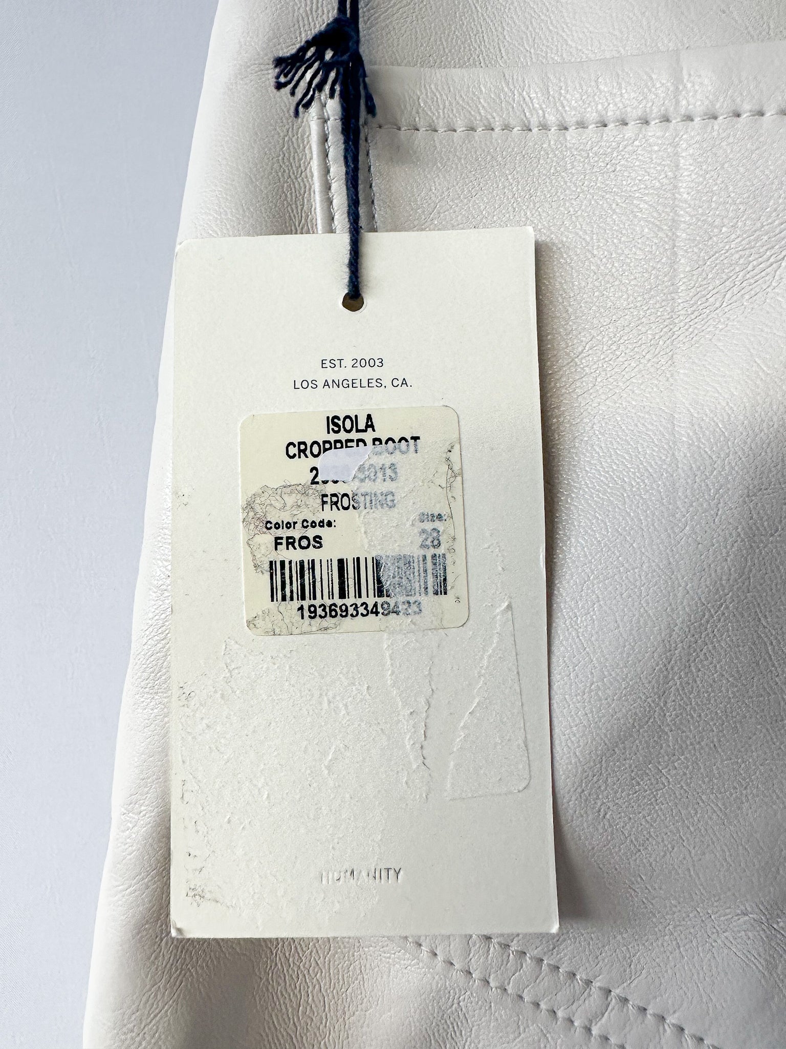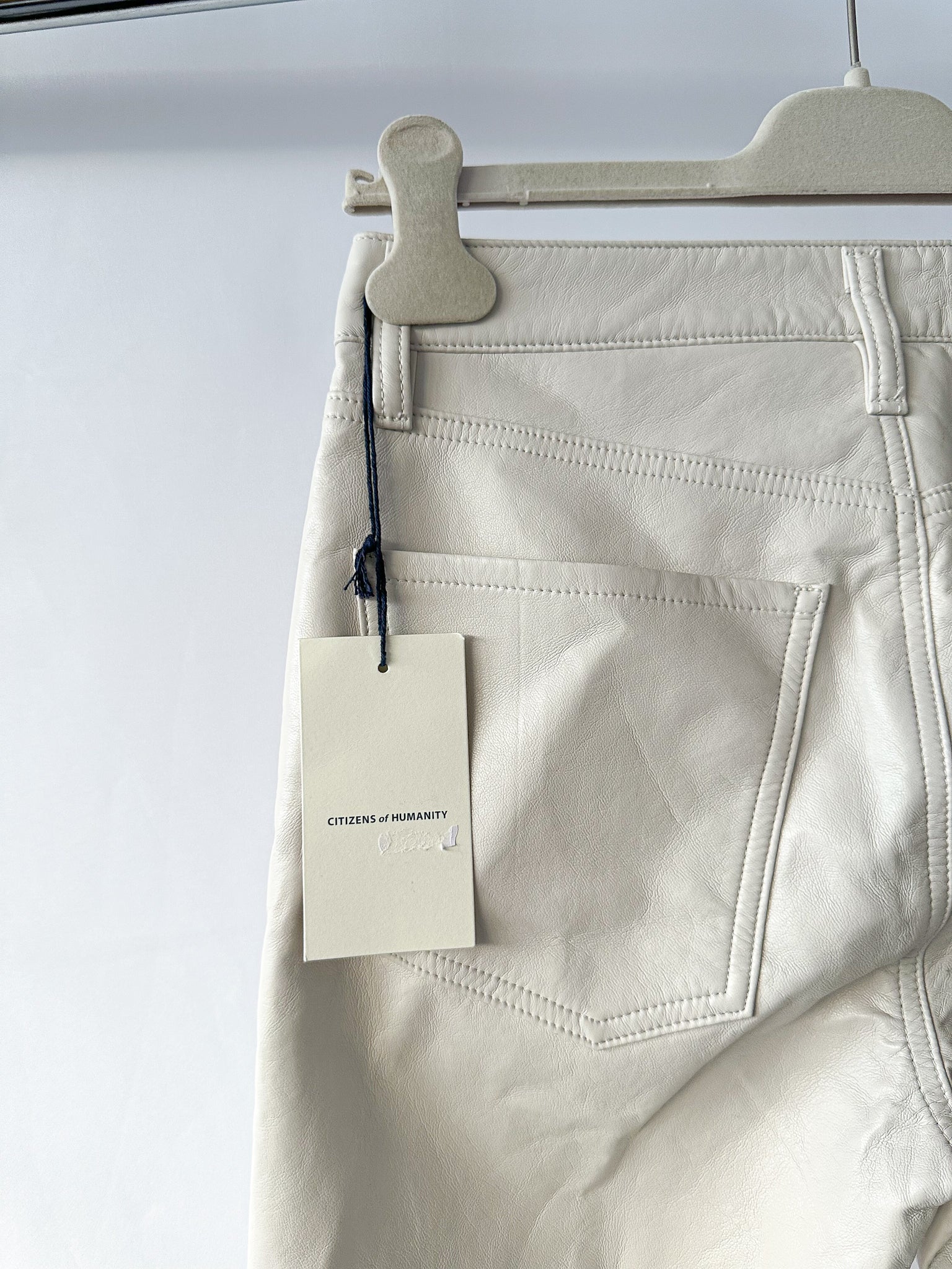 Le jean bootcut court en cuir recyclé blanc Isola de Citizens Of Humanity allie design contemporain et savoir-faire durable. Sa coupe bootcut courte et ses finitions en cuir recyclé haut de gamme lui confèrent une silhouette raffinée, idéale pour un look élégant au quotidien. Sa couleur blanche lui assure une grande polyvalence en toute saison, tandis que sa conception soignée garantit confort et style durables. Une pièce intemporelle qui fait le lien entre mode et responsabilité environnementale.