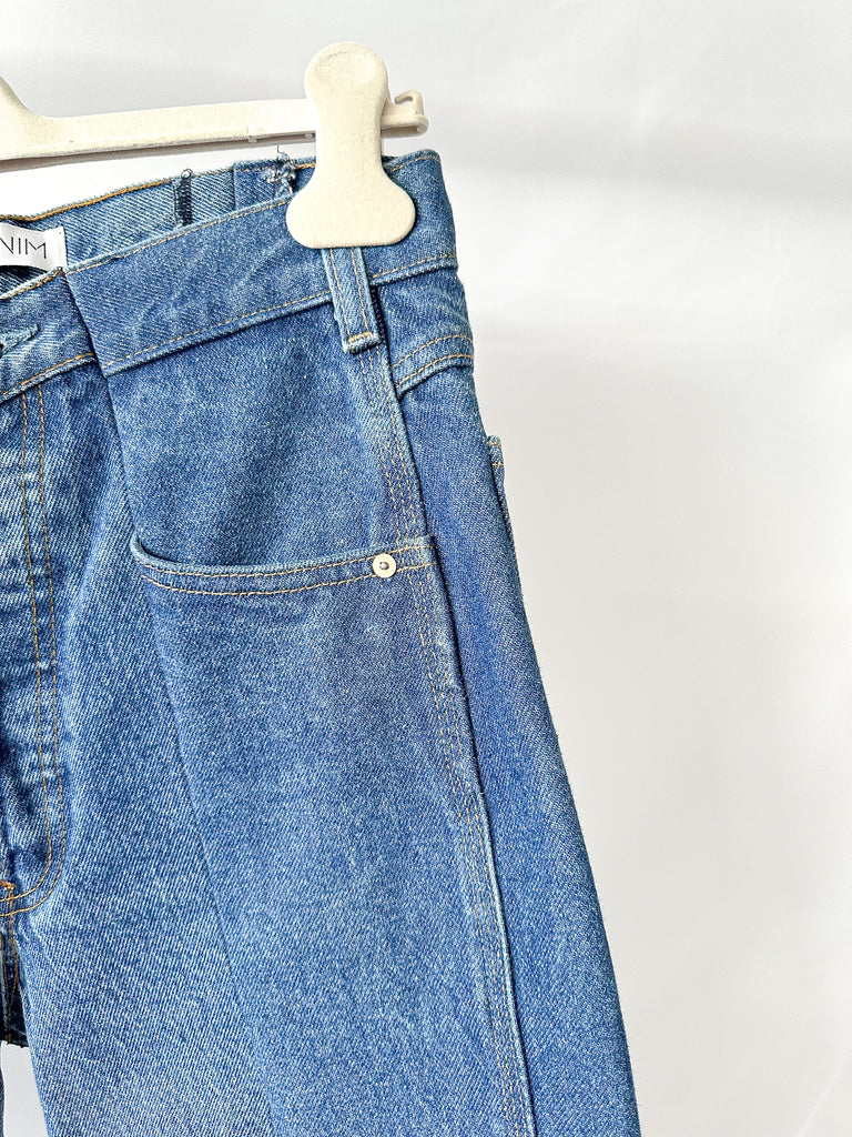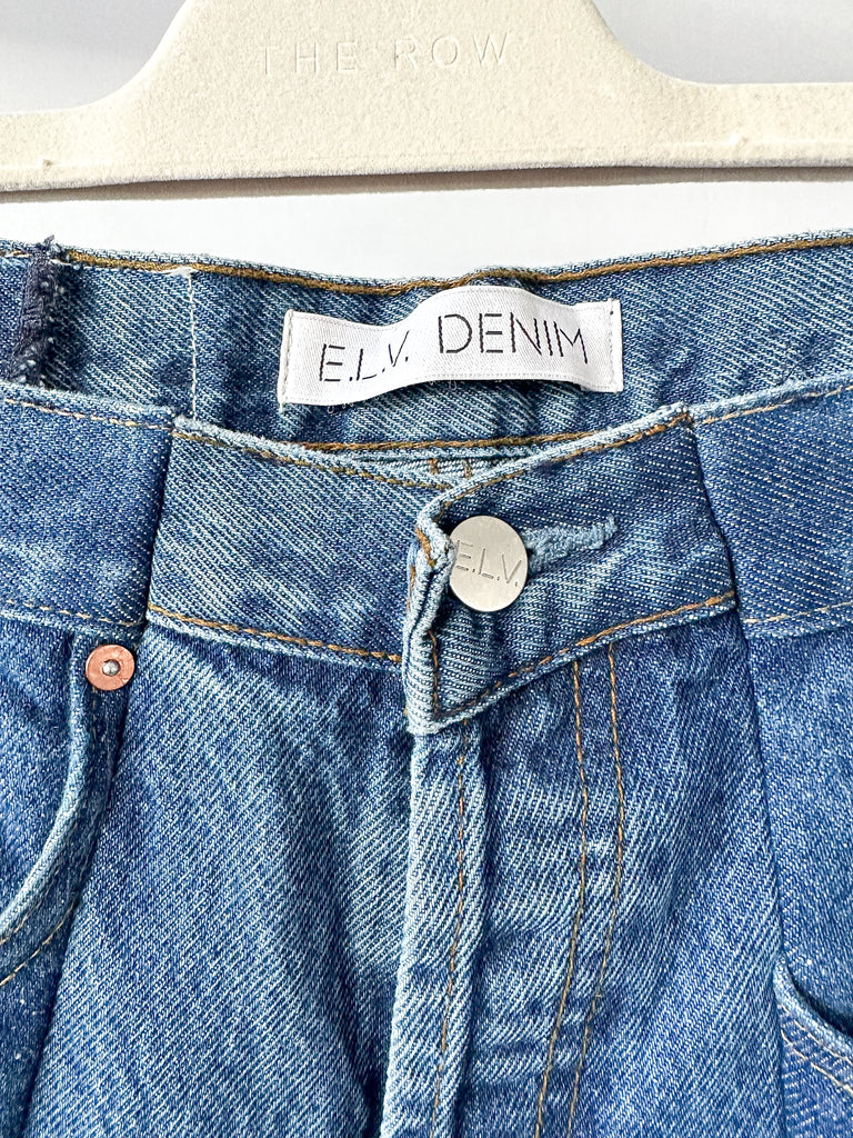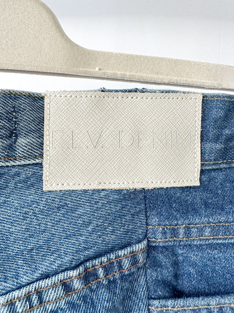 Découvrez le jean droit à ourlet asymétrique contrasté d'ELV Denim : l'incarnation même du chic décontracté. Confectionné avec leur coupe contrastée emblématique et une silhouette droite raffinée, ce jean affirme un style unique grâce à son ourlet asymétrique distinctif.