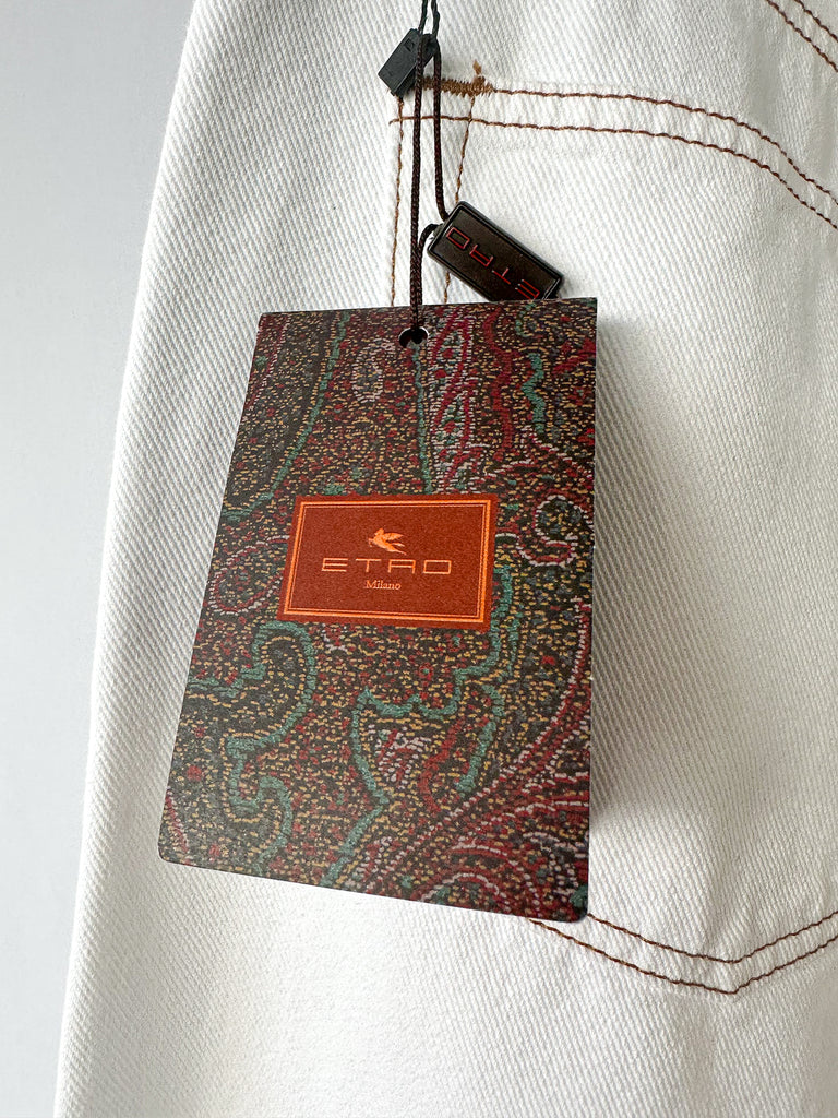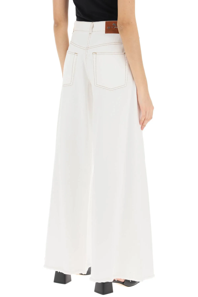 Jean palazzo à jambes larges en denim blanc Etro brodé de motifs cachemire